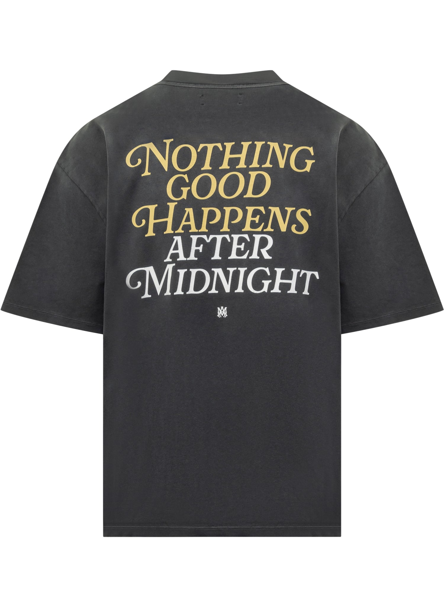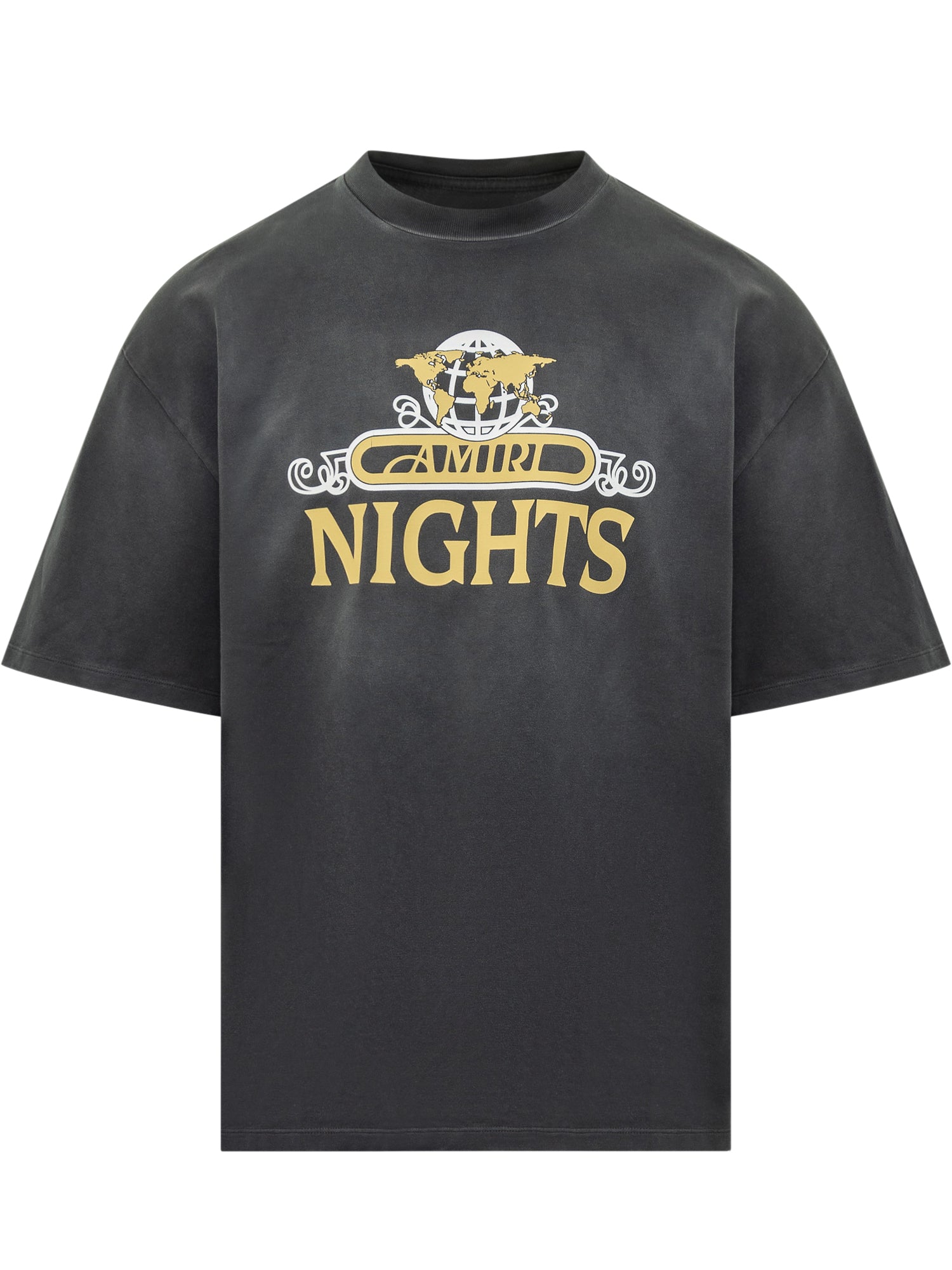 Amiri cotton T-shirt with bold Amiri Nights front print. Oversized fit and vintage wash for a bold.