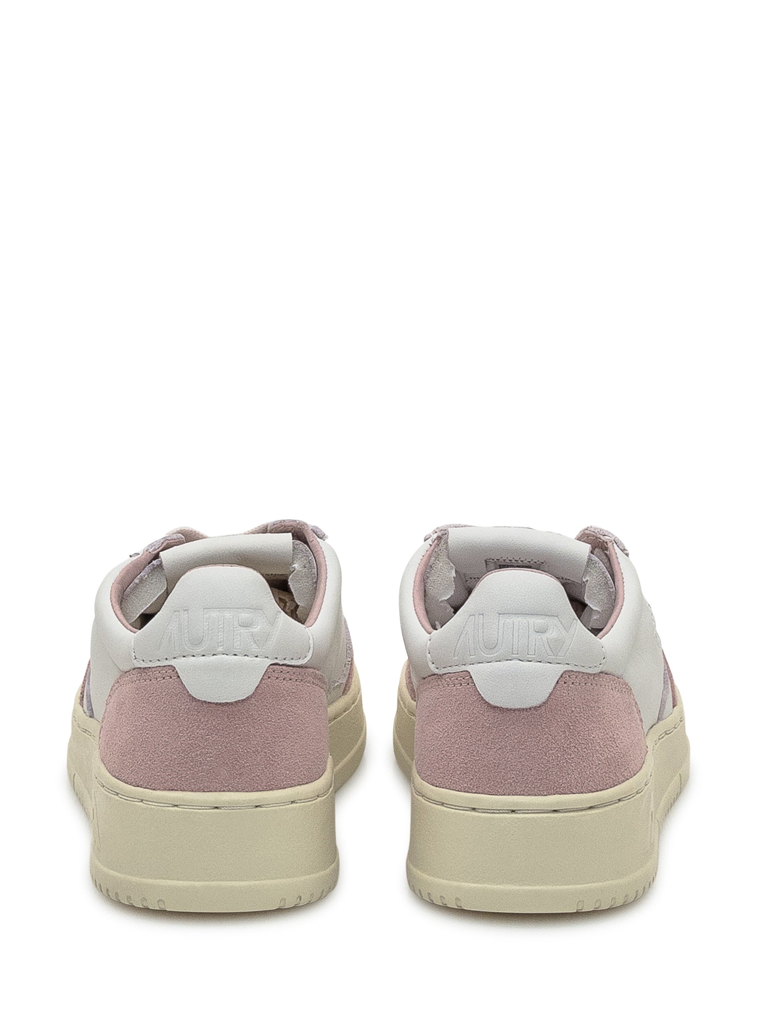 Leather sneaker. Toe with micro-holes. Front closure with flat cotton laces. Label with stitching on the tongue. Padded collar. Rubber sole. Suede details.