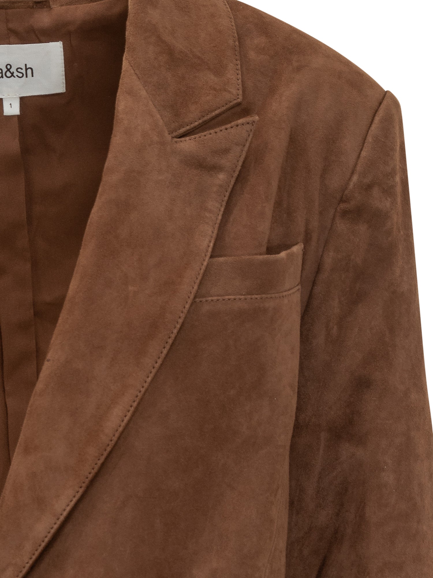 Ba&sh brown suede leather blazer with button closure and patch pockets.