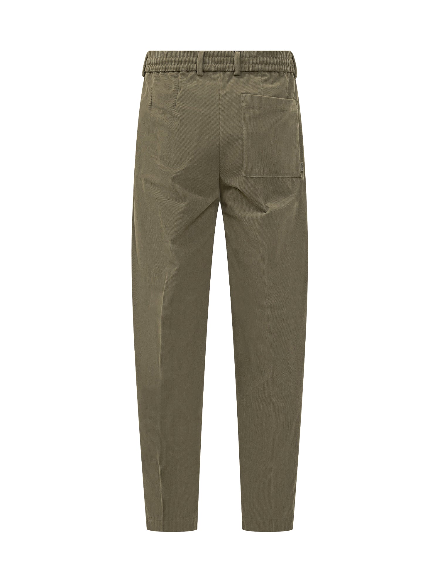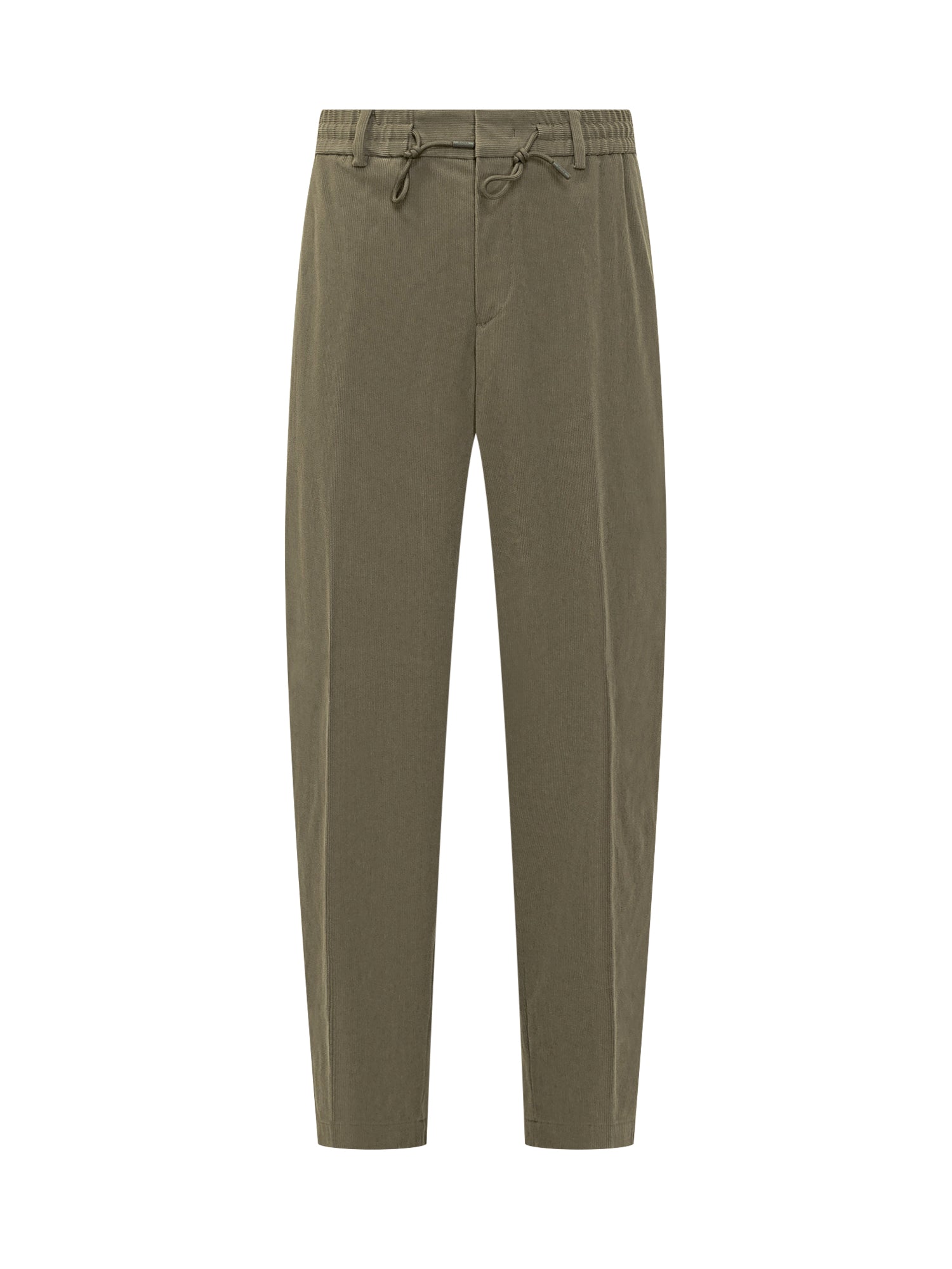 Boss green cotton pants with zip and button closure, elastic waistband with adjustable drawstring and side pockets.