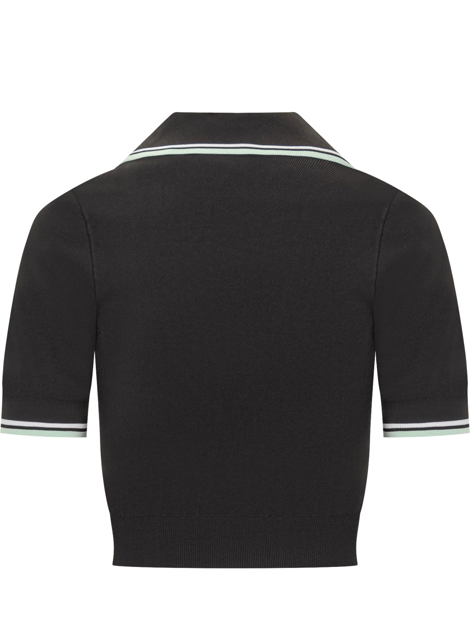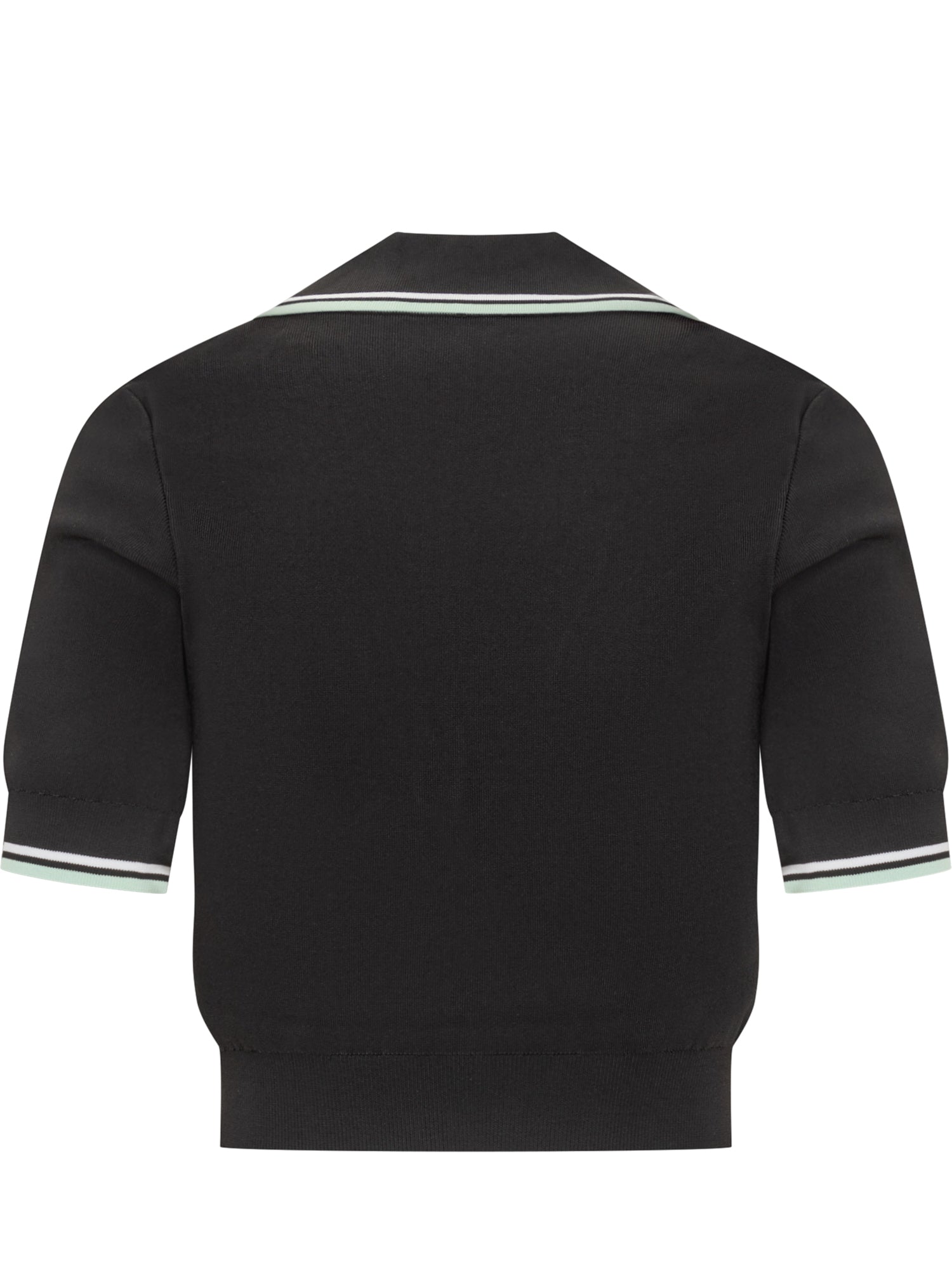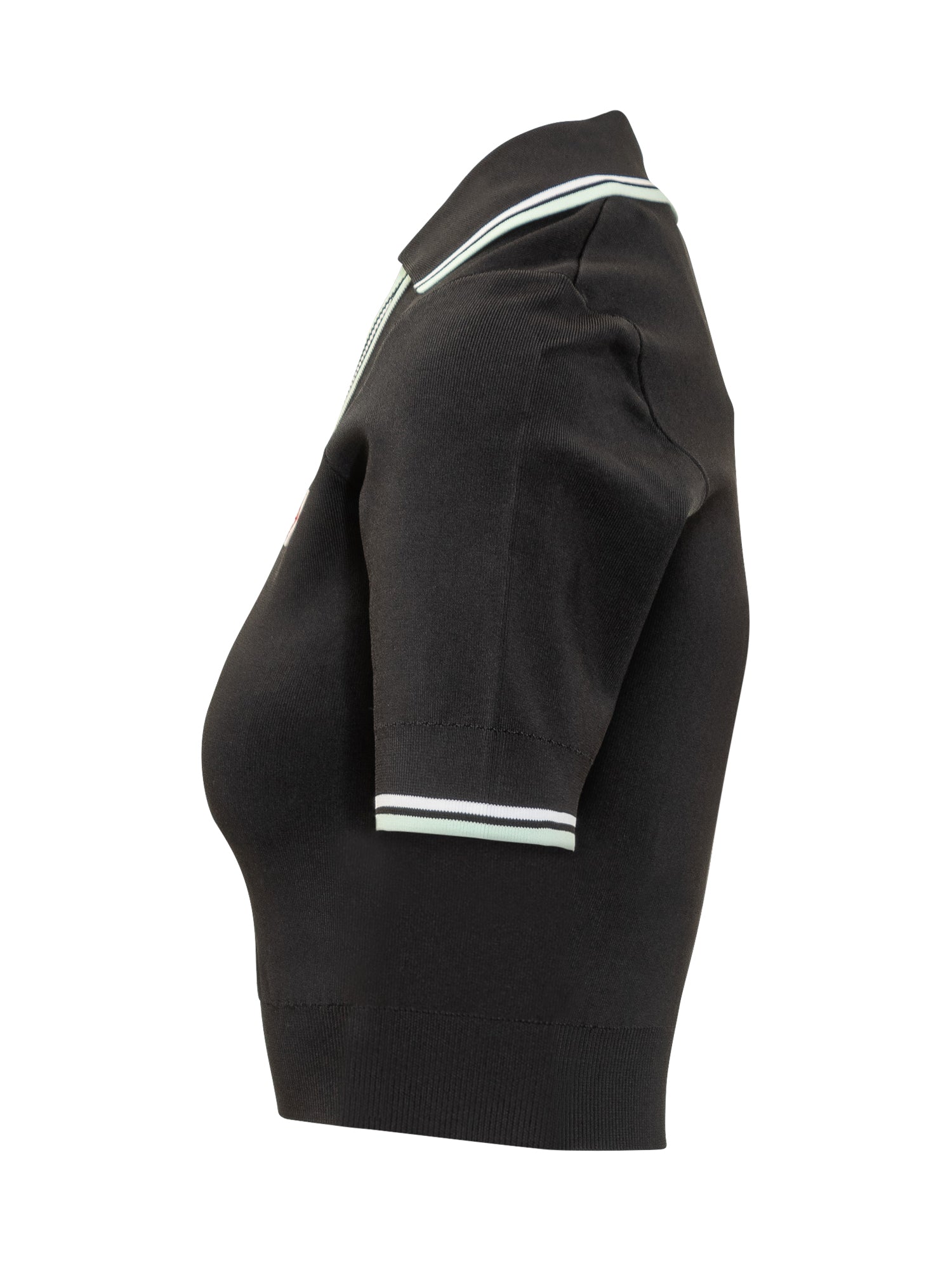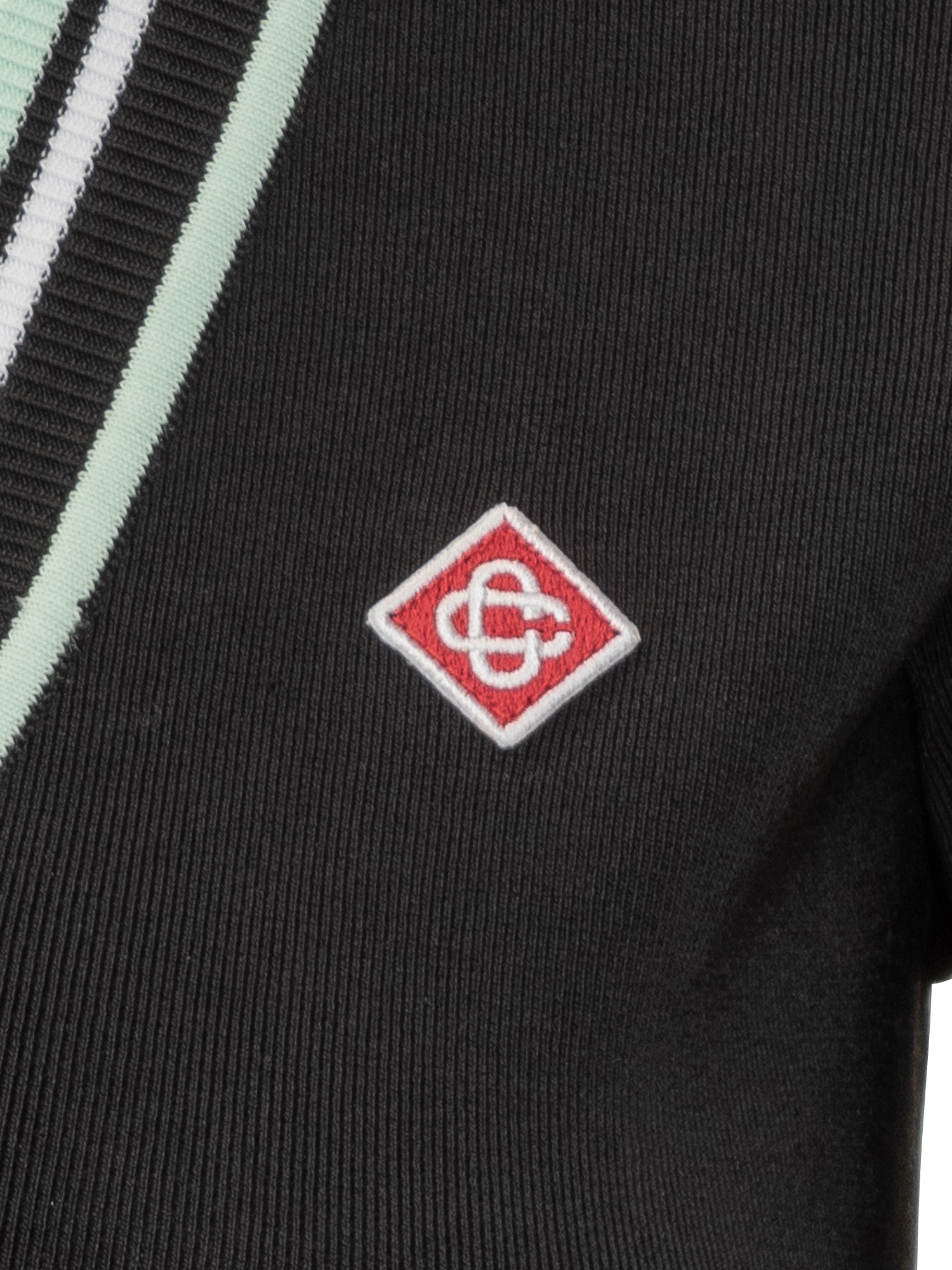 Casablanca women s viscose top in black with V-neck, polo collar, and contrast striped details. Slim fit and tennis-inspired design.