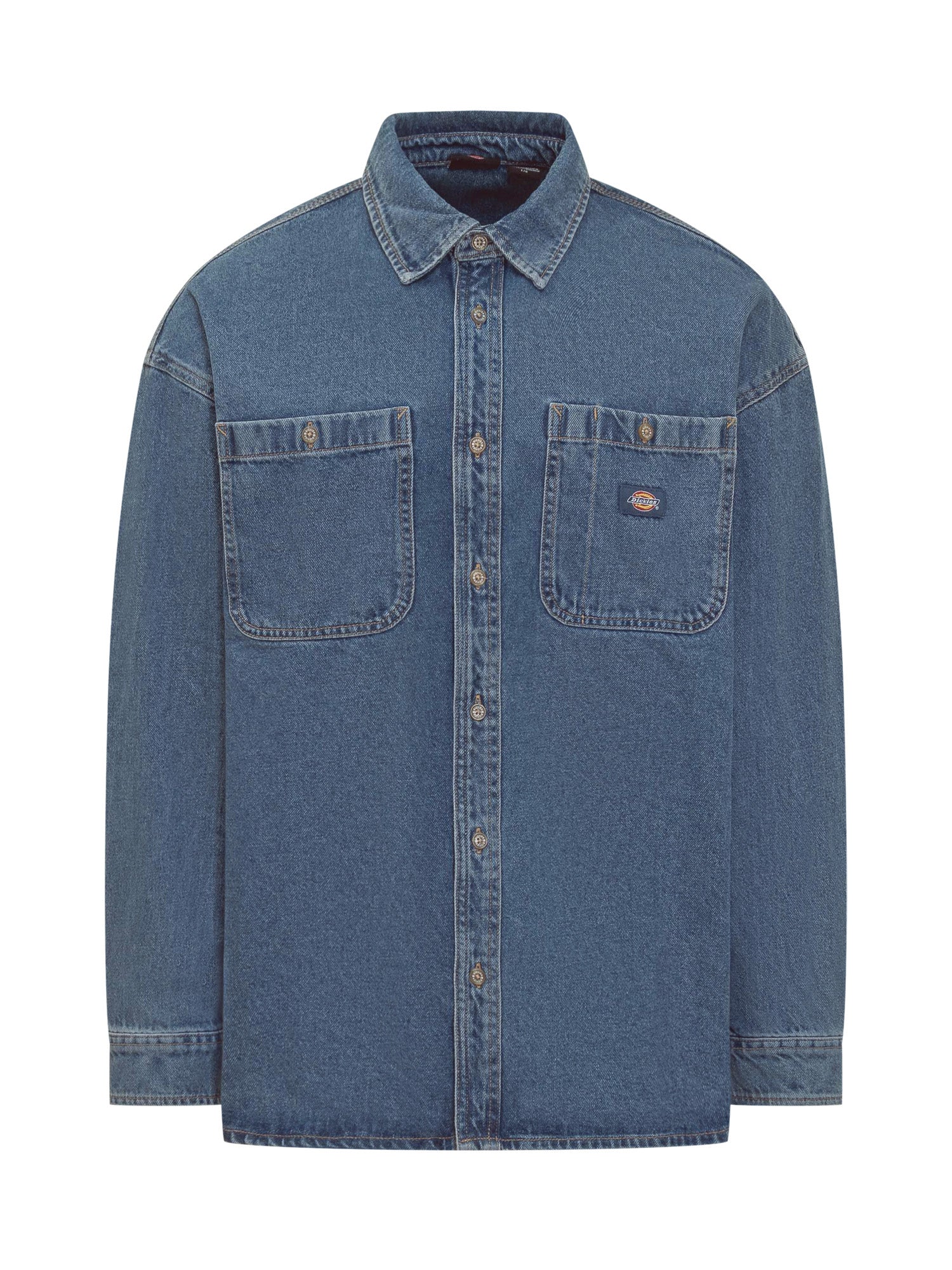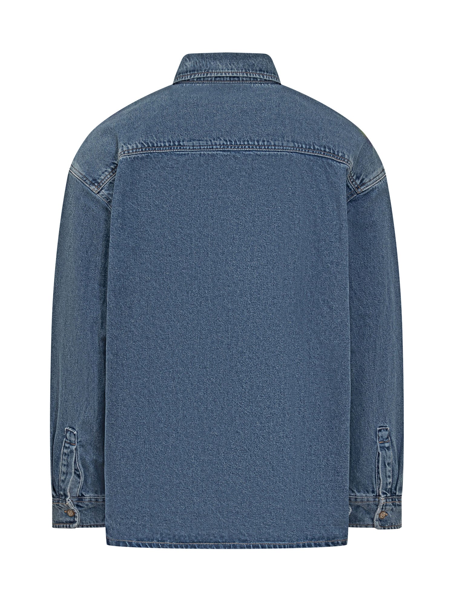 Button closure. Pointed collar. Long sleeves with buttoned cuffs. Buttoned patch pockets.