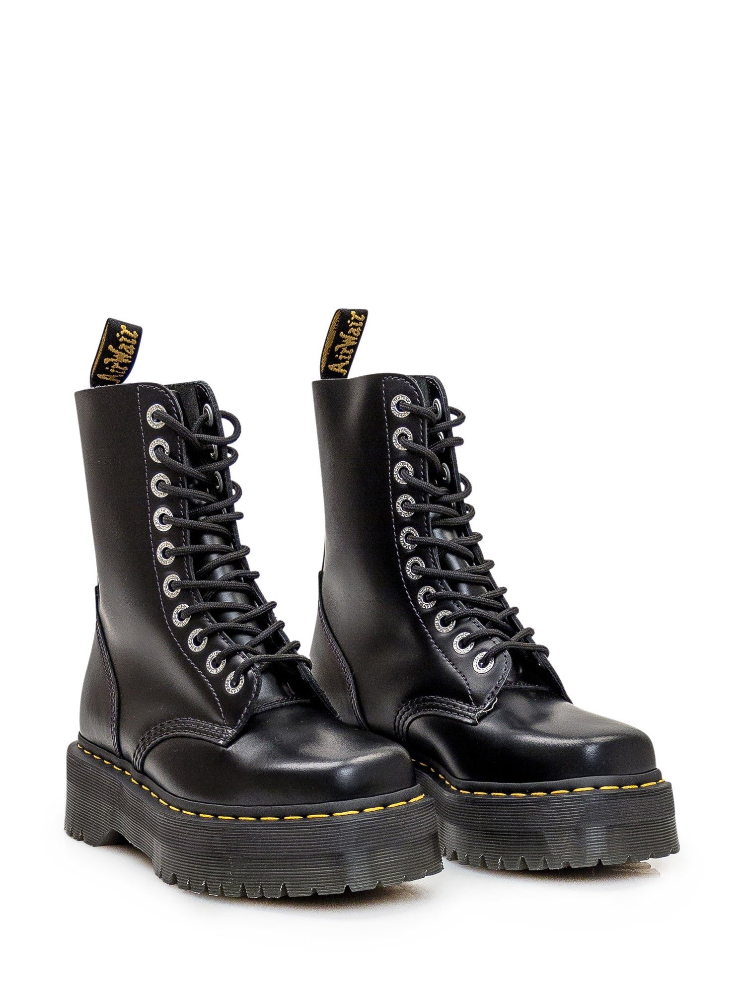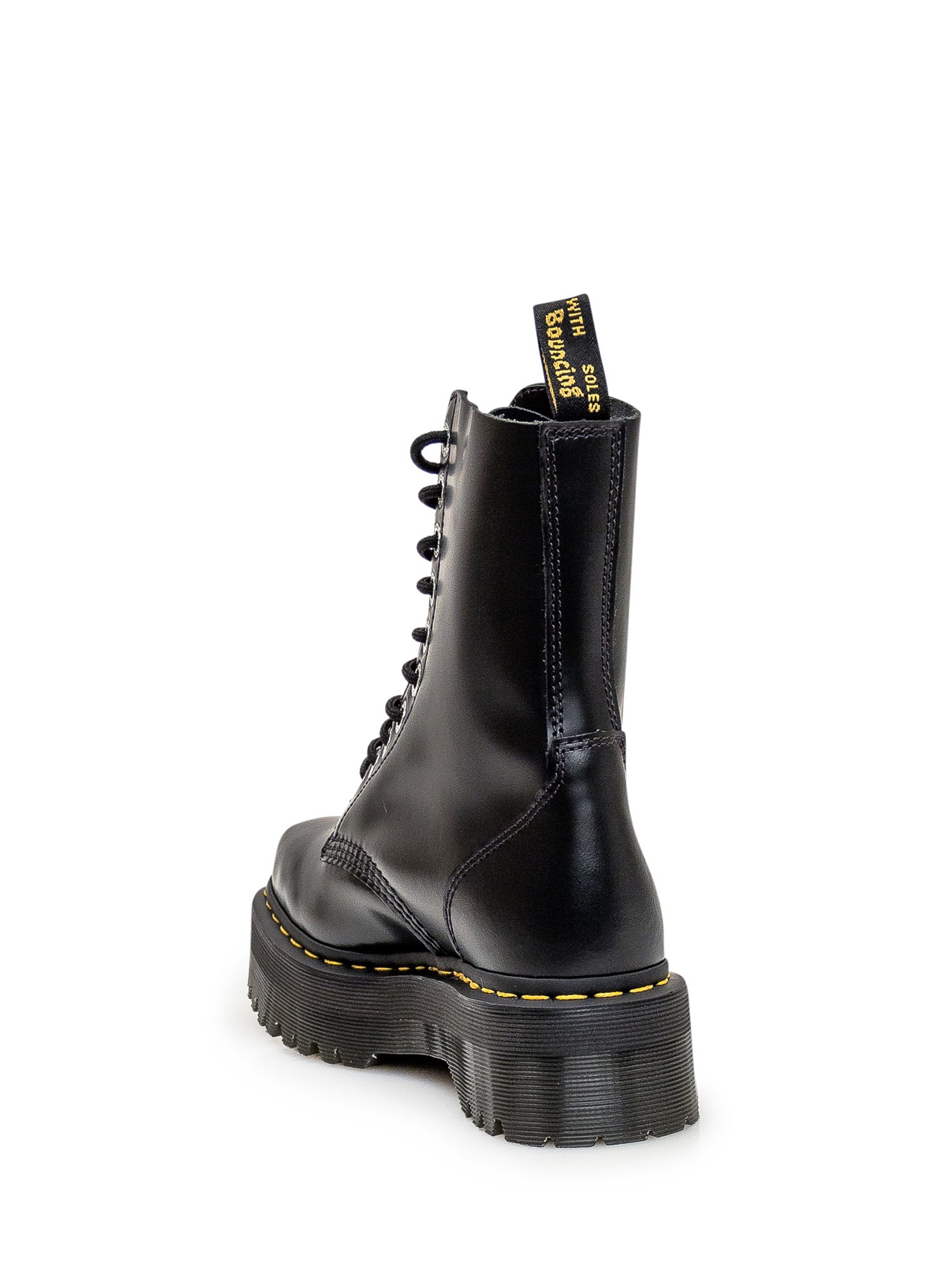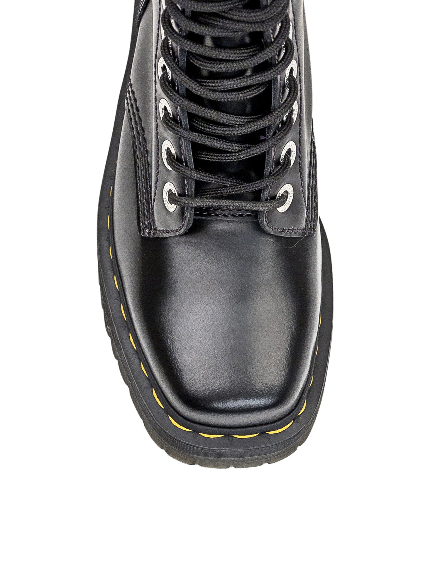 Black leather boot with matte effect. Closure with laces. Yellow embroidery detail.