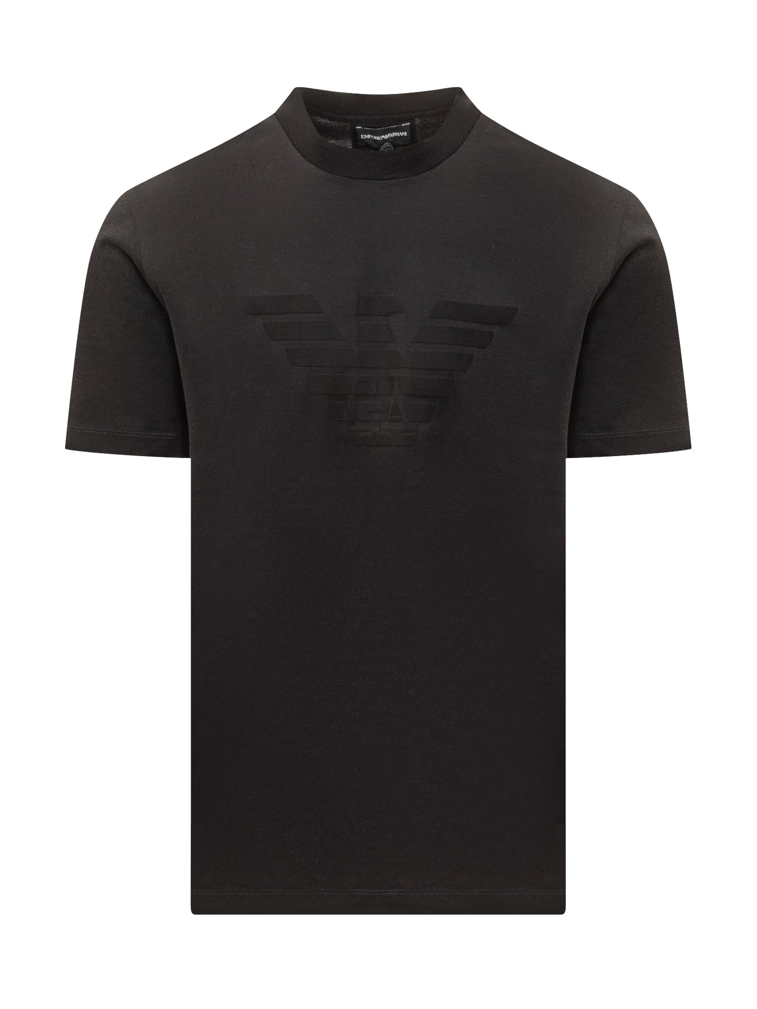 Black cotton T-shirt. Round neck. Embossed logo on the front.