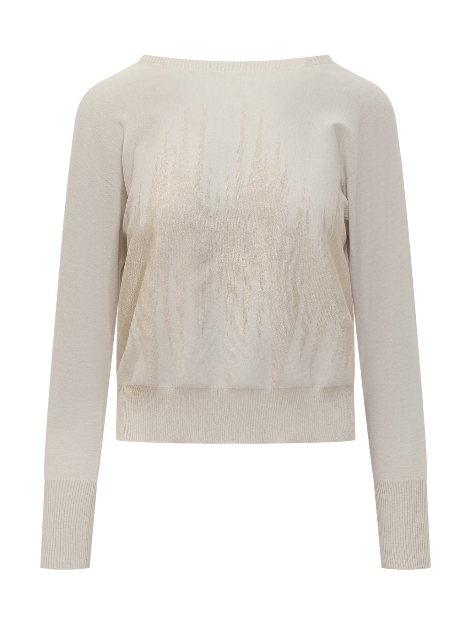 Exterior sweater featuring a chevron pattern with golden lurex details. Soft and refined.
