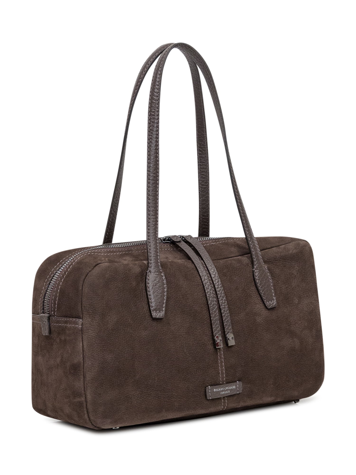 Gianni Chiarini bag in brown suede leather with double handles and zip closure.