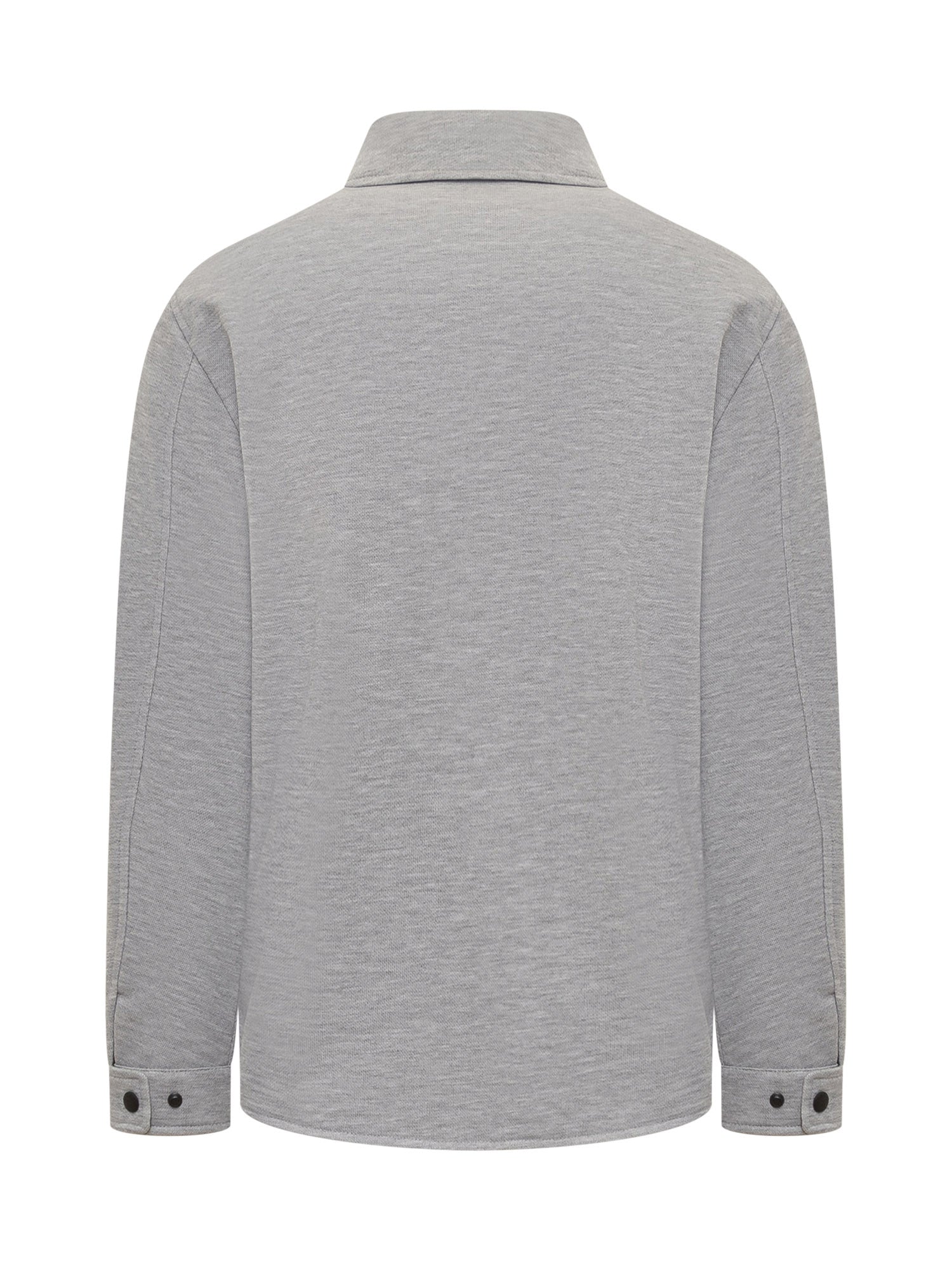 Long-sleeved over shirt jacket. Classic collar. Button closure. Button cuffs. Four pockets. Logo buttons. Embroidered logo on front.