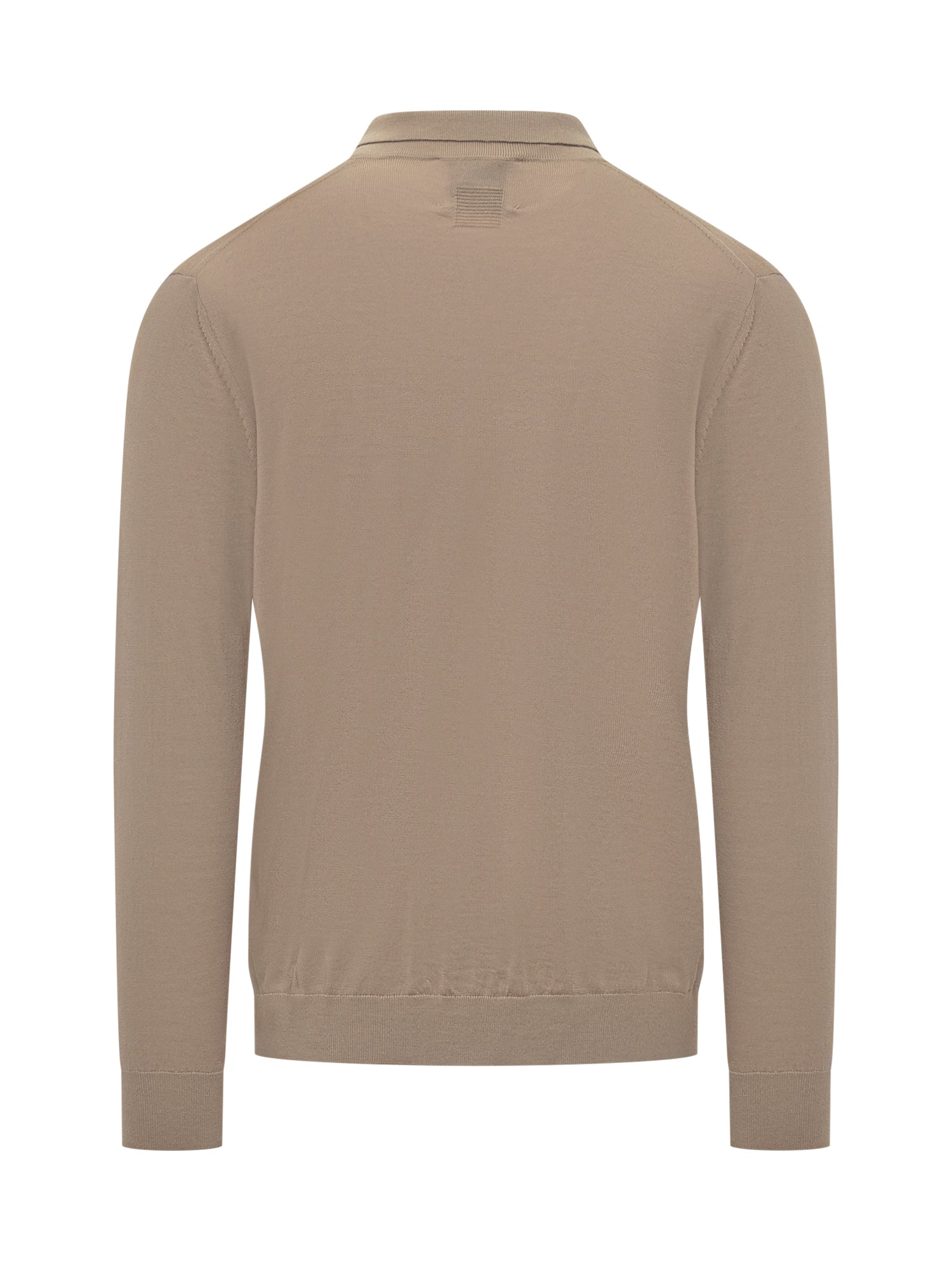 Knit De Monsieur lightweight beige polo with button closure and classic collar.