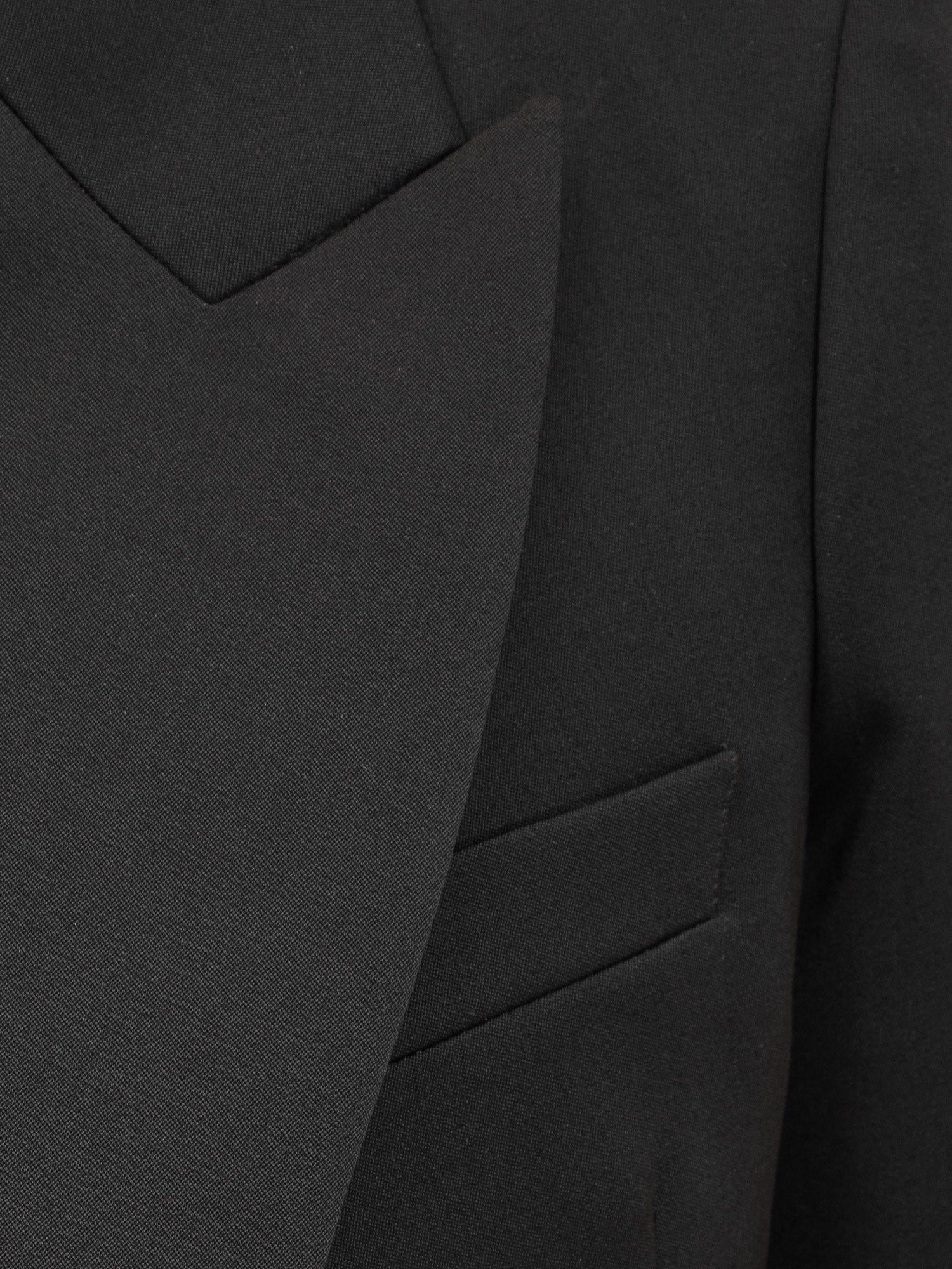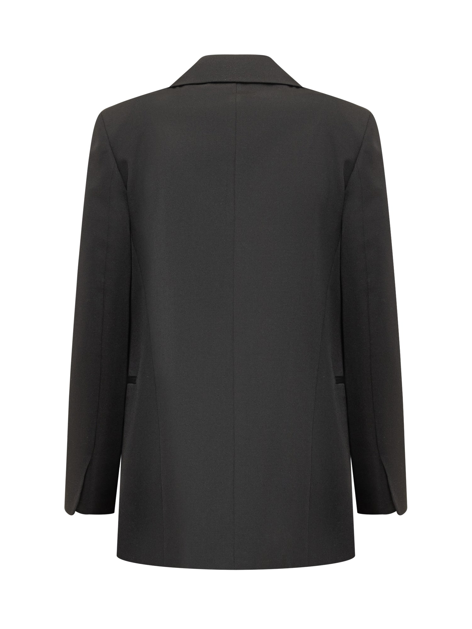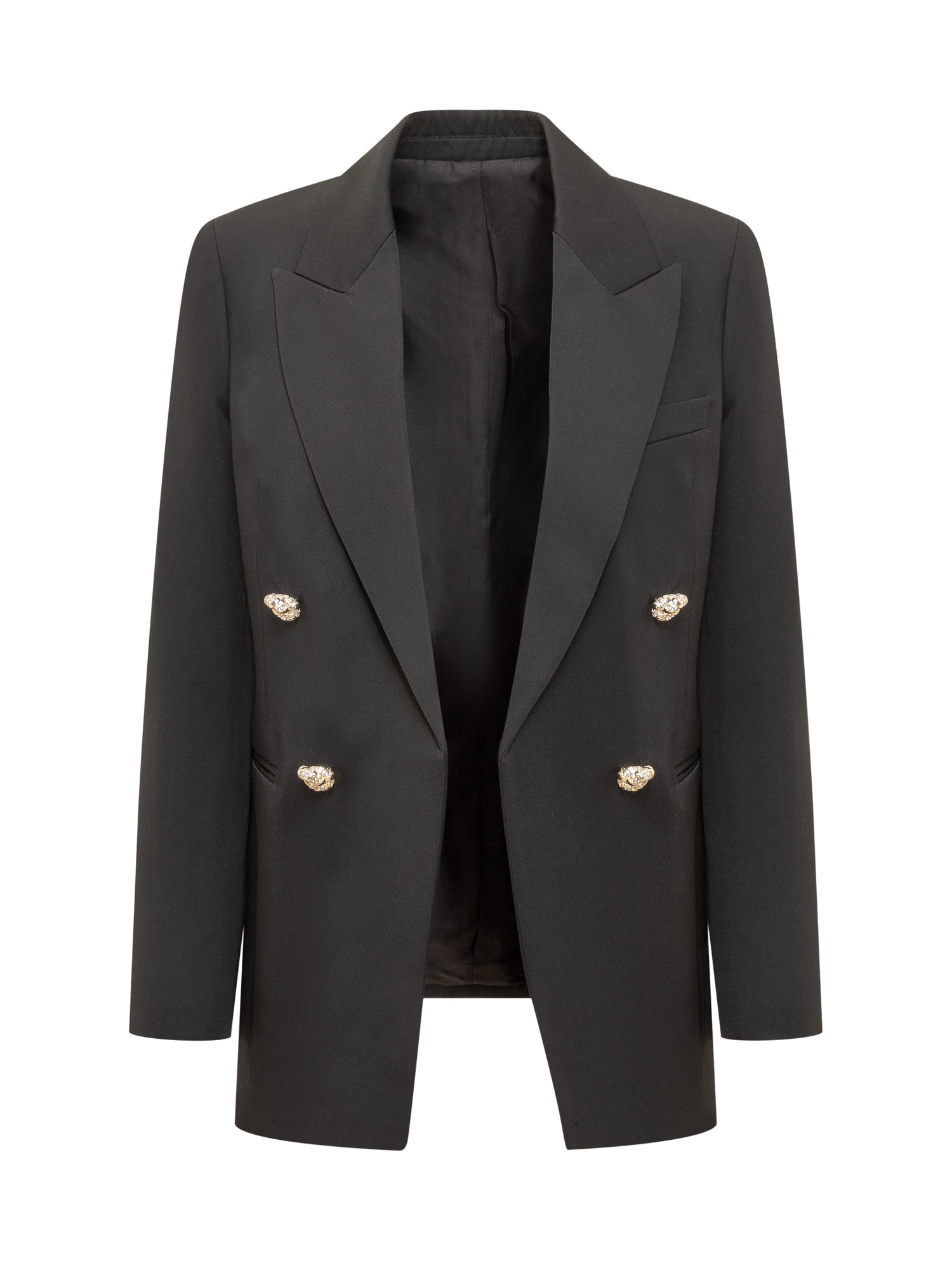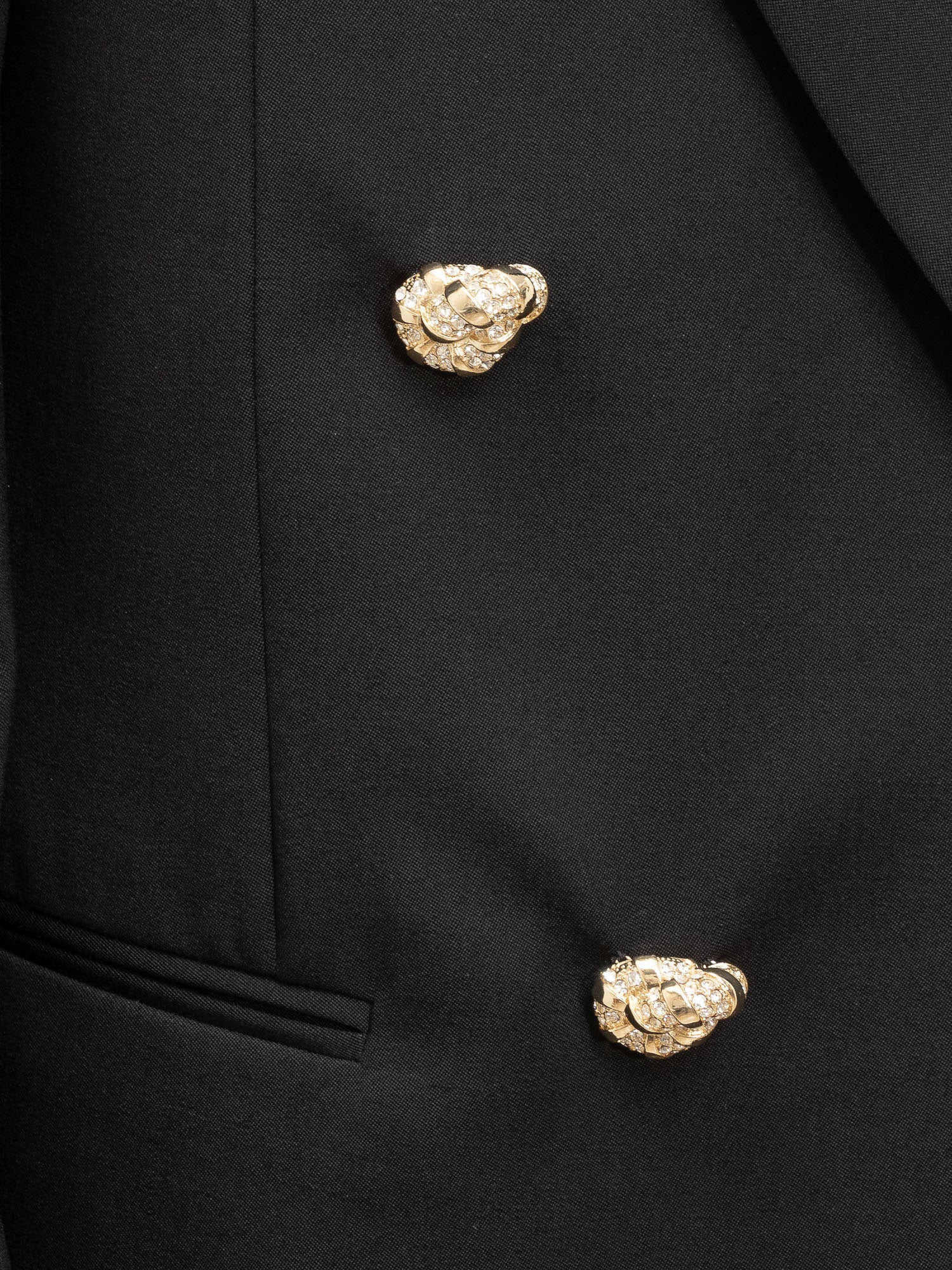 Black blazer with long sleeves. Golden buttons detail. Two inside pockets. Side welt pockets.