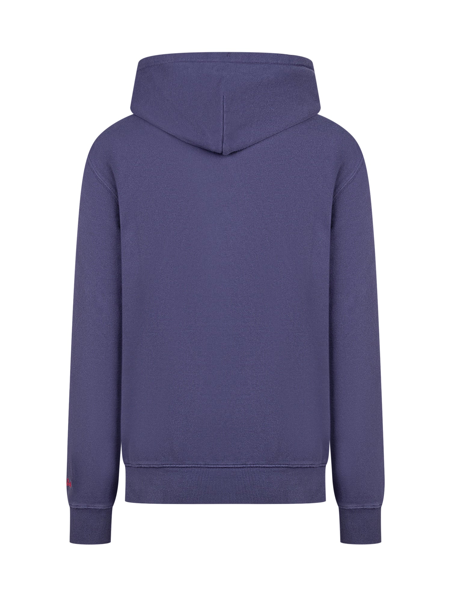 Sweatshirt with hood and drawstring. Ribbed hems. Pocket on front. Motif on front.