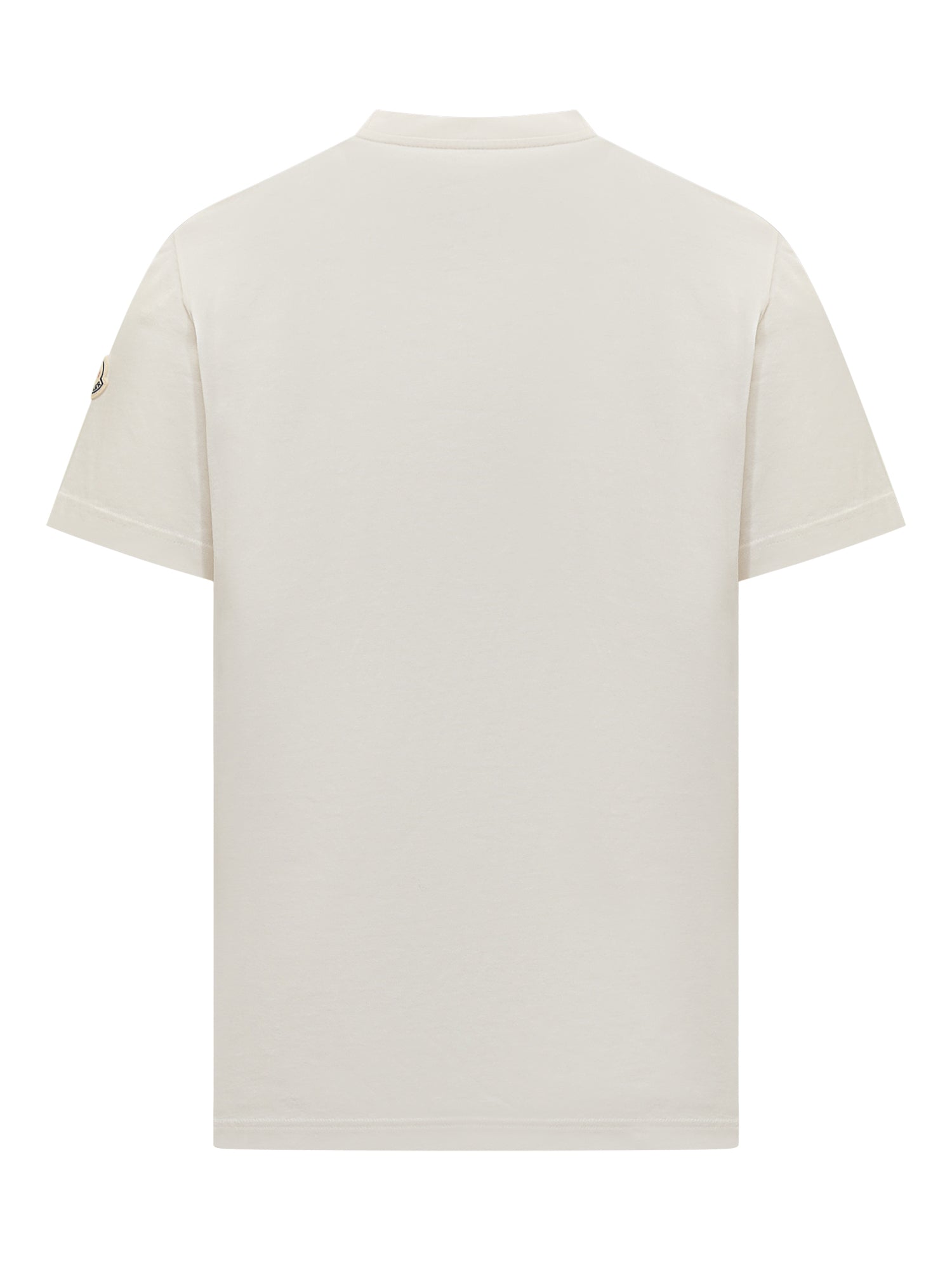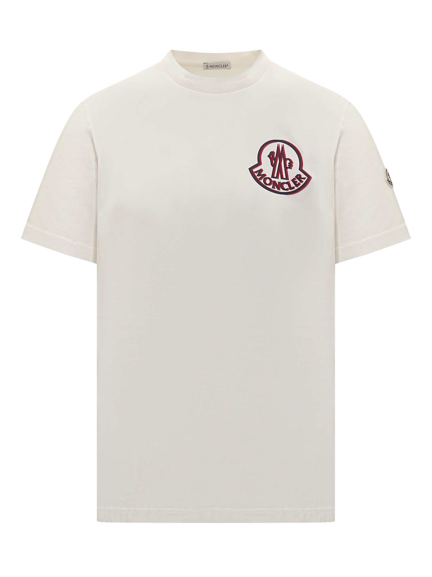 White cotton T-shirt with bold Moncler patch on the chest. Clean, refined style—ideal for modern and casual outfits.