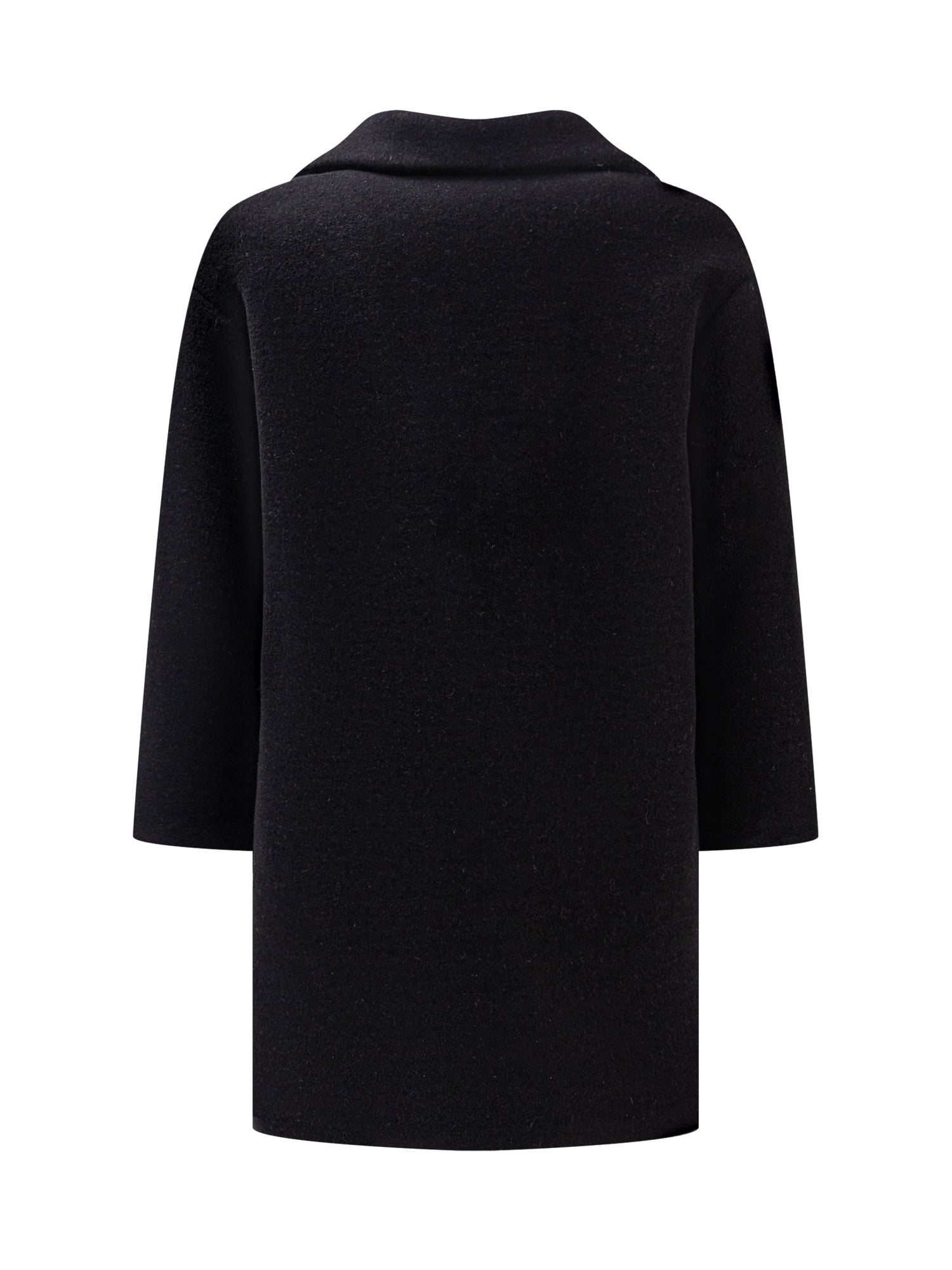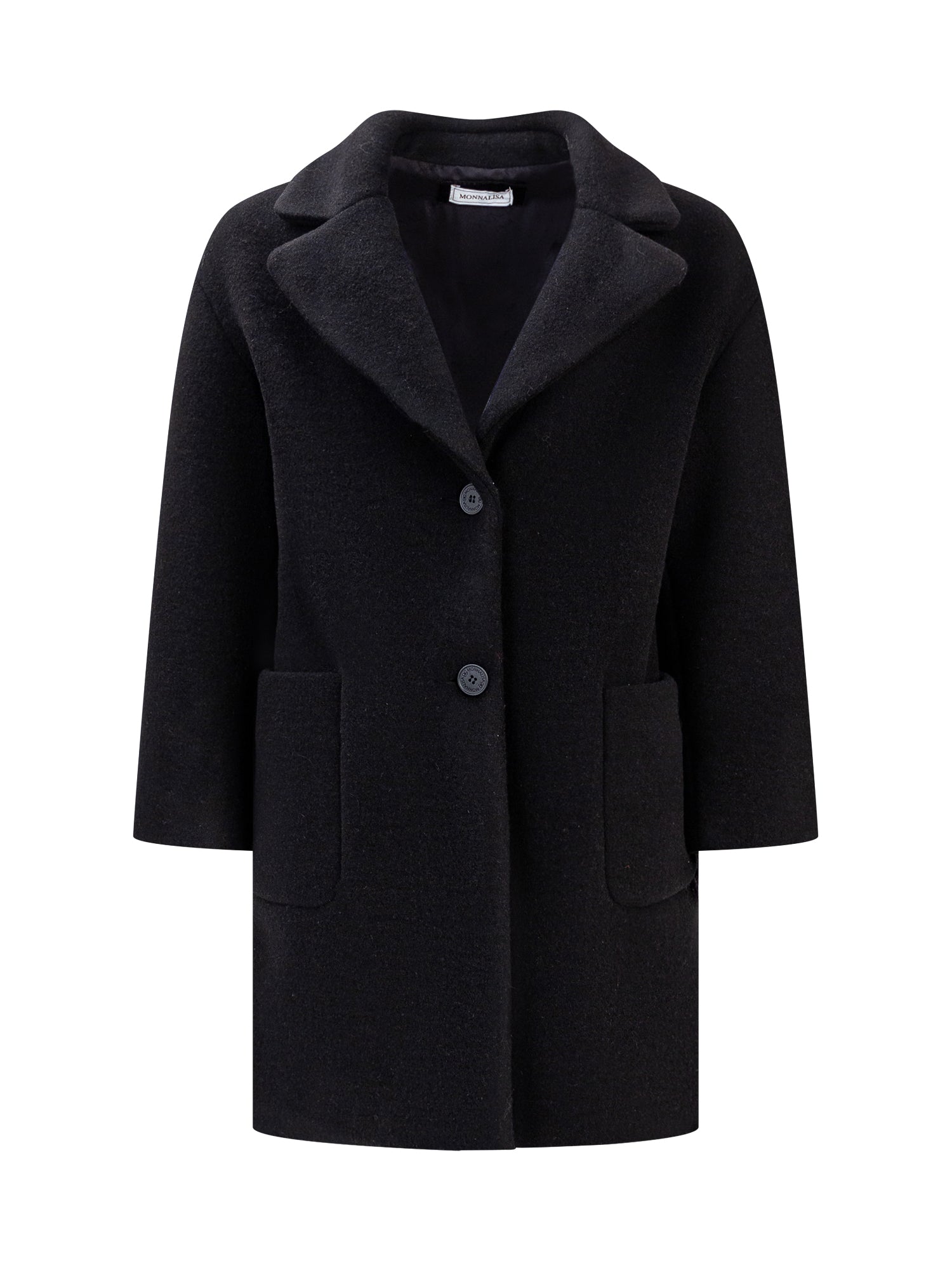 Long coat with long sleeves. Side pockets. Single-breasted logo button closure on the front.