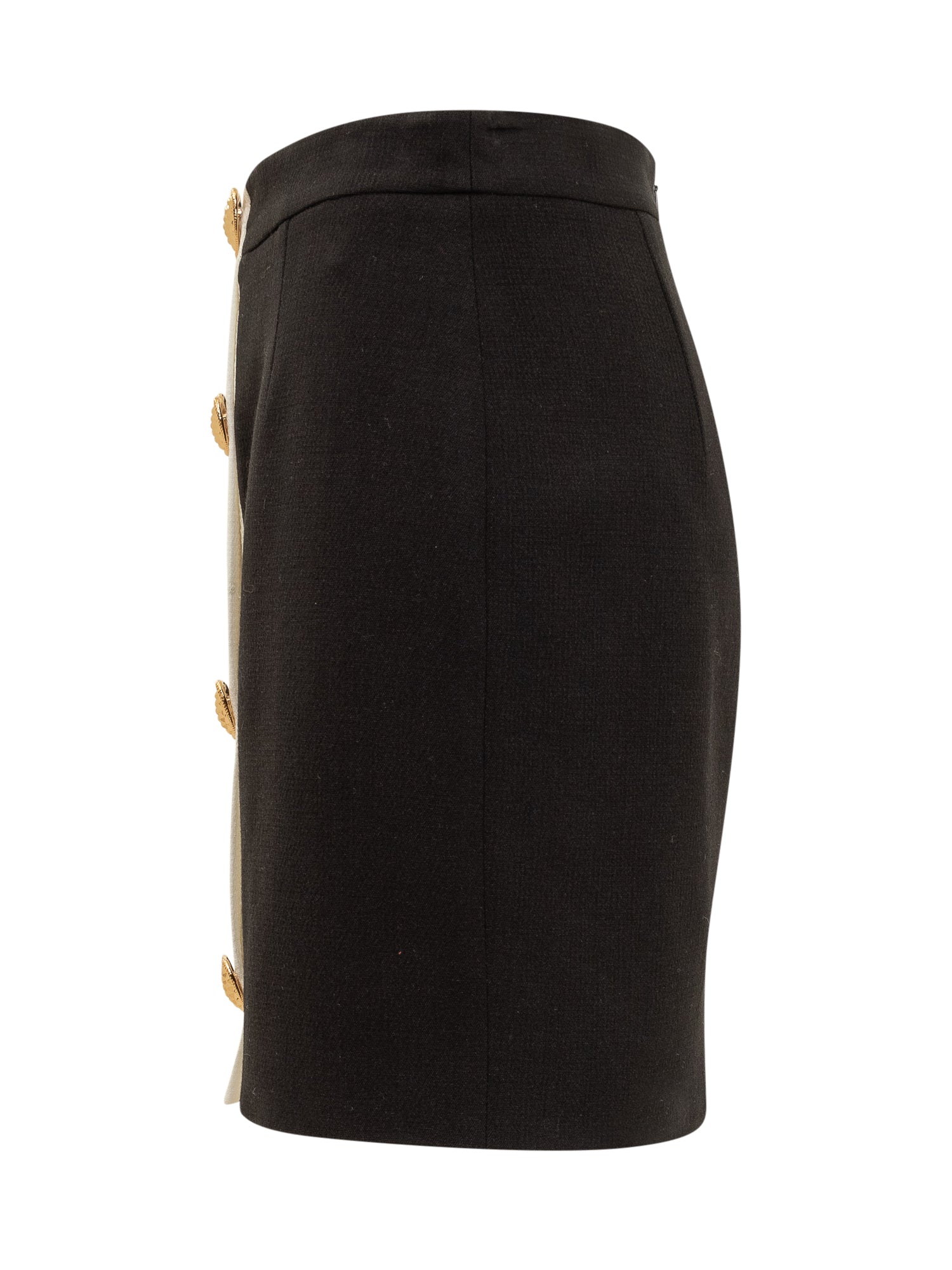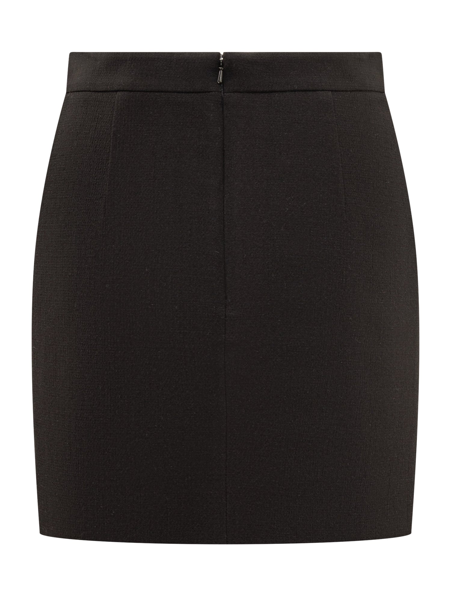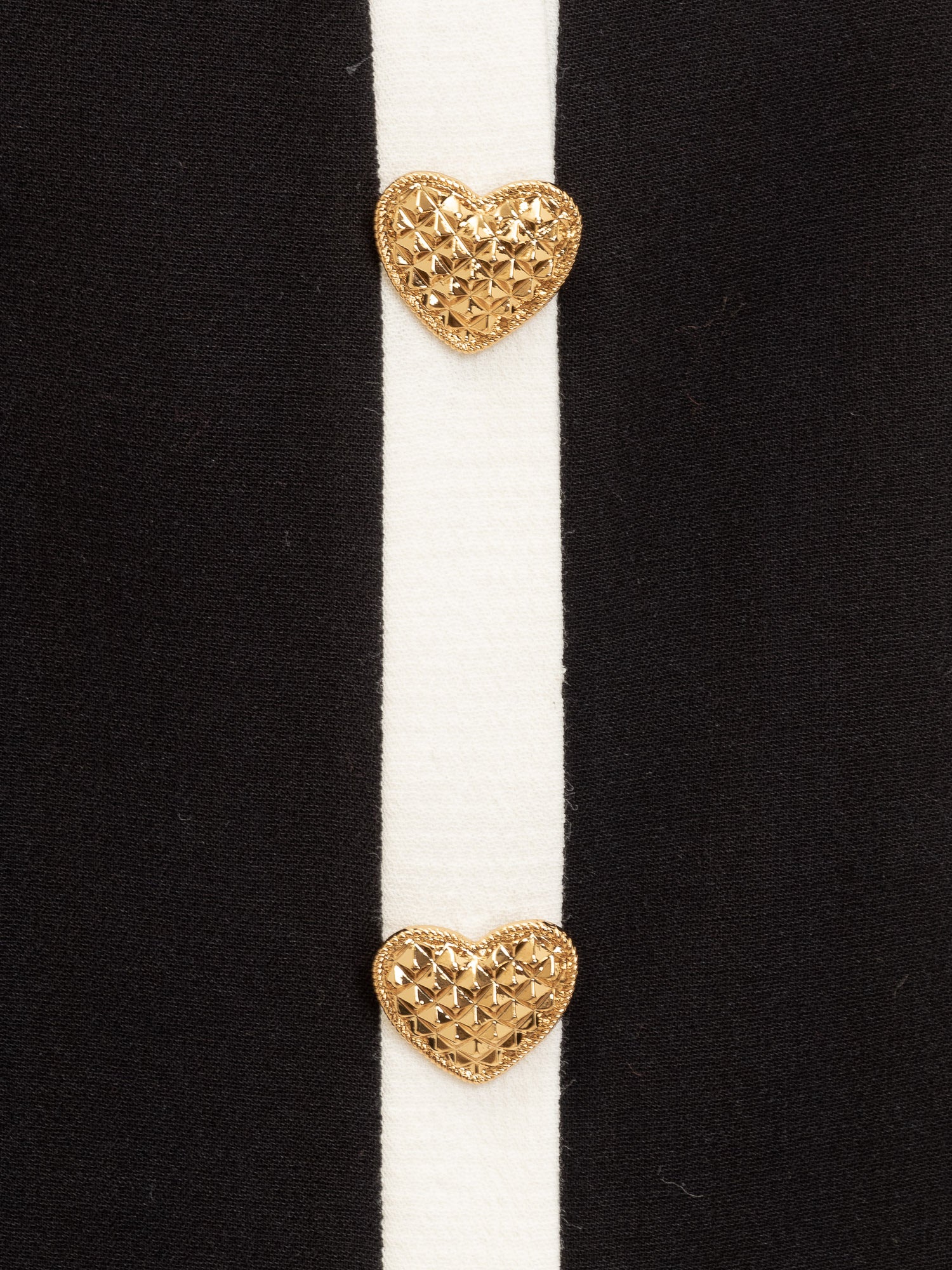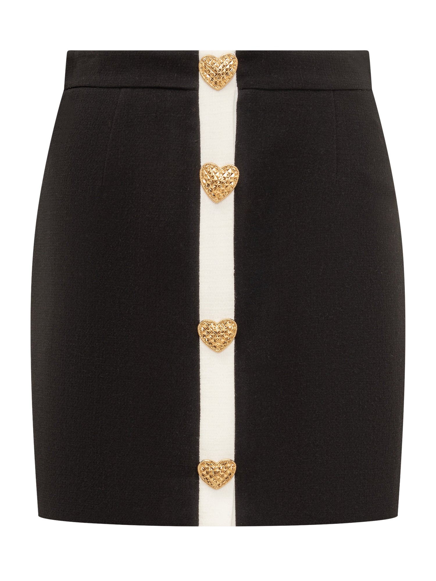 Black mini skirt. Closure on the back with zip. Golden heart details on the front. Slim fit.