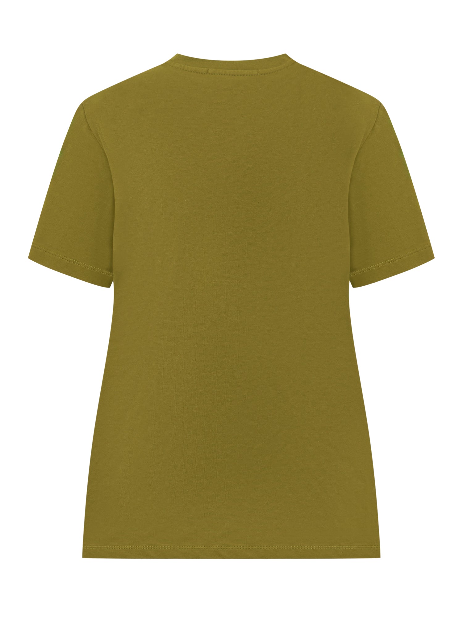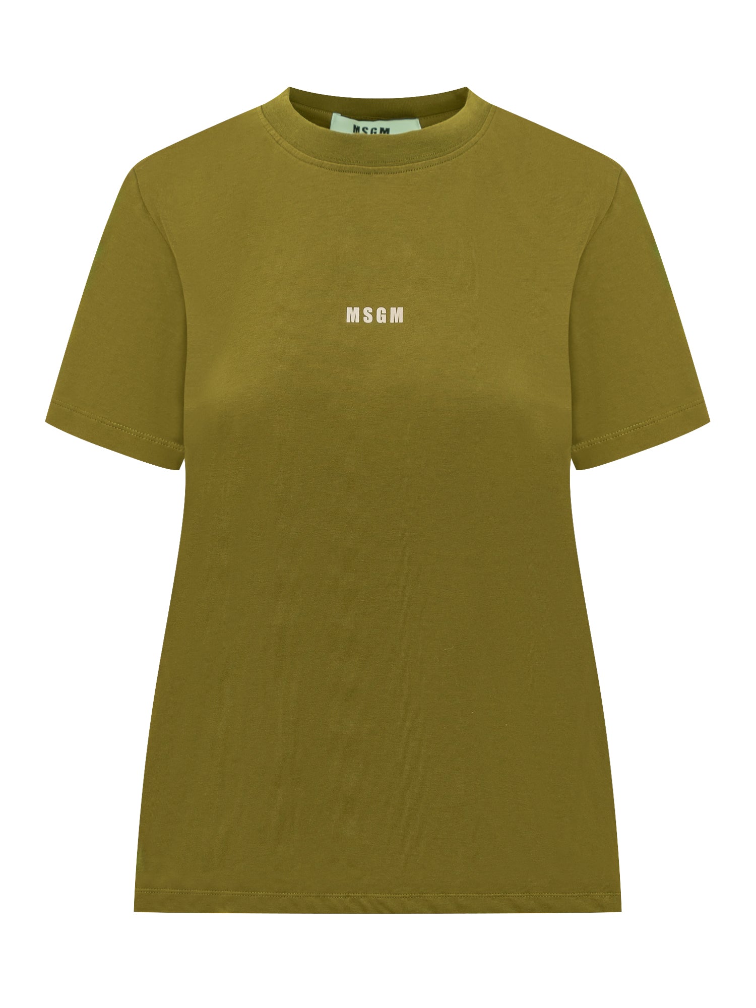 Olive green cotton T-shirt by MSGM featuring a centered white logo.
