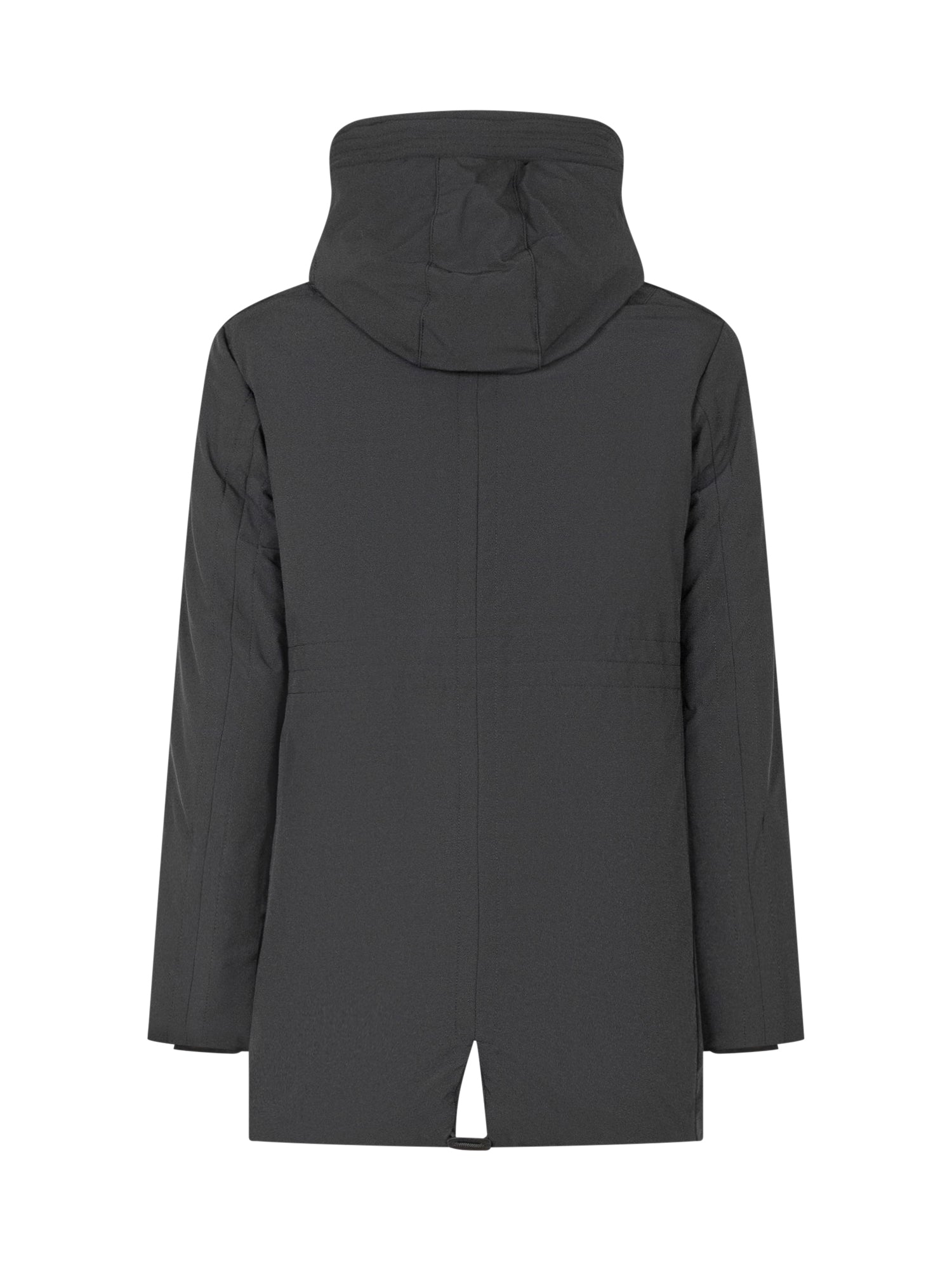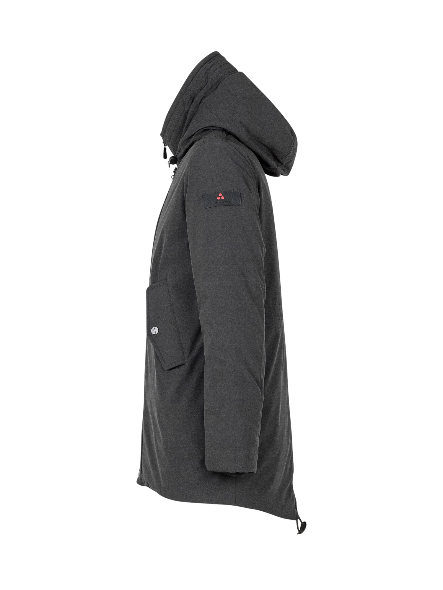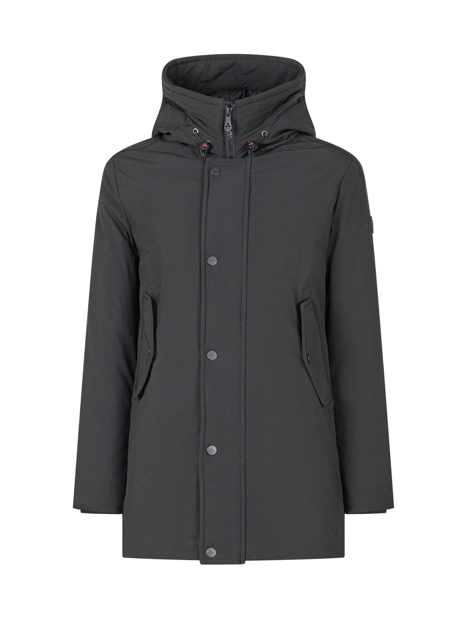 Peuterey Kids black parka with adjustable hood, zip and snap button closure.