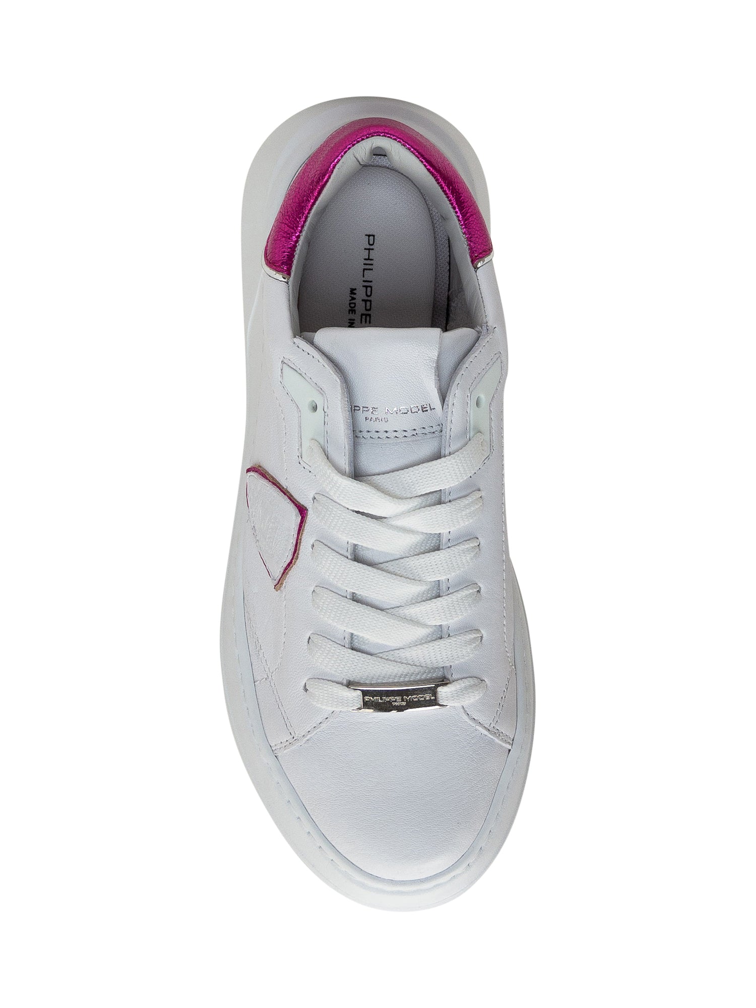 Low white sneaker. Lace-up closure. Contrasting heel. Logo patch on the side. Logo on the tongue and heel.