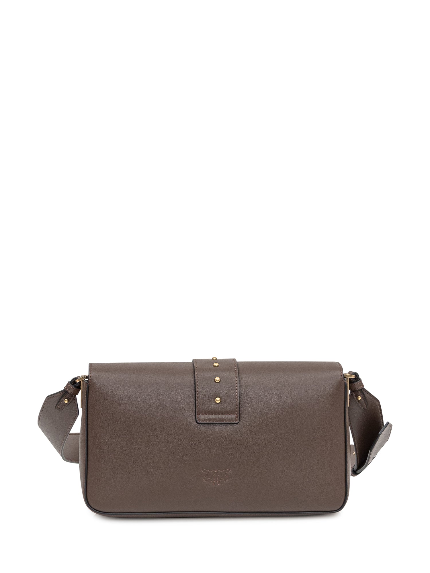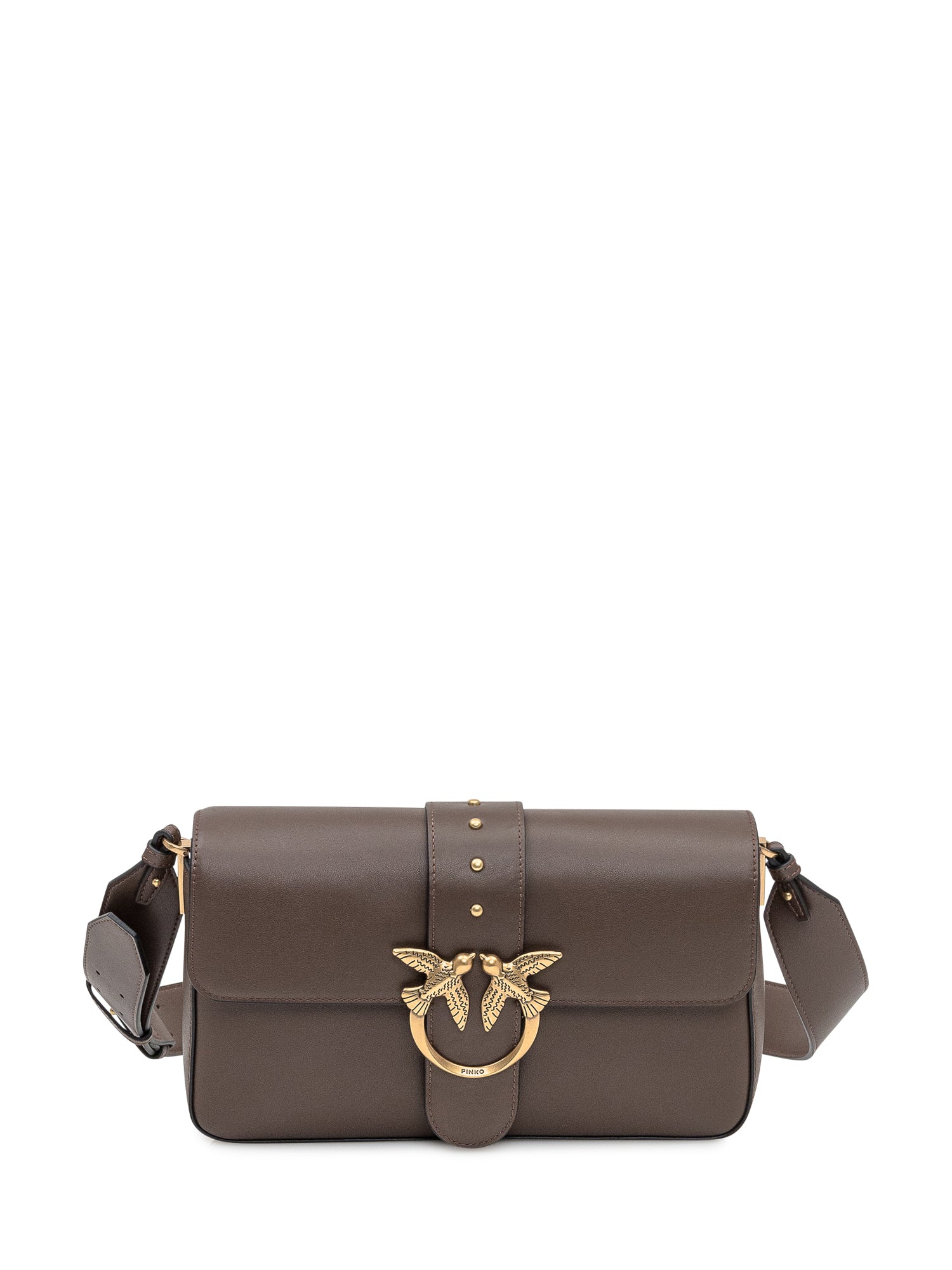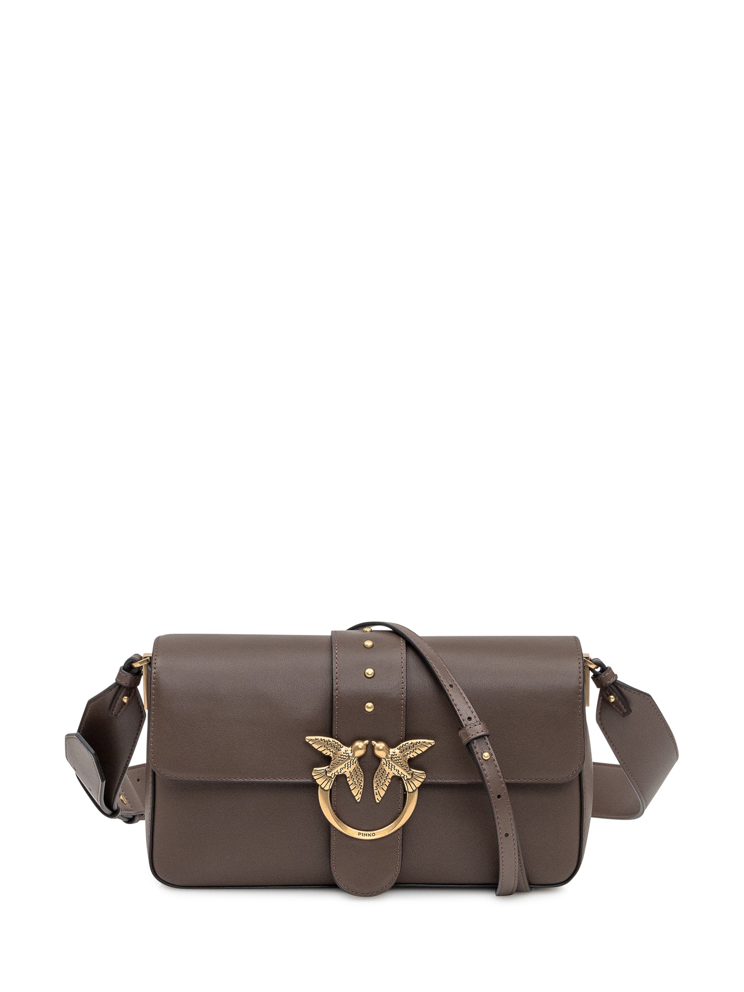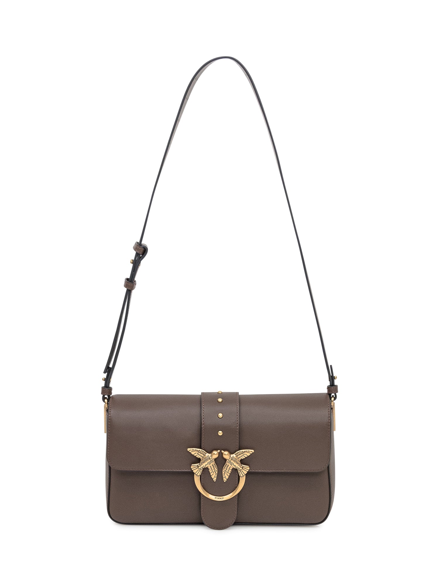 Pinko Love Bag Icon Simply in brown leather with golden Love Birds buckle.