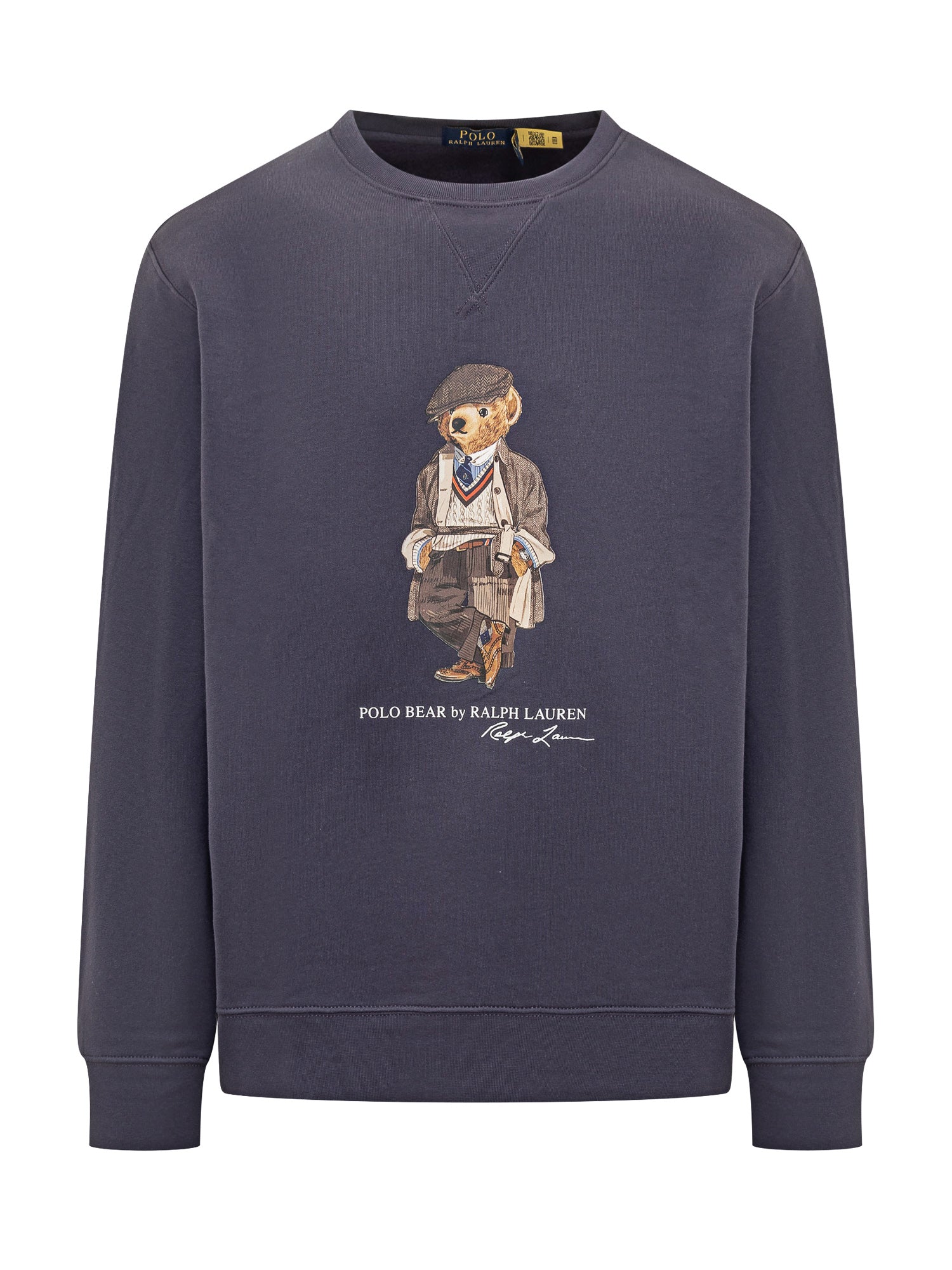 Men s blue crewneck sweatshirt with Polo Bear print by Ralph Lauren. Classic fit and timeless style with iconic detailing.