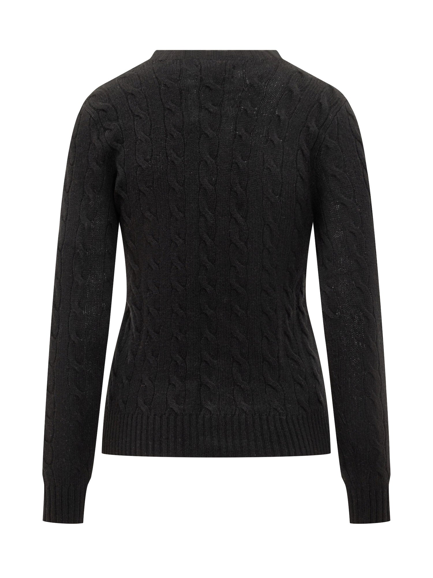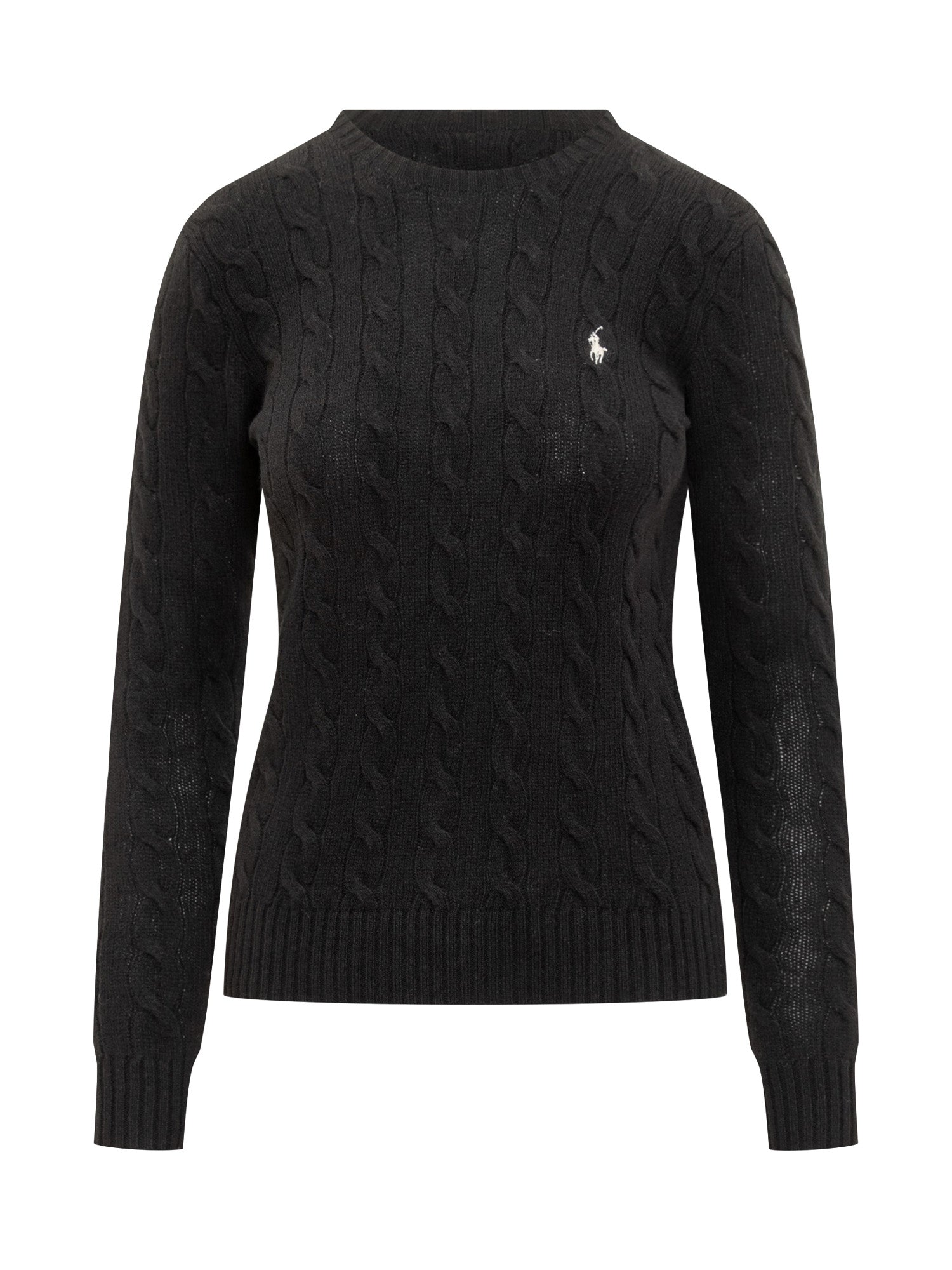Ralph Lauren Julianna sweater in black cotton with cable knit and embroidered logo.