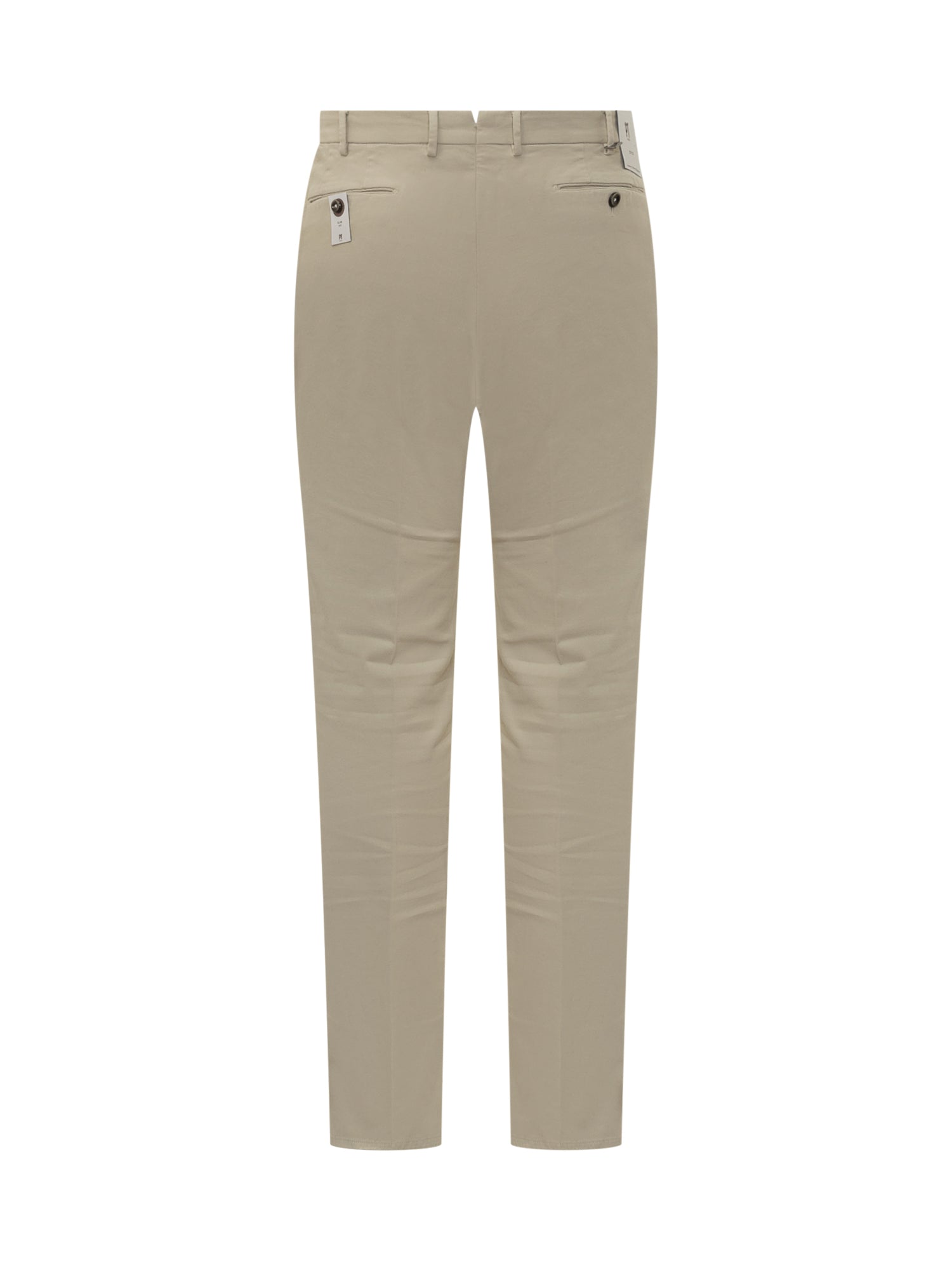 PT Torino olive green stretch cotton chino pants with slim fit and belt loops. Button and zip closure.