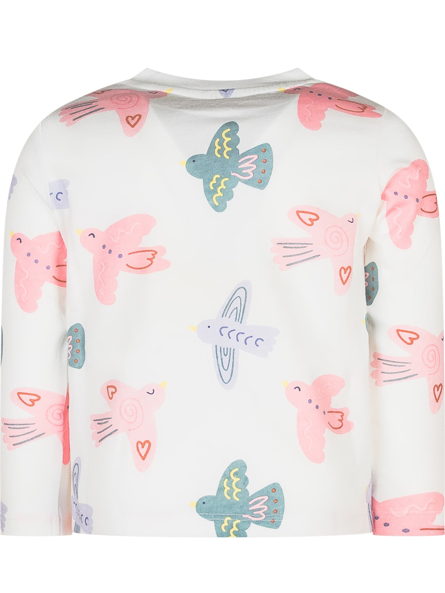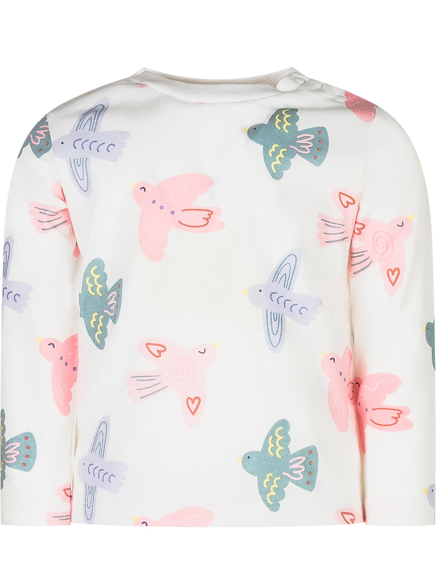 White cotton top by Stella McCartney Kids featuring a cheerful all-over pastel bird print.