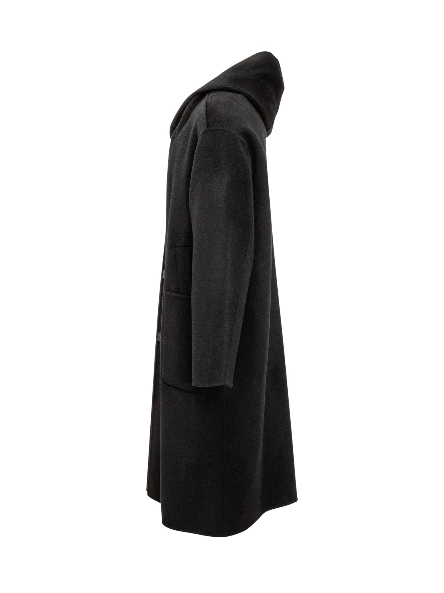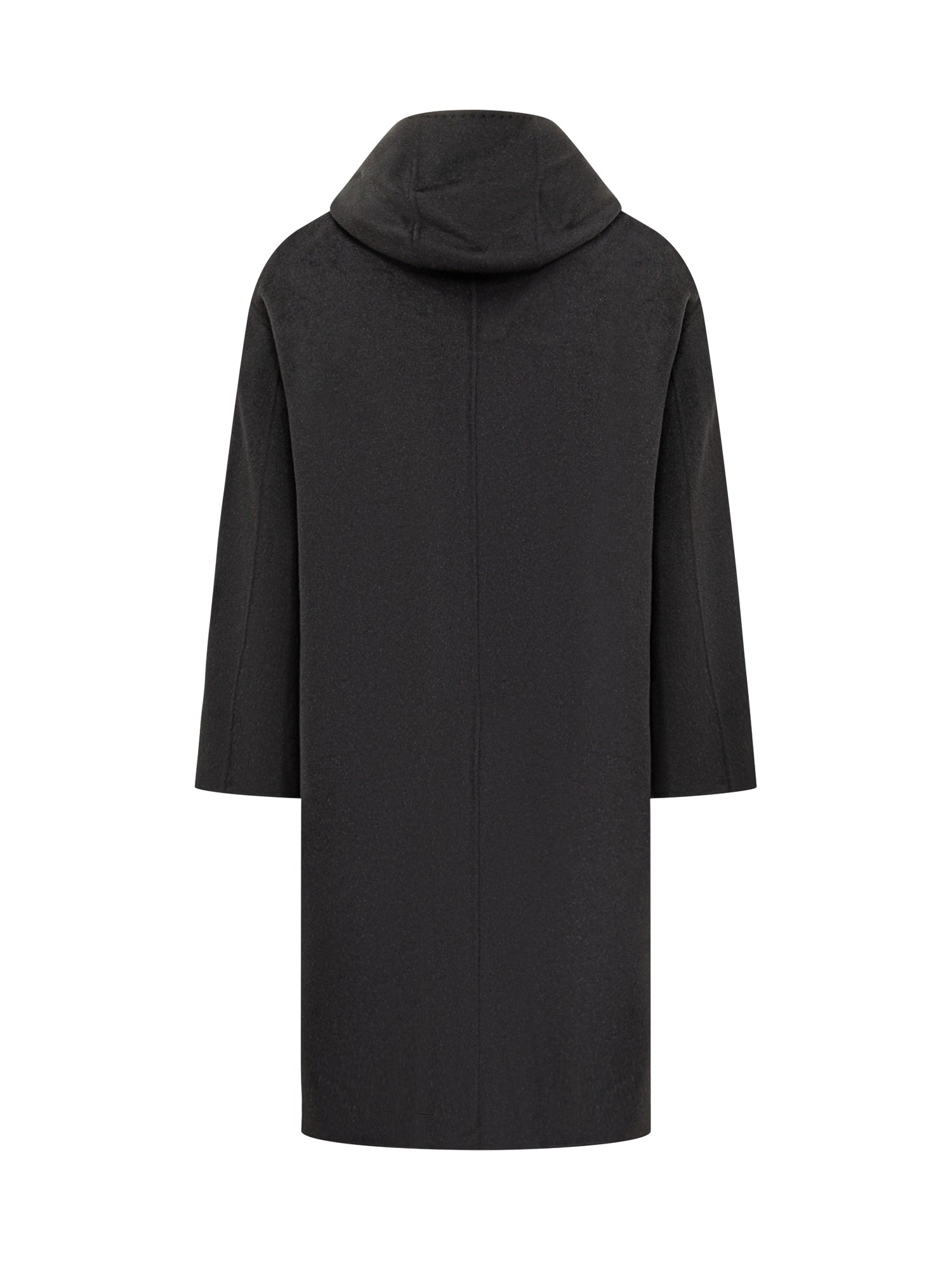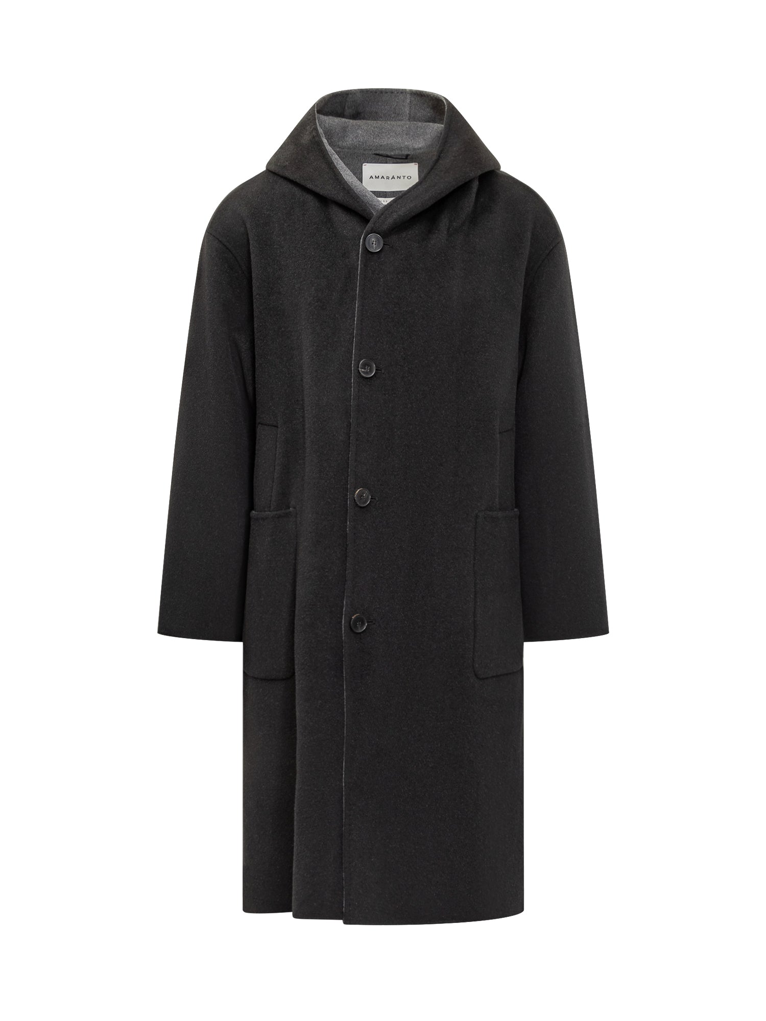 Amaranto black wool coat with hood, patch pockets and button closure.
