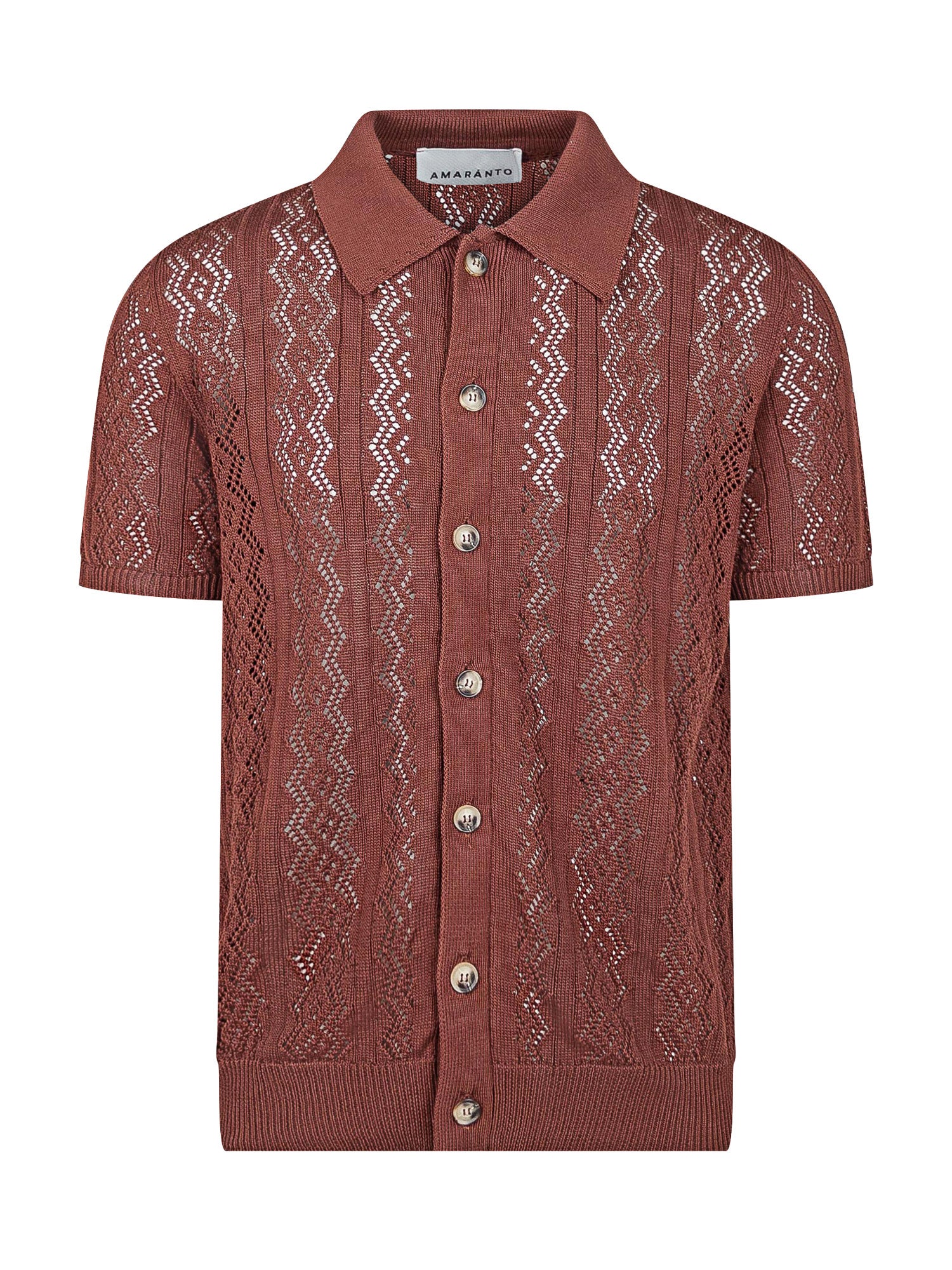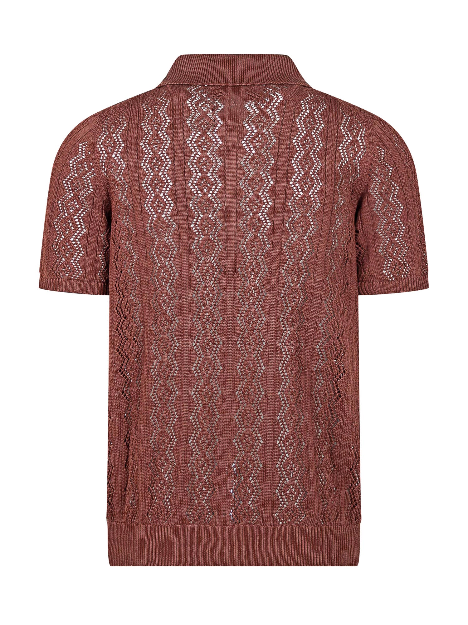 Shirt with perforated embroidery. Polo collar. Short sleeves. Closure with buttons. Neck, hem and ribbed cuffs.