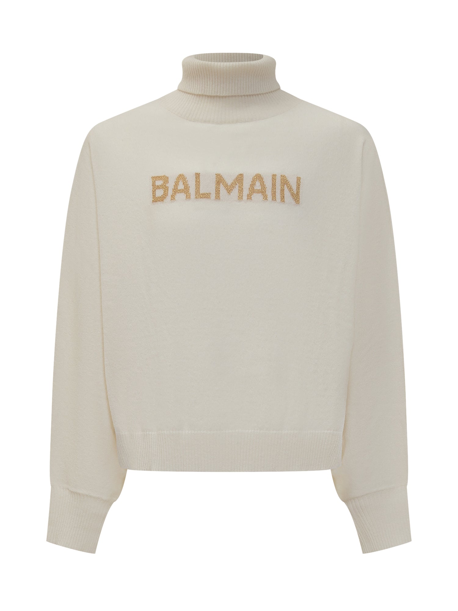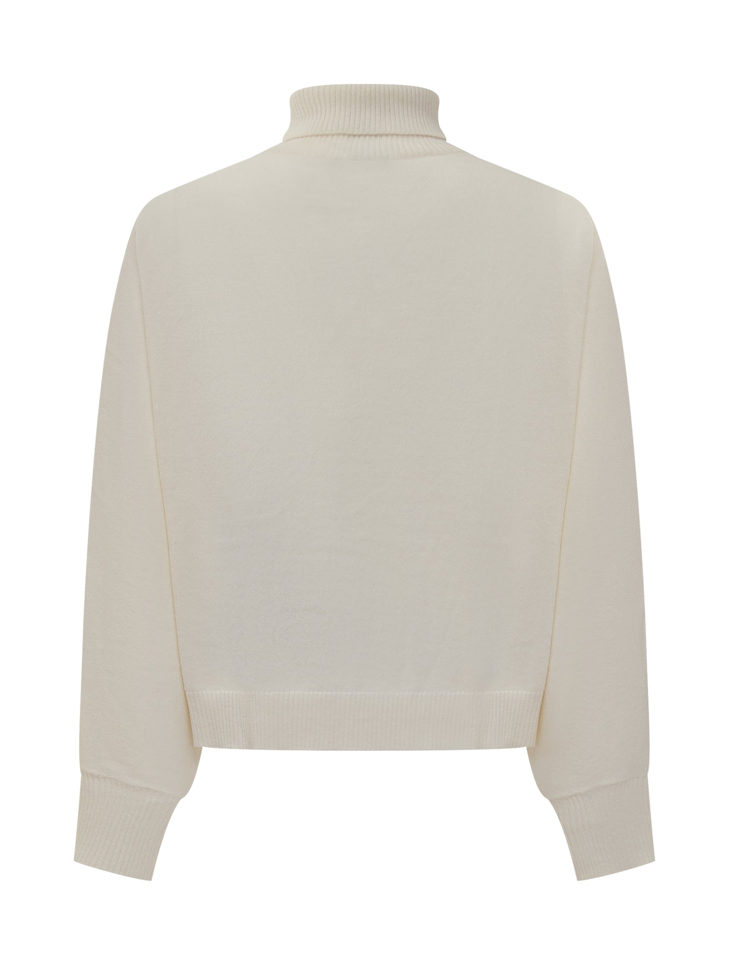 Turtleneck sweater. Ribbed hems. Jacquard logo on front.