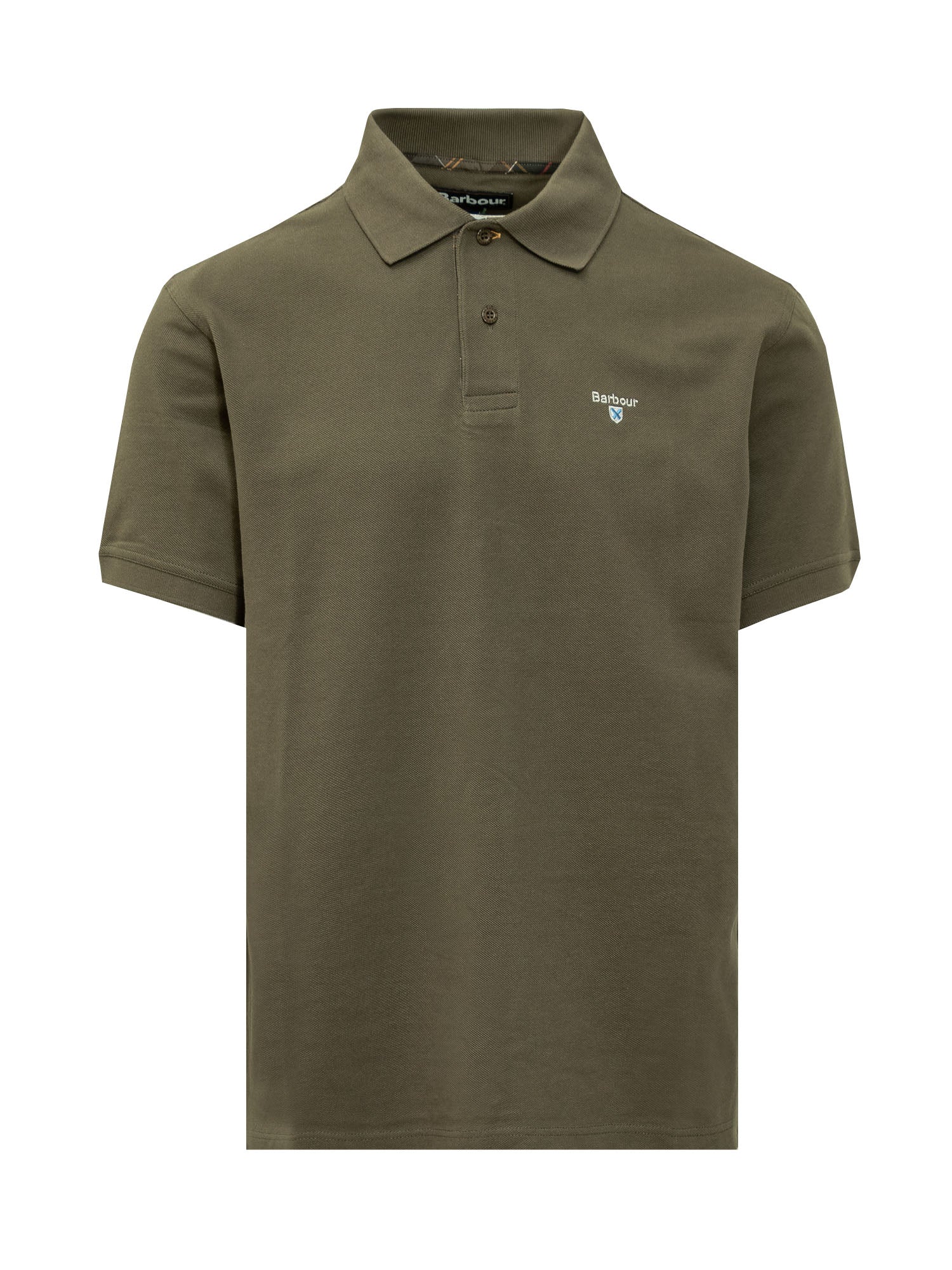 Short-sleeved polo shirt in cotton pique. Classic collar. Button closure. Ribbed hems. Embroidered logo on front. Tartan embroidery on inside of collar.