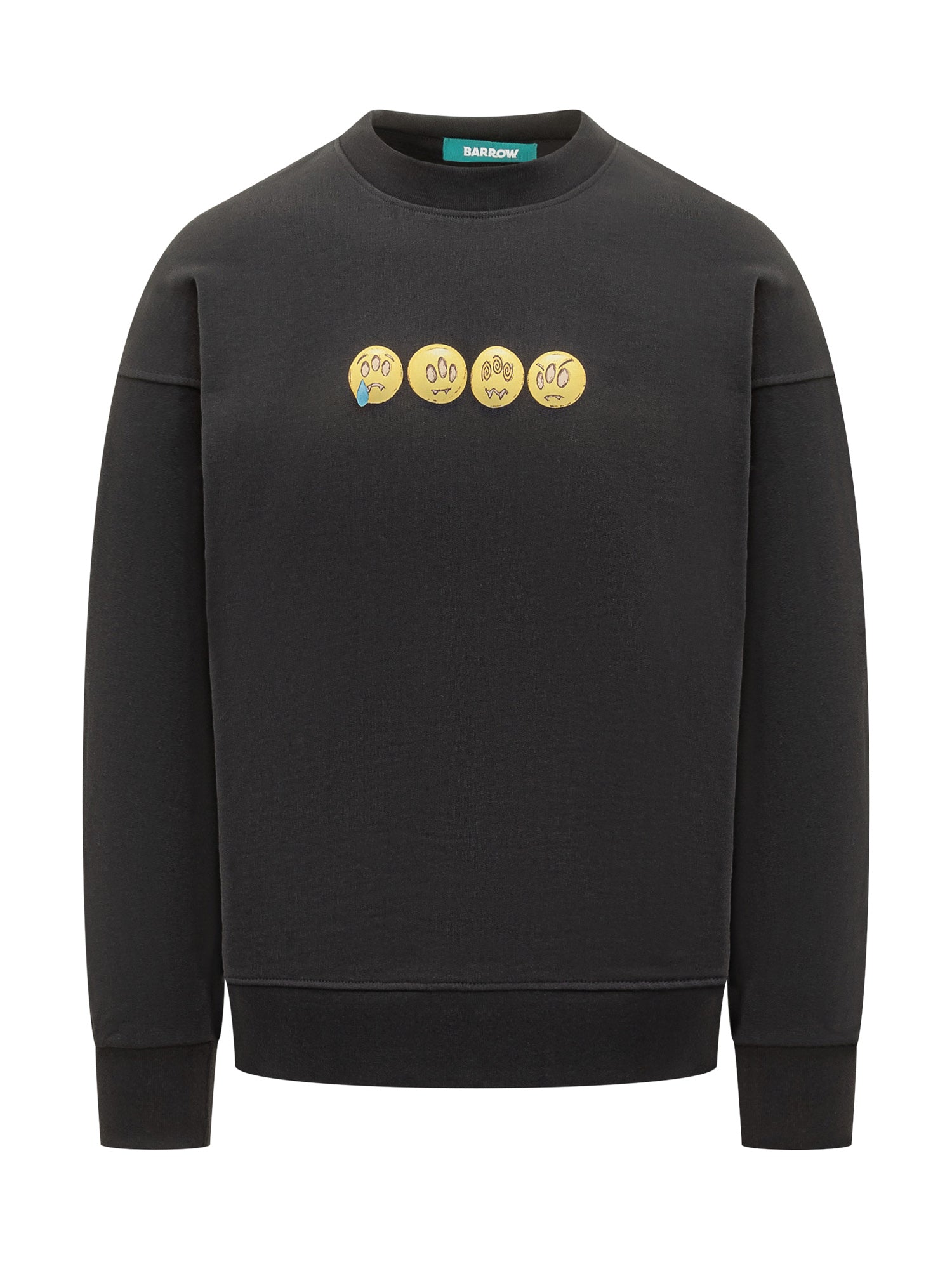Barrow black cotton sweatshirt with regular fit. Features four embroidered yellow emojis on the chest, adding an ironic and distinctive brand detail.