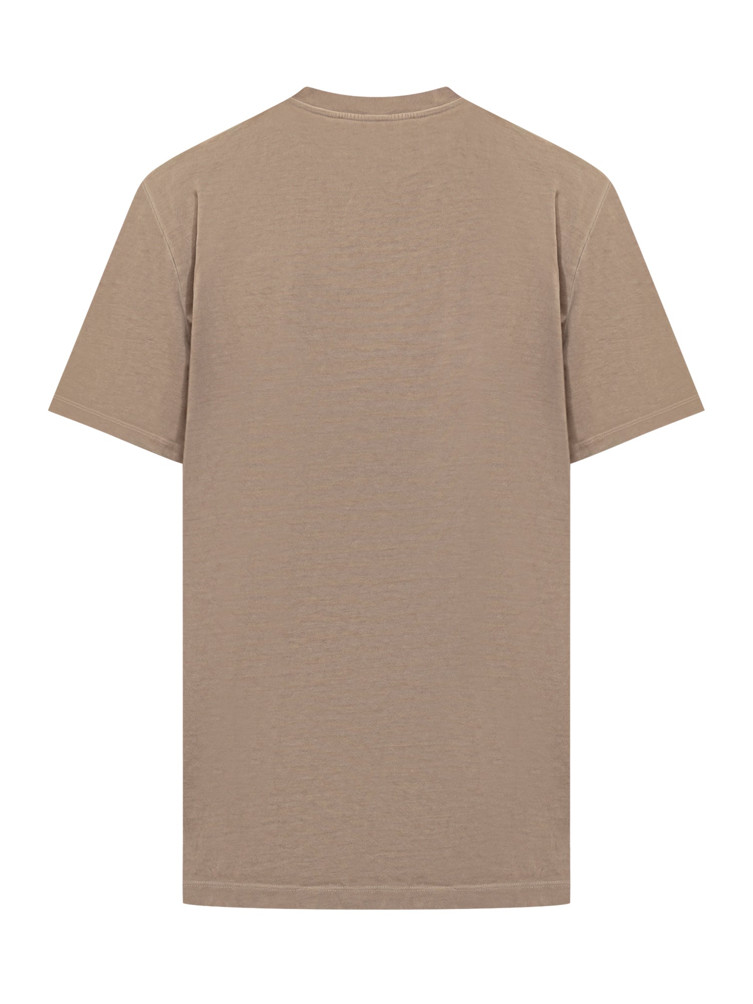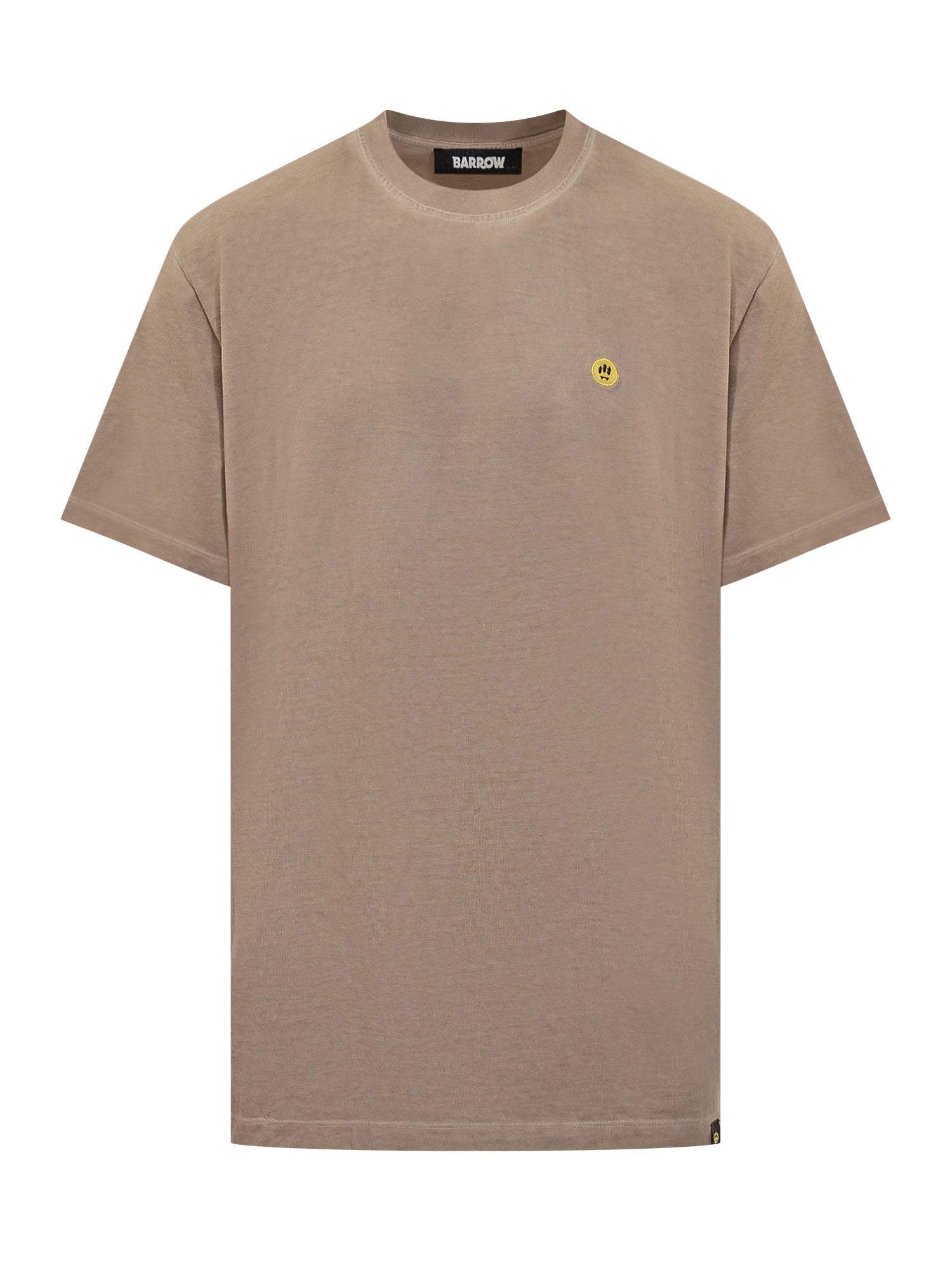 Beige cotton T-shirt. Round neck. Embroidered logo.