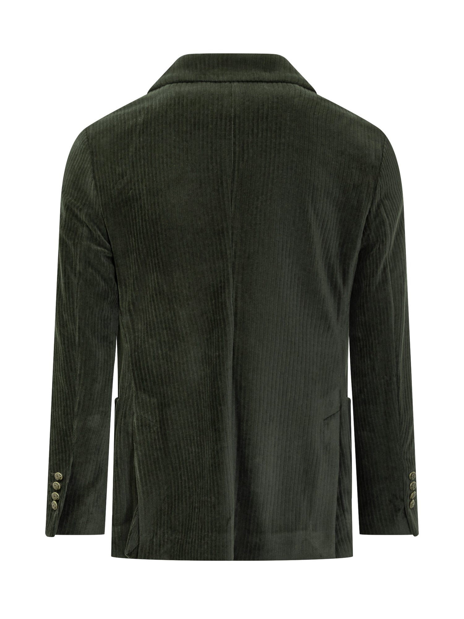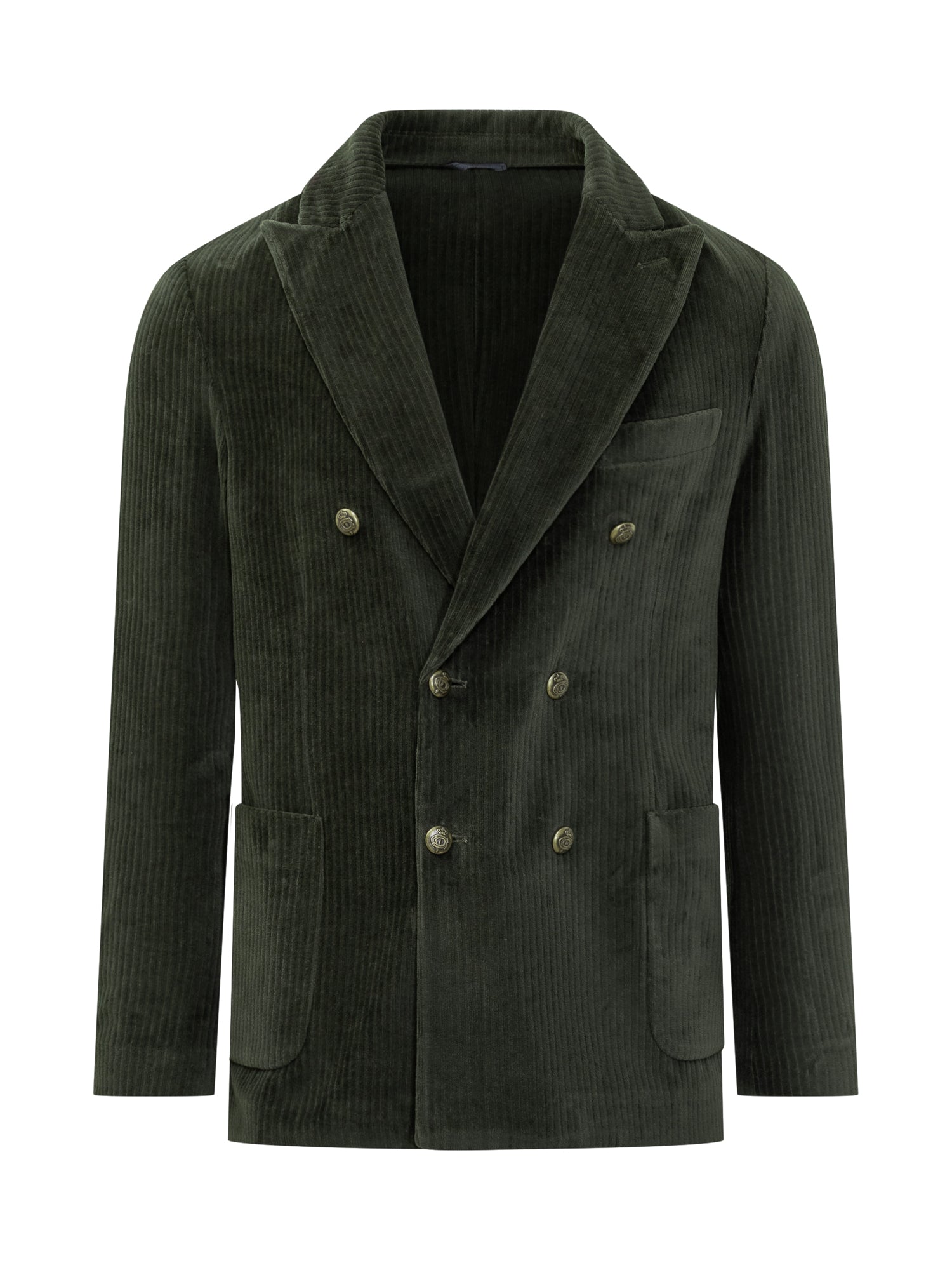 Circolo 1901 double-breasted blazer in green corduroy. Soft tailoring, patch pockets.