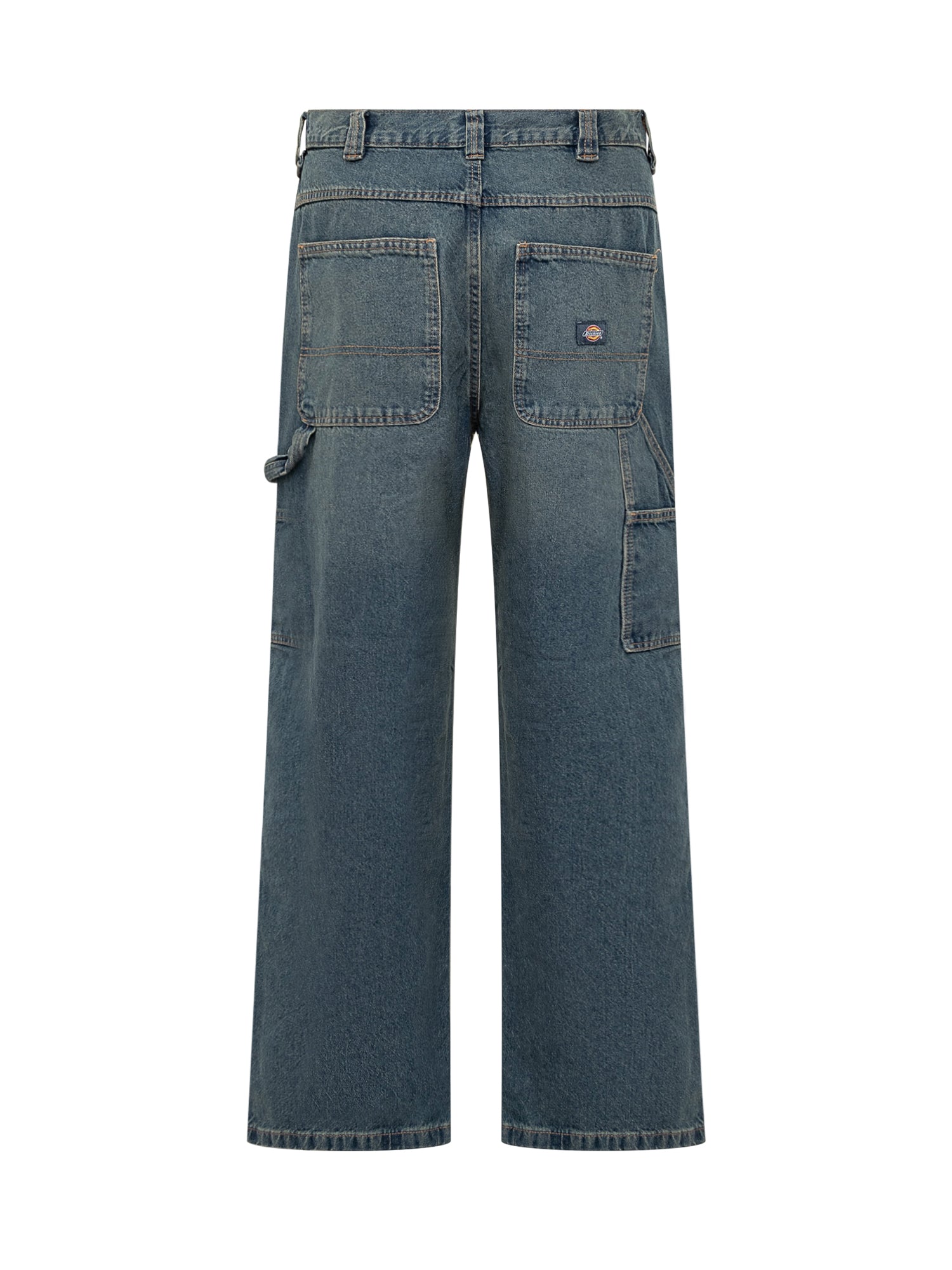Dickies blue denim jeans with button and zip closure. Wide-leg design.