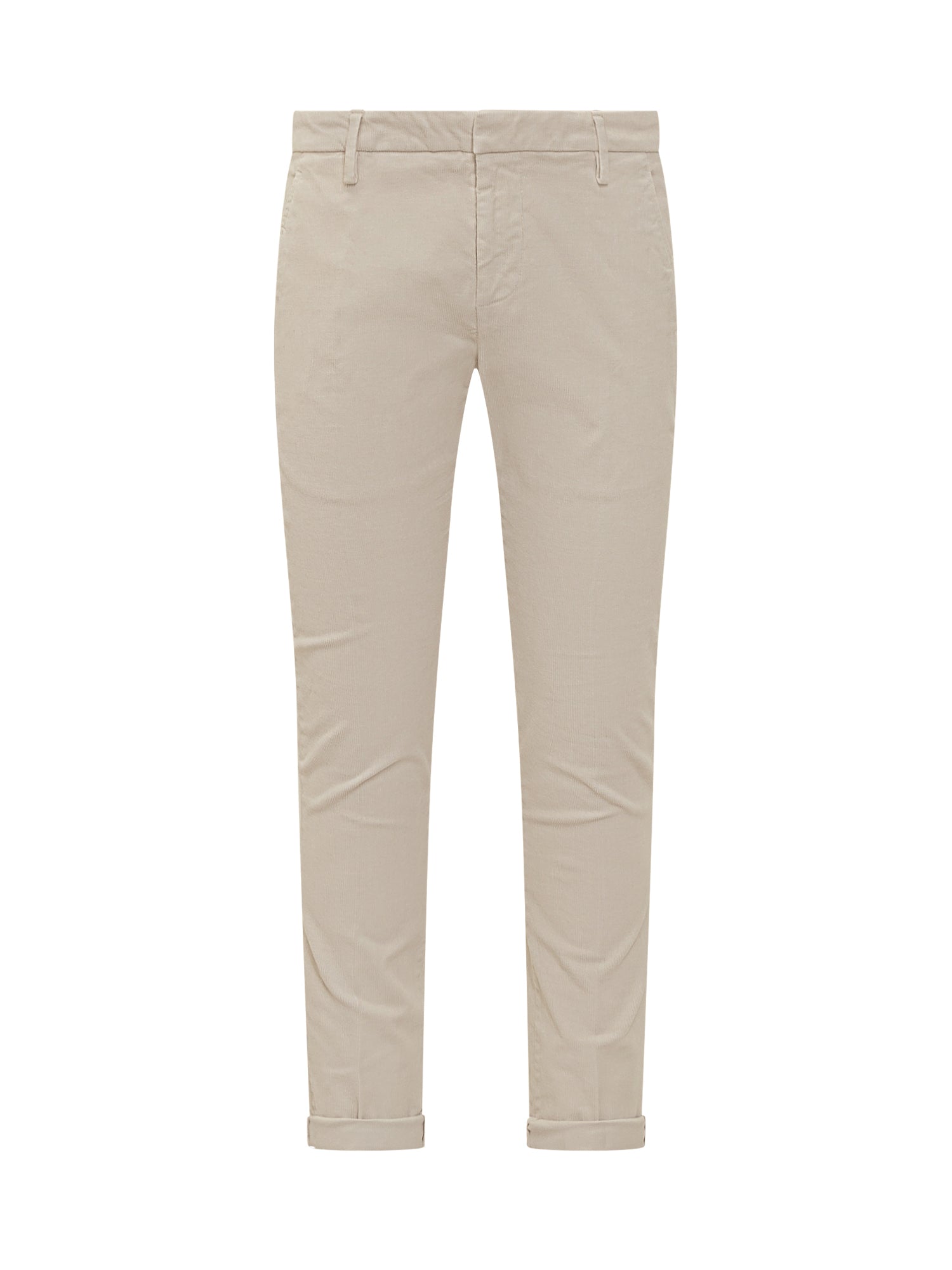 Dondup Gaubert trousers in beige stretch cotton. Slim fit with turned-up hem and zip-button closure.