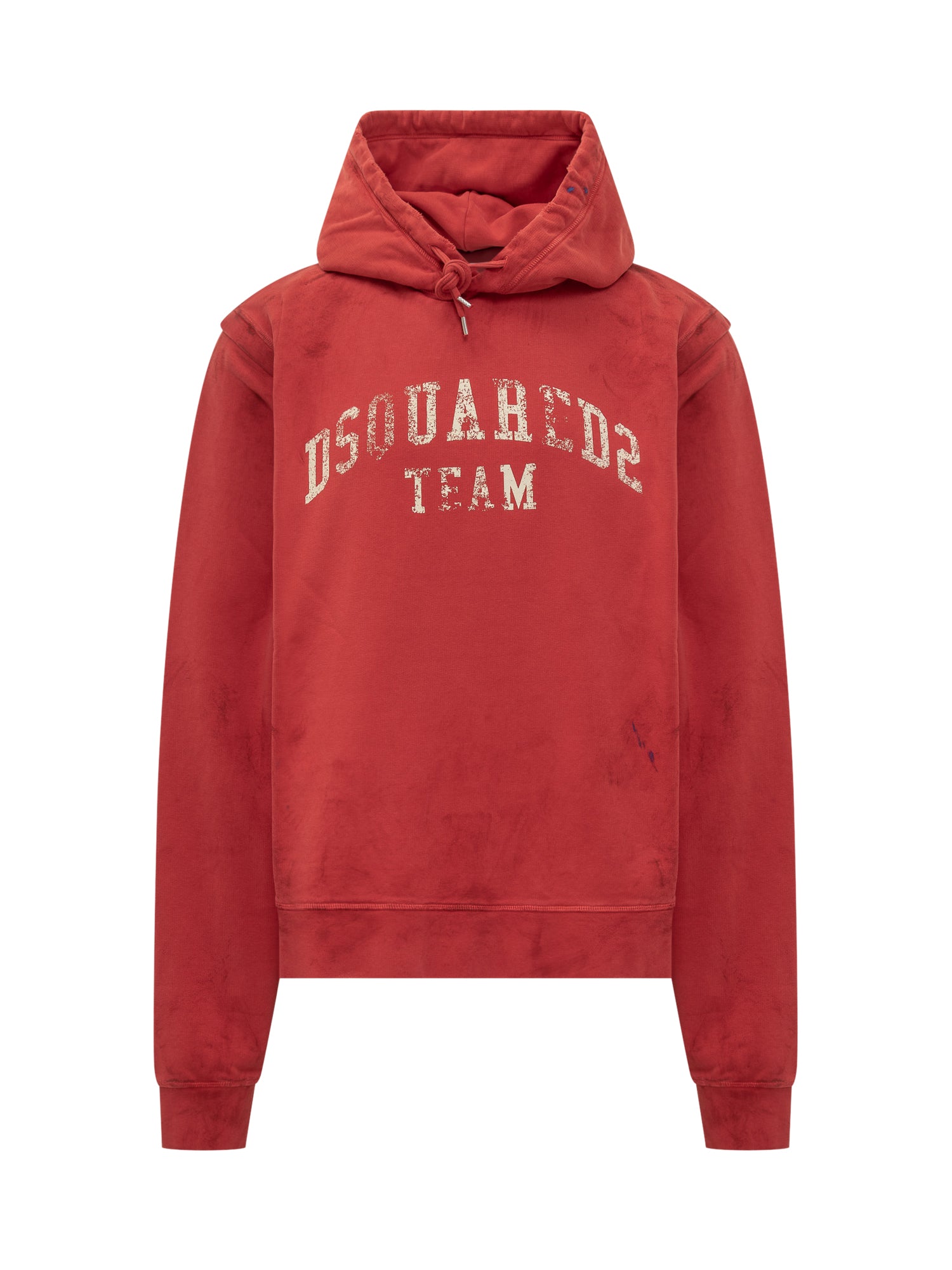 Dsquared2 red cotton hoodie with vintage effect. Contrasting TEAM logo print on the chest, front kangaroo pocket and relaxed fit.
