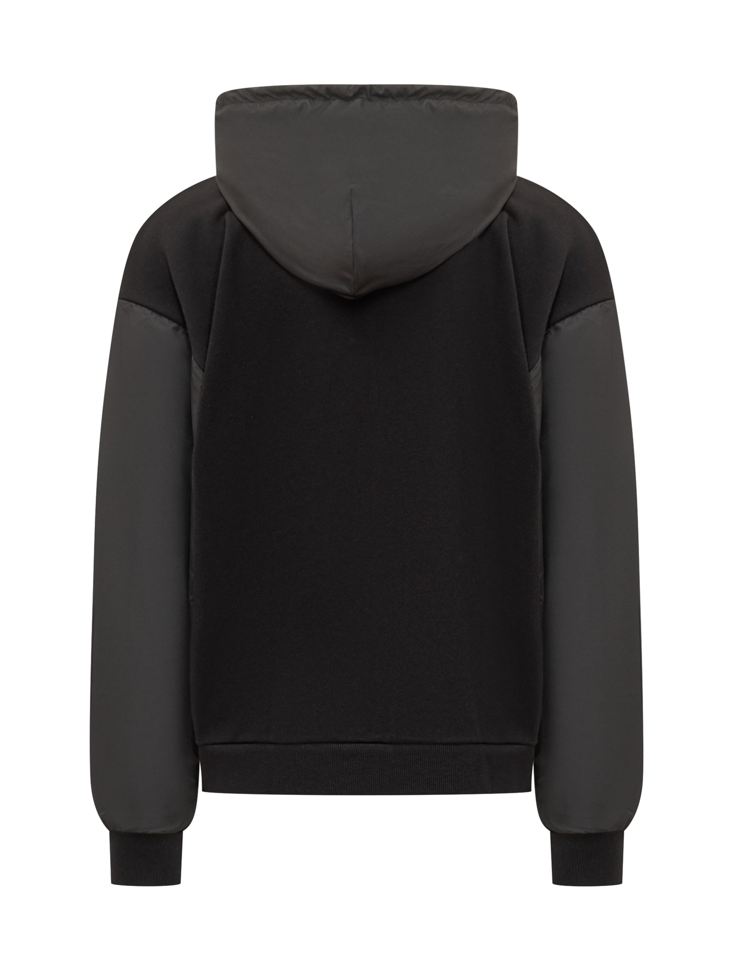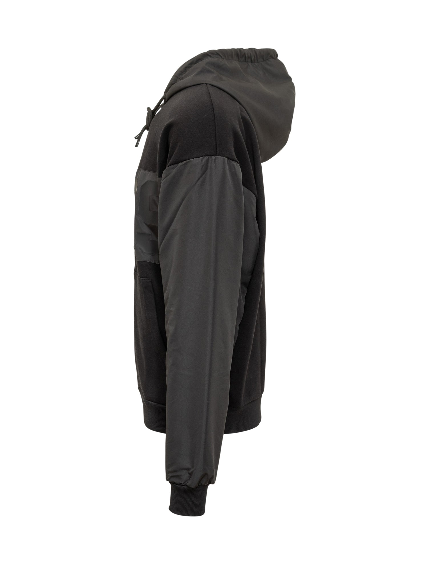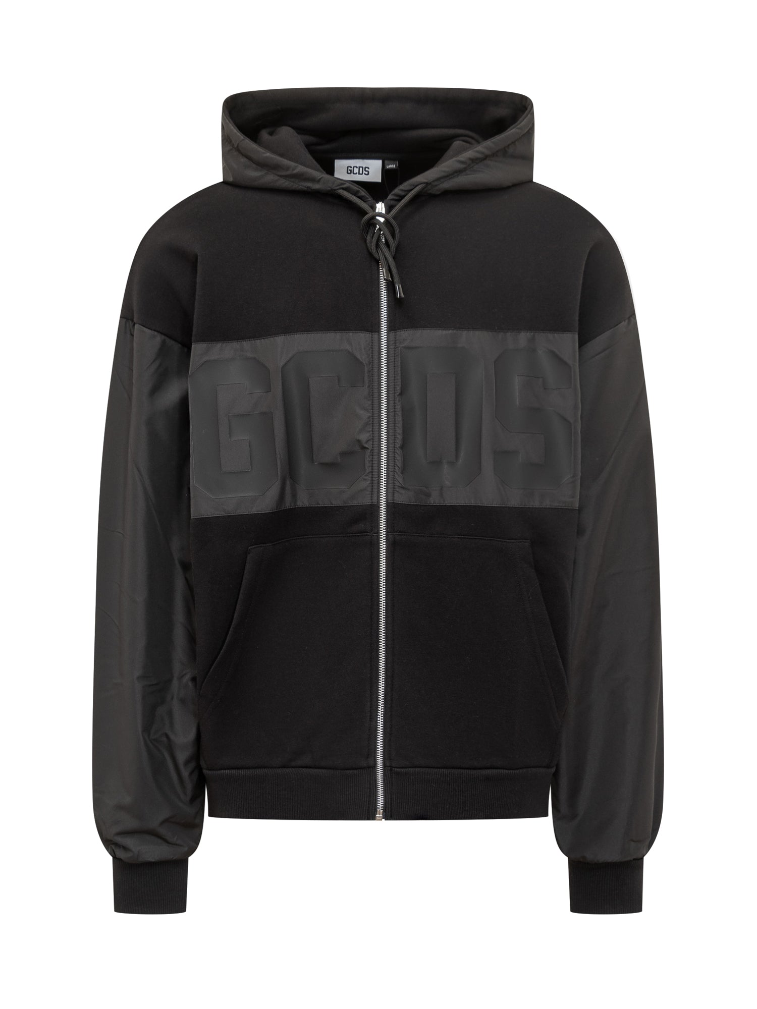 GCDS hoodie in cotton with nylon inserts, front zip and embossed logo on the chest.