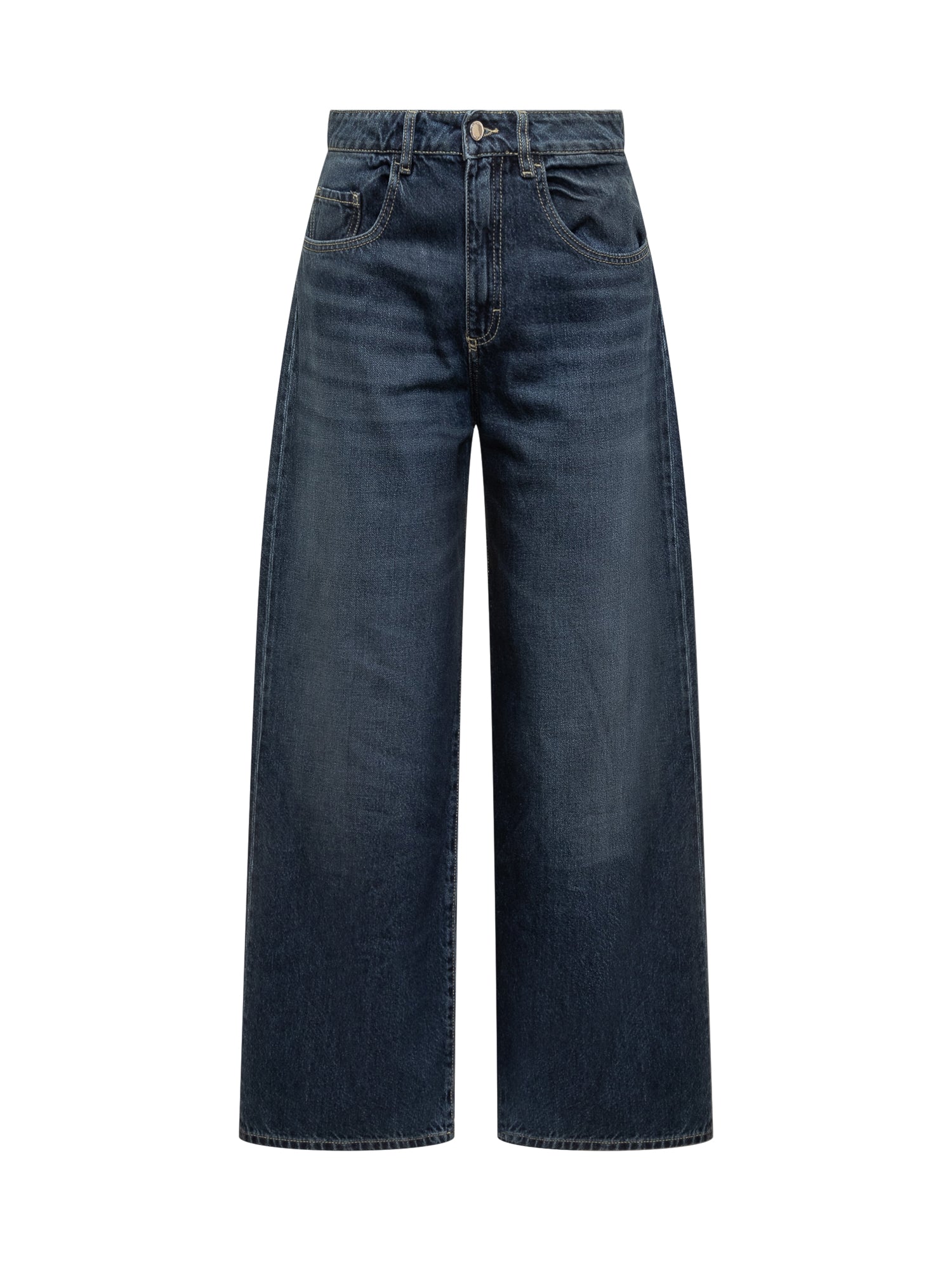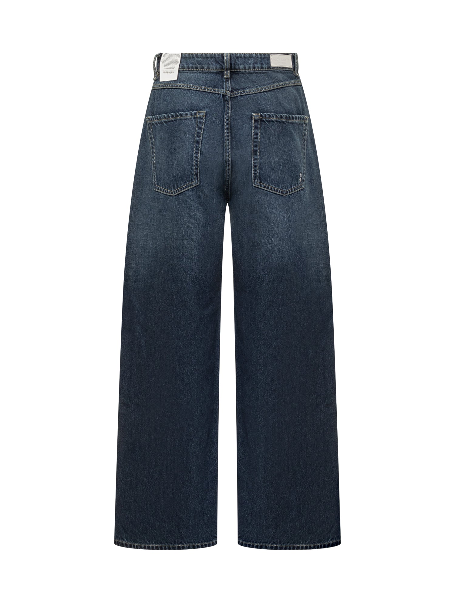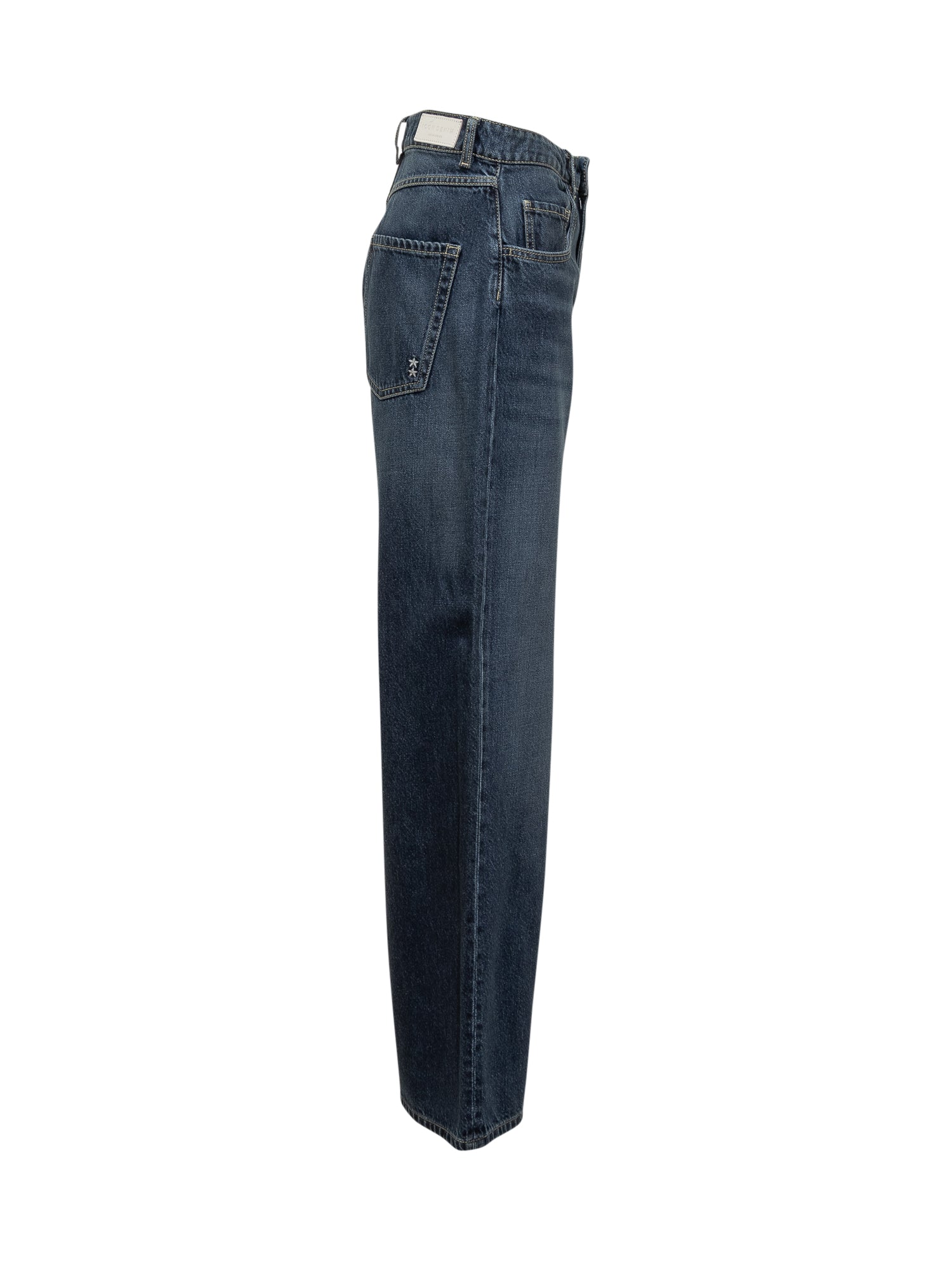 Icon Denim Poppy jeans in dark blue denim with wide cropped leg. High waist with button and zip closure.