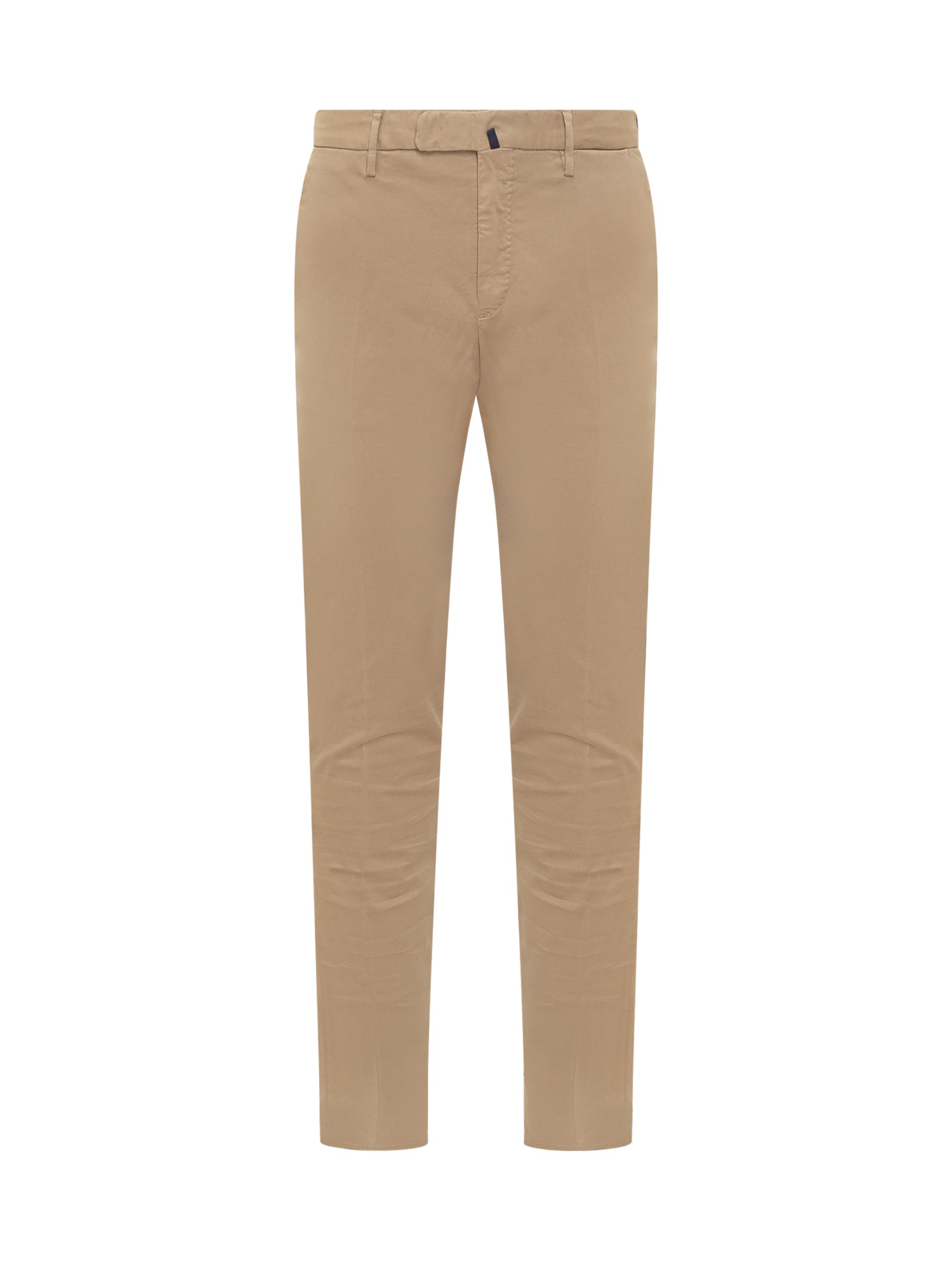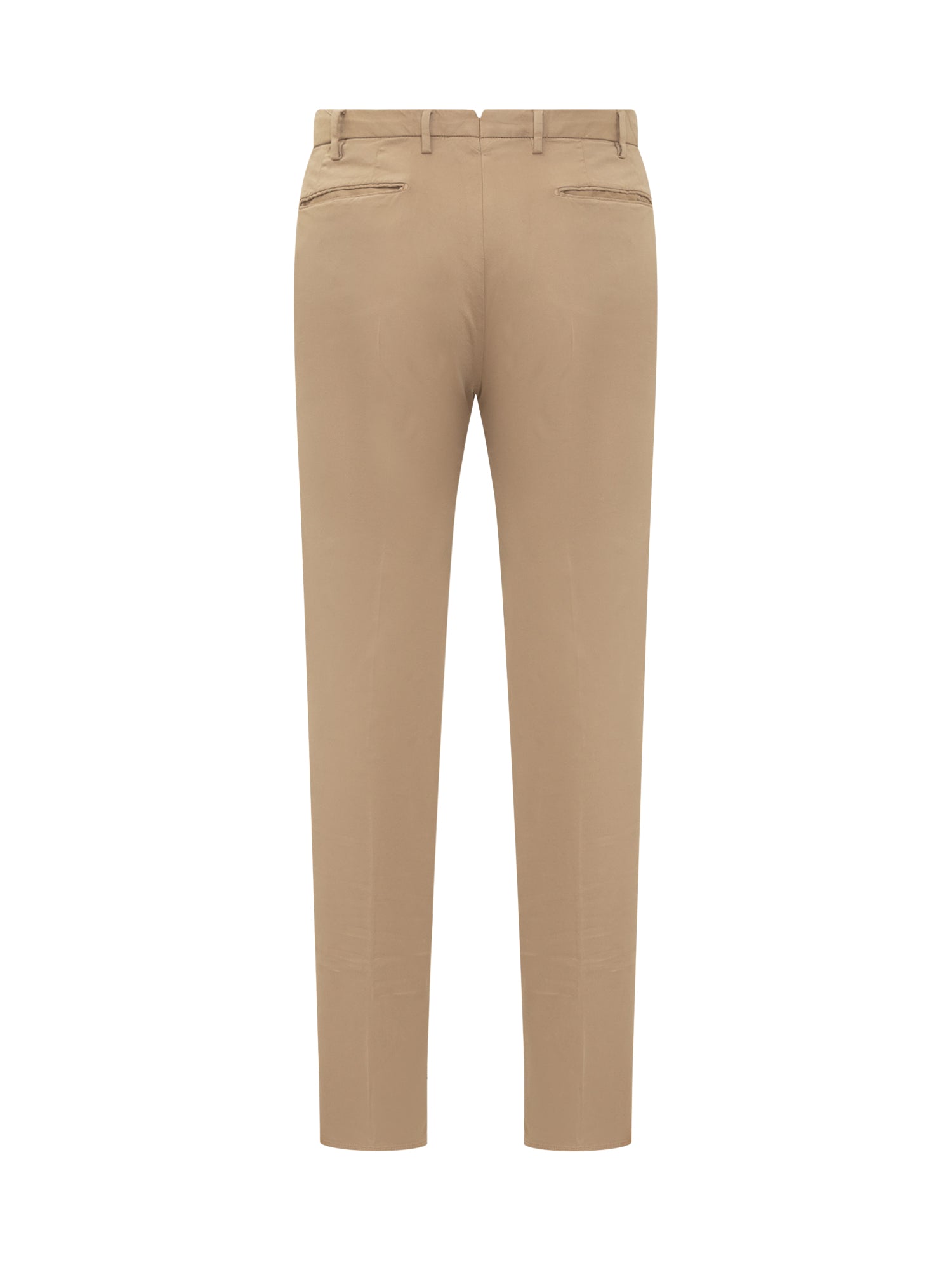 Long trousers. Closure with buttons and zip. Ironed fold. Belt loops. Slim fit. Fitted pockets in the seam on the sides. Welt pockets on the back. Begie color.