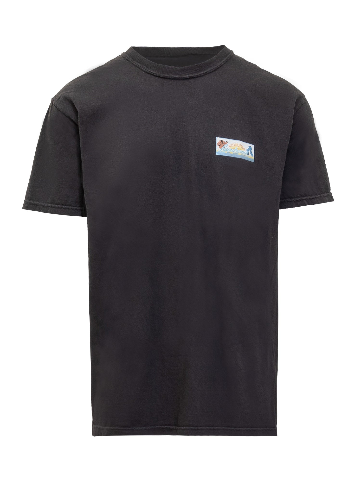 Short-sleeved T-shirt. Crew neck. Ribbed hems. Laundromat logo print on front and back.