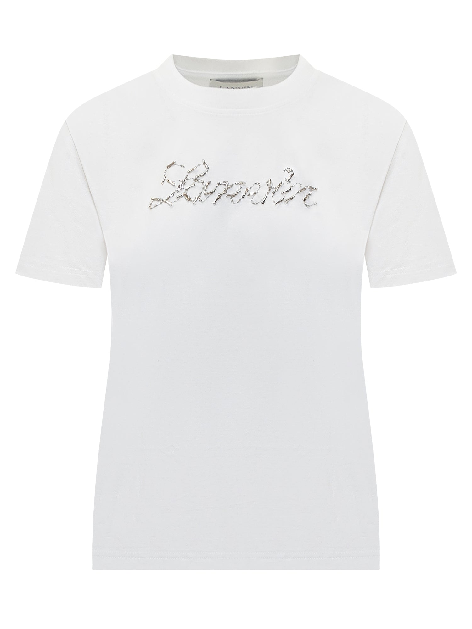 Short-sleeved cotton T-shirt. Round neck. Ribbed hem. Logo on the front.