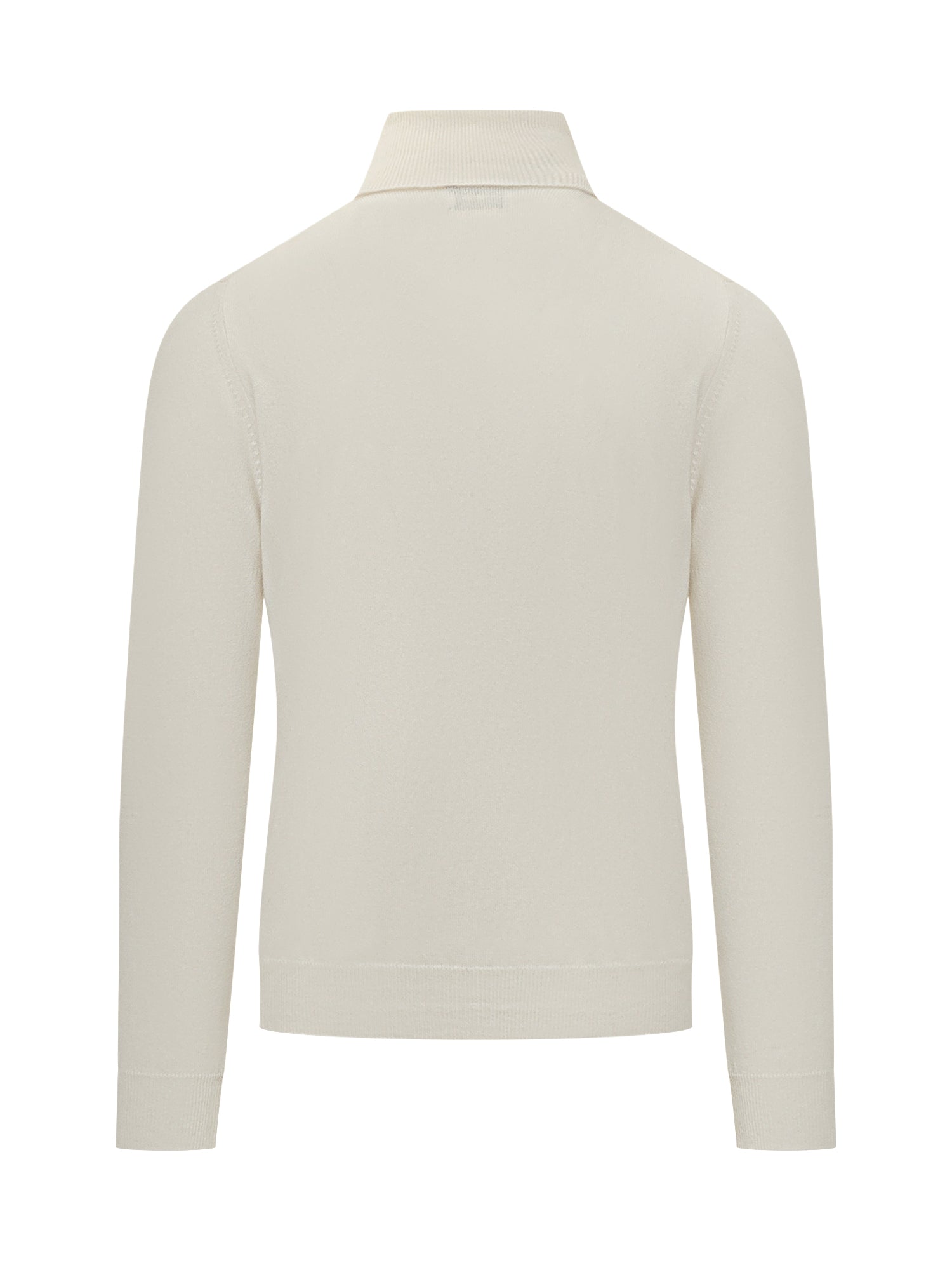Malo blue polo in lightweight wool, with front buttons and long sleeves.