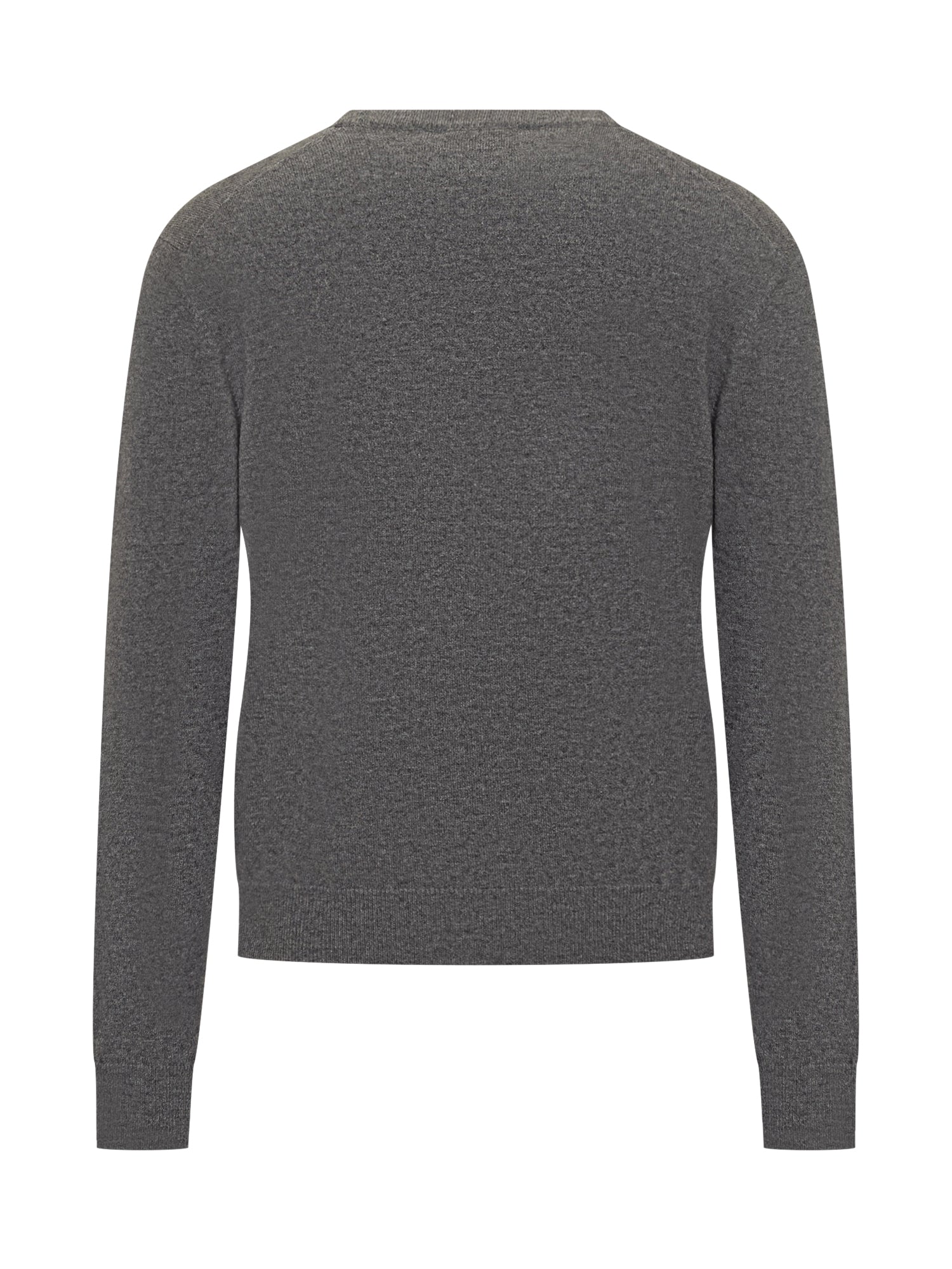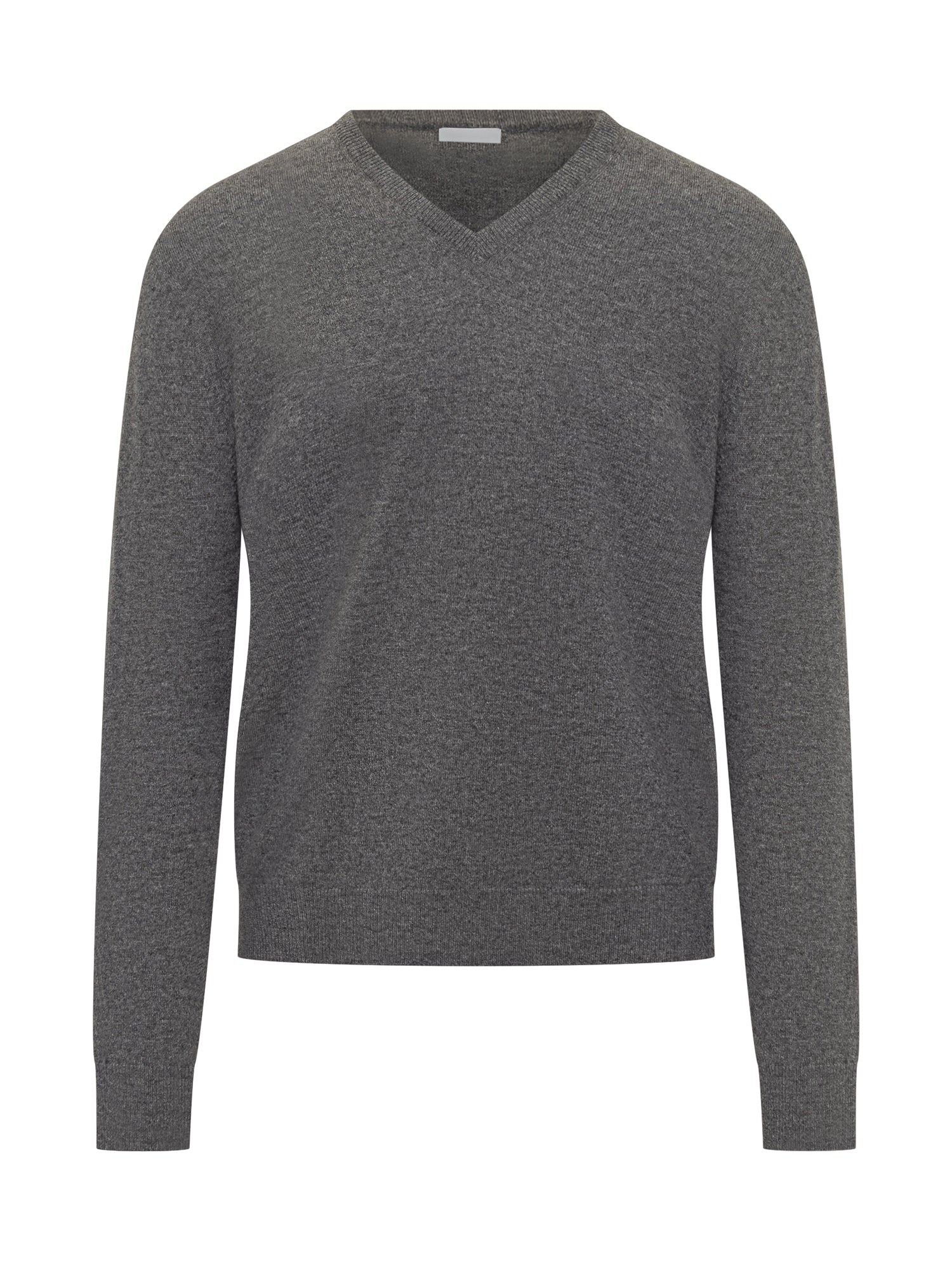 Malo grey virgin wool sweater with V-neck and long sleeves.