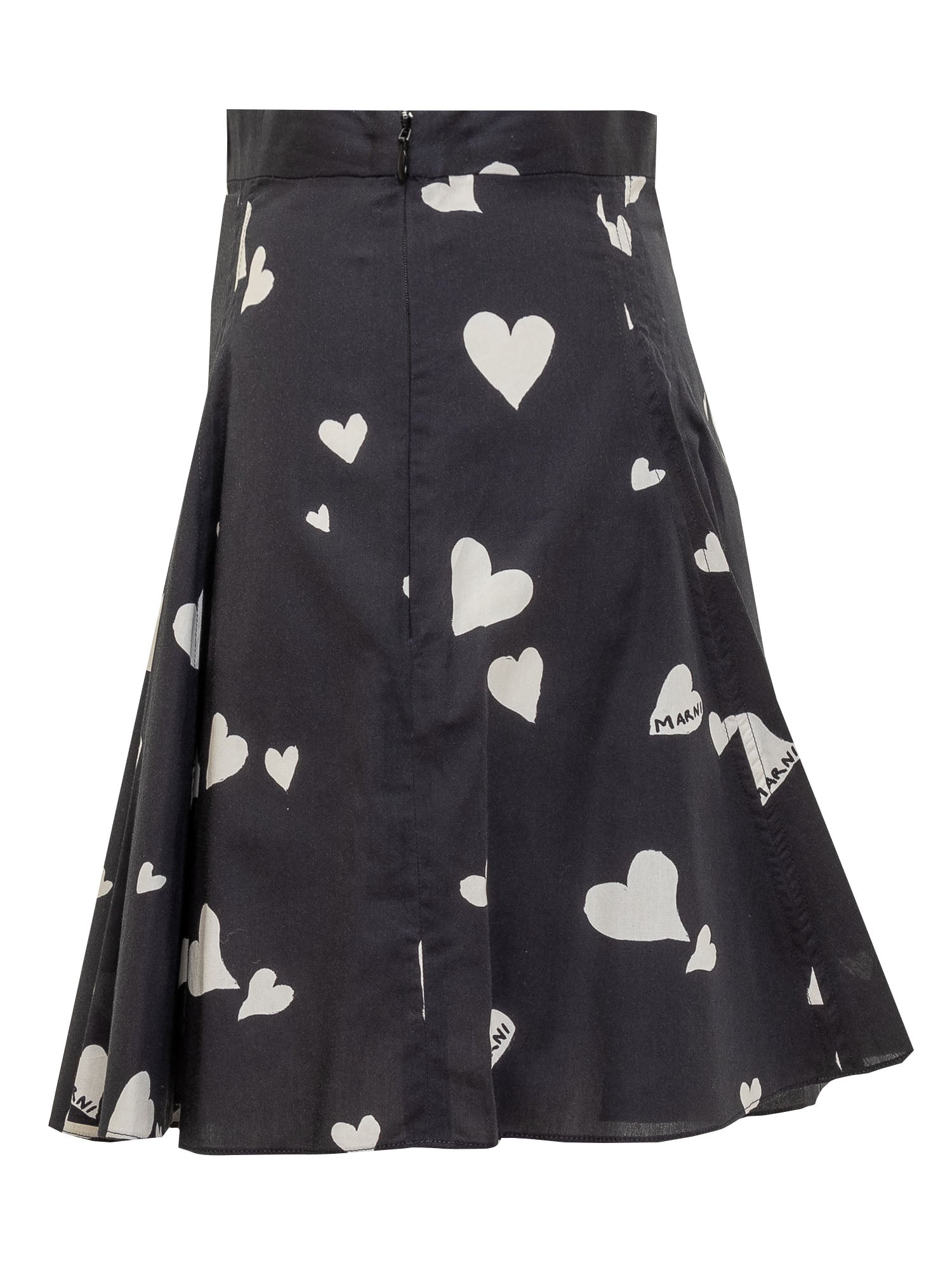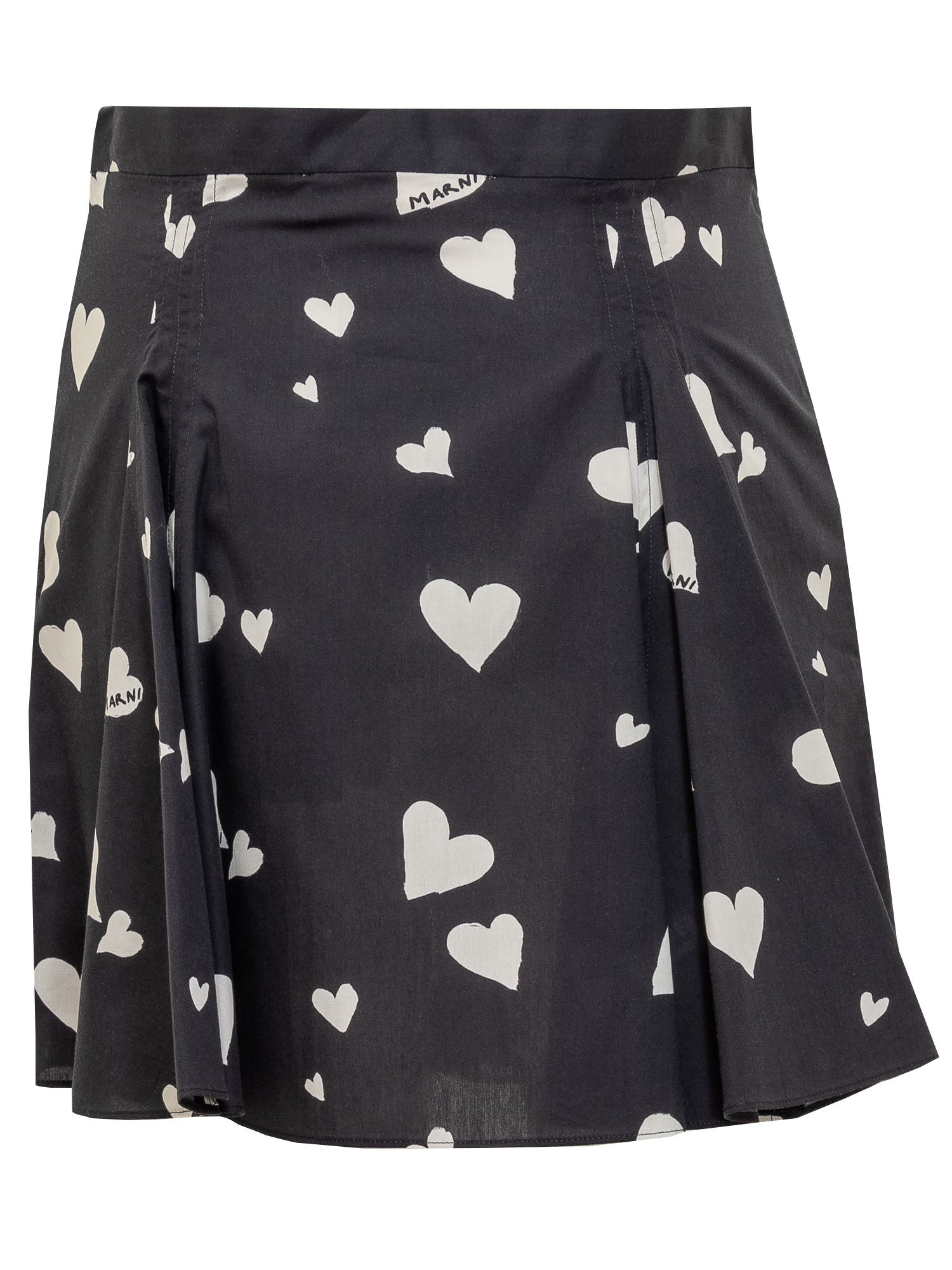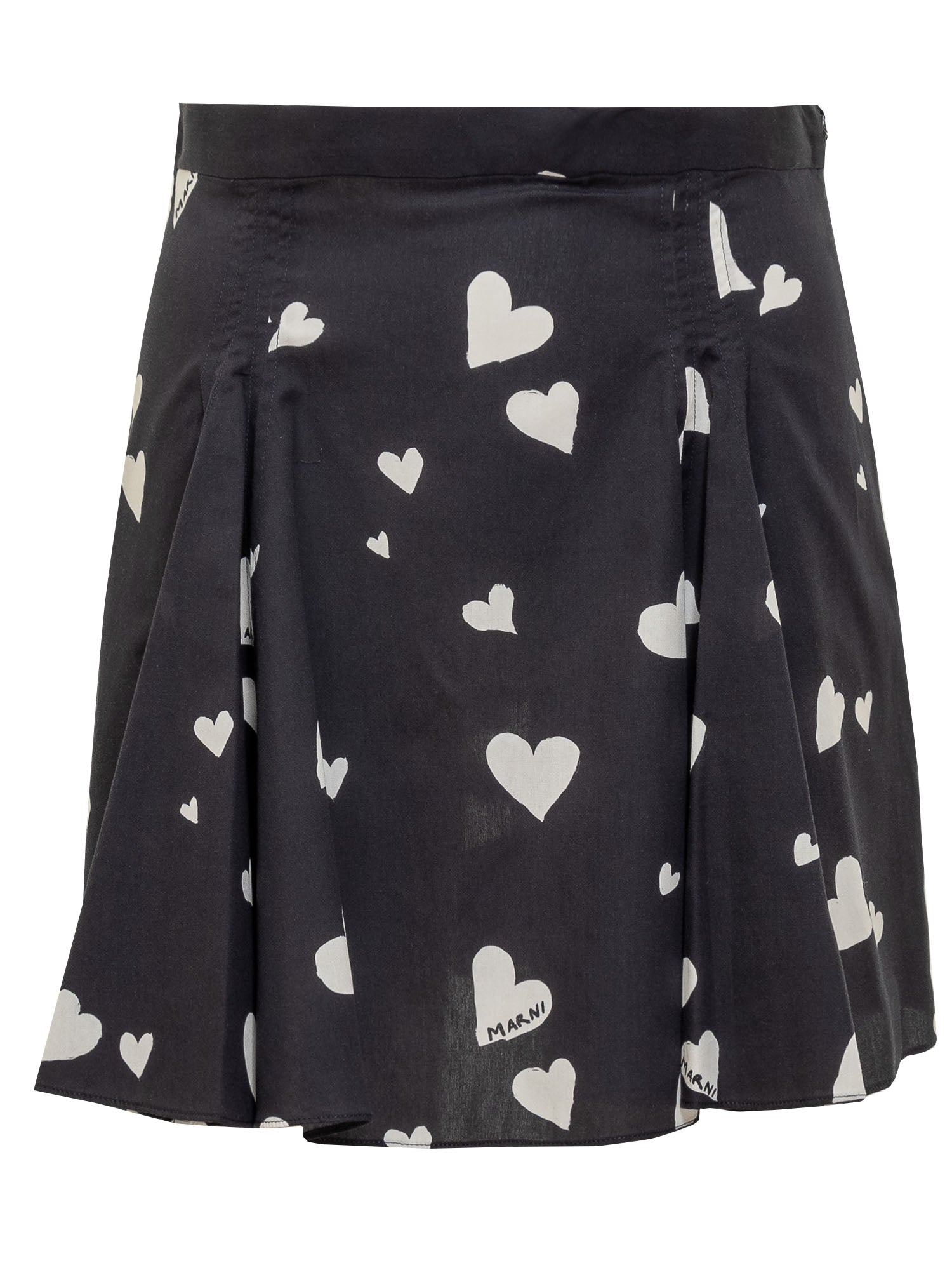 Cotton miniskirt. Zip and side hook fastening. Pleated effect with all-over pleats. Bunch of Hearts motif with all-over logo.
