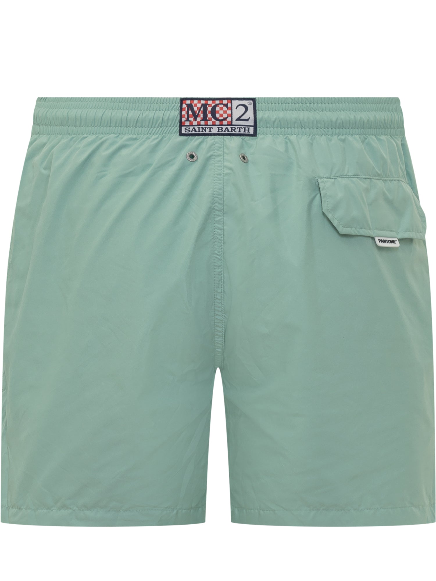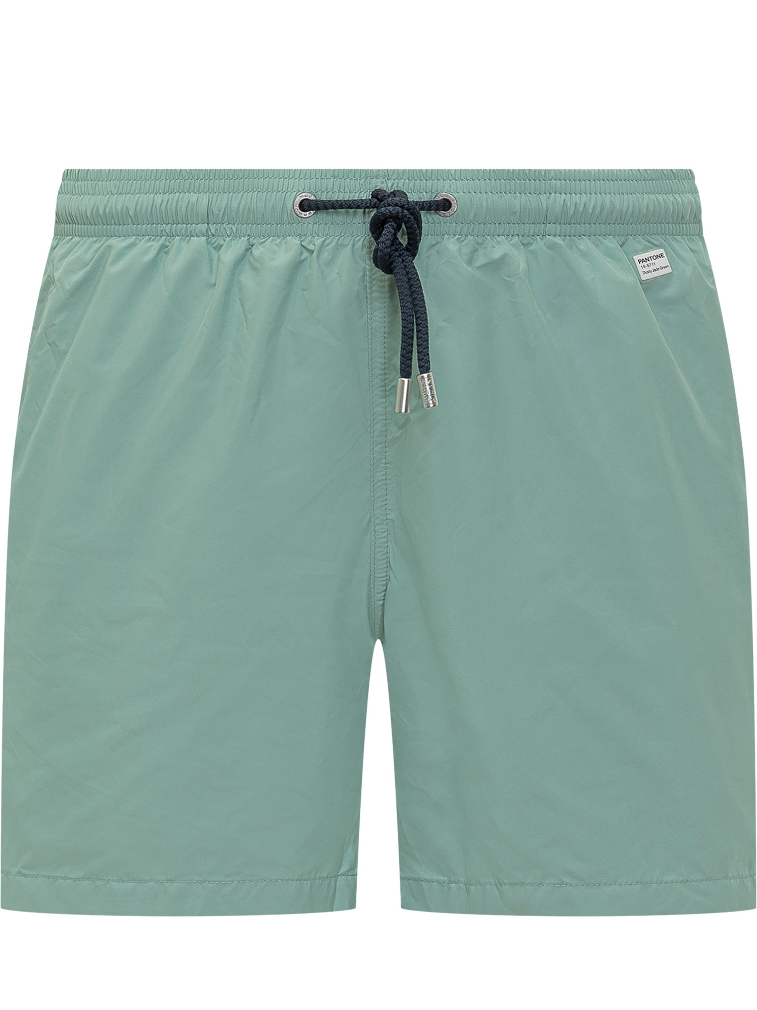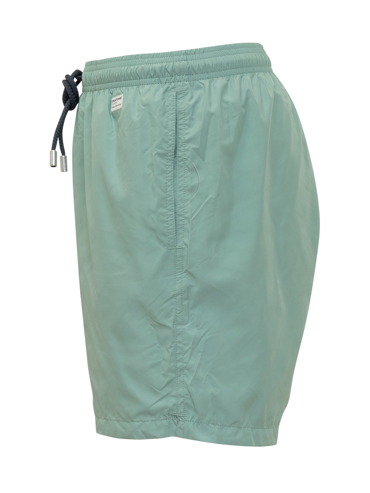 Elasticated waist with drawstring. Flush pockets. Back flap pocket.