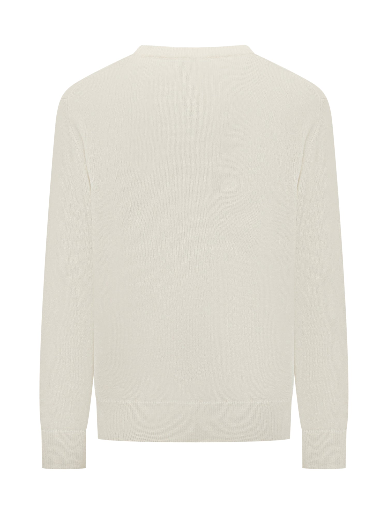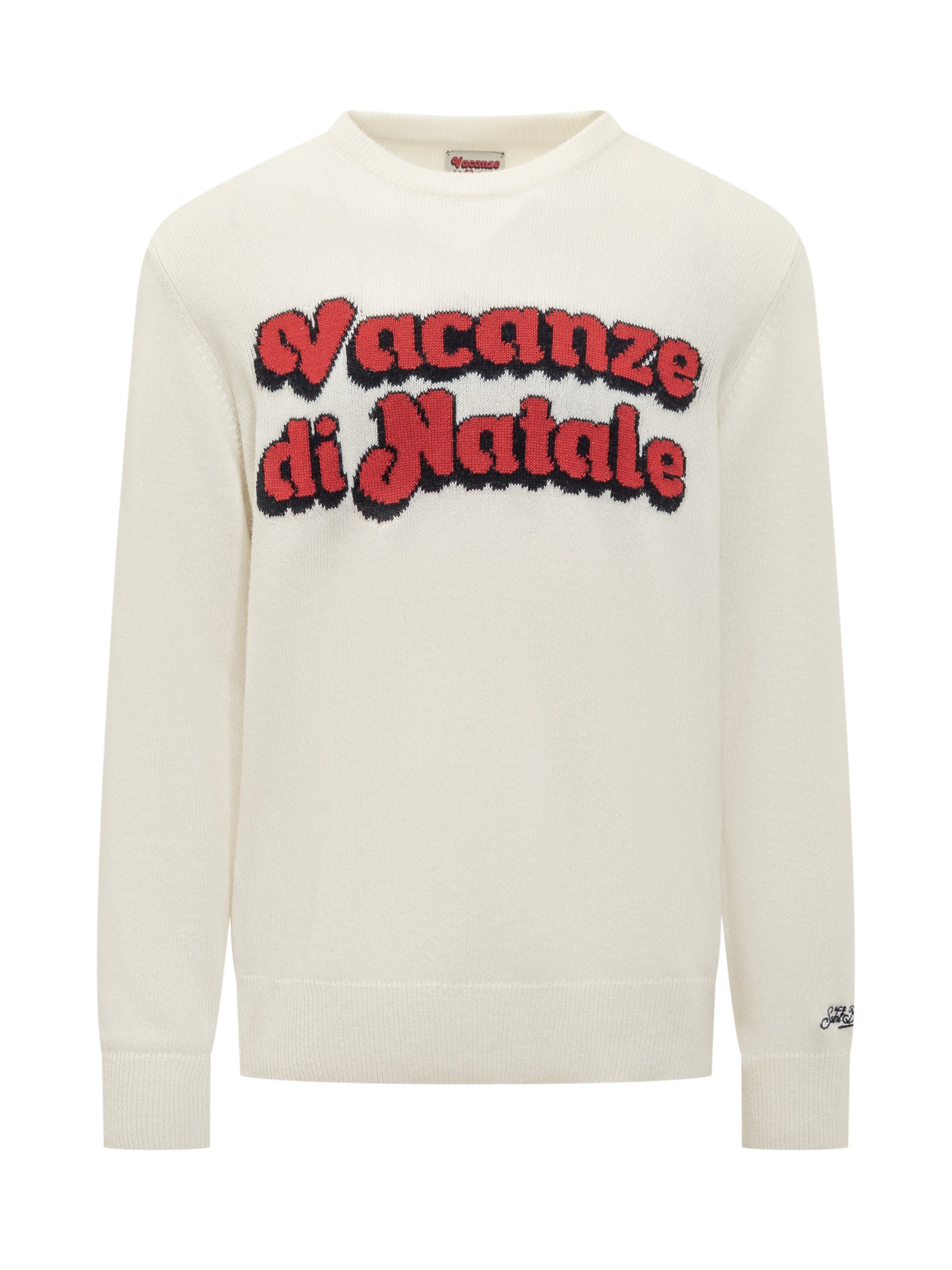Saint Barth white wool sweater featuring bold Vacanze di Natale lettering on the front.