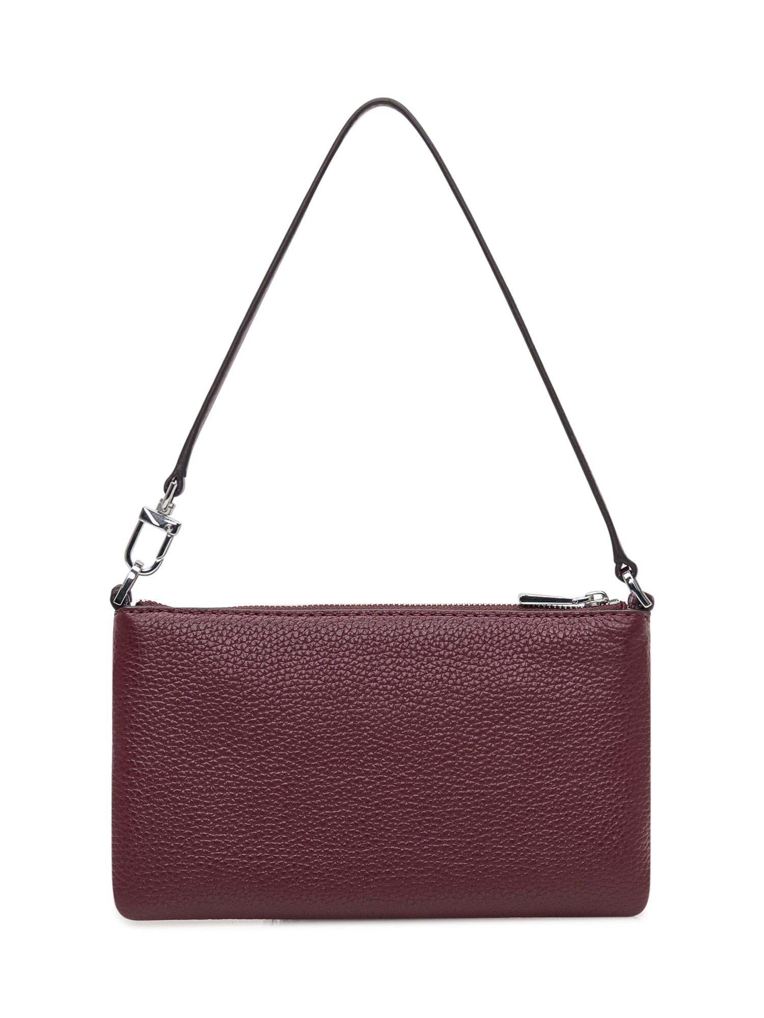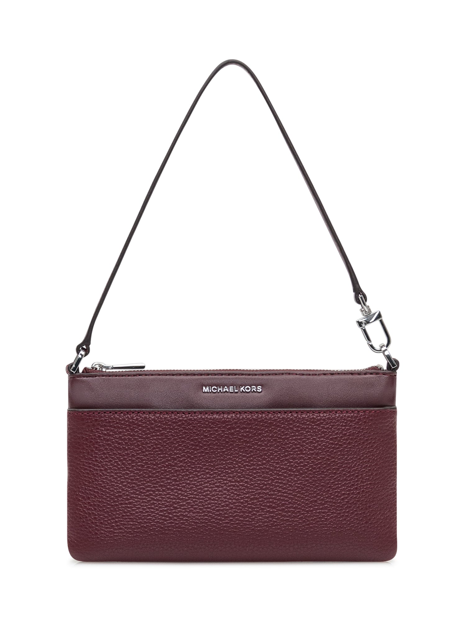Michael Kors wristlet in bordeaux pebbled leather with zip closure and removable strap.