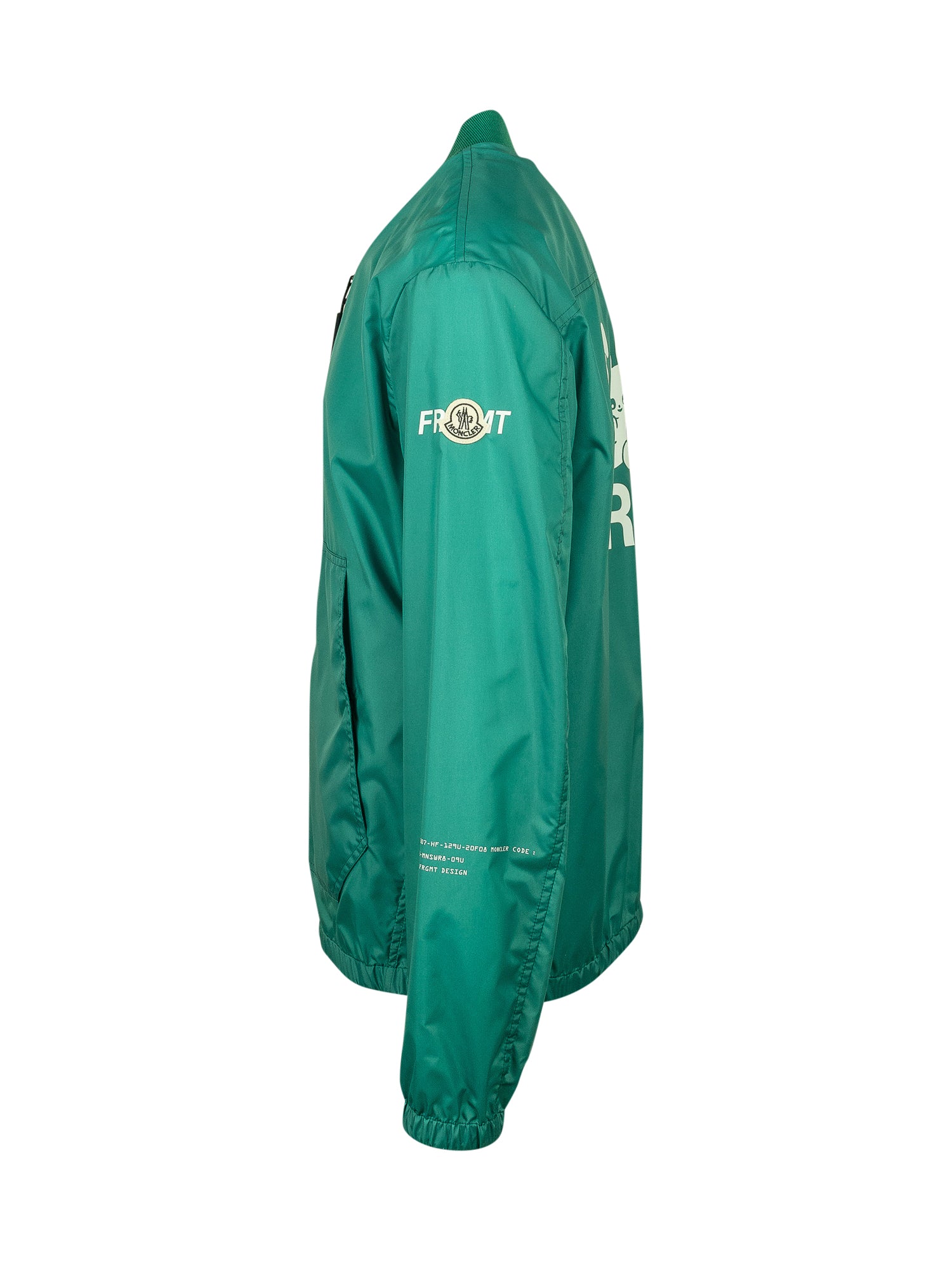 Long-sleeved bomber jacket. Ribbed crew neck. Zip closure. Pockets with button on the front. 7 Moncler Frgmt logo on the front. Logo 7 Moncler Frgmt on the back. Logo patch on sleeve.