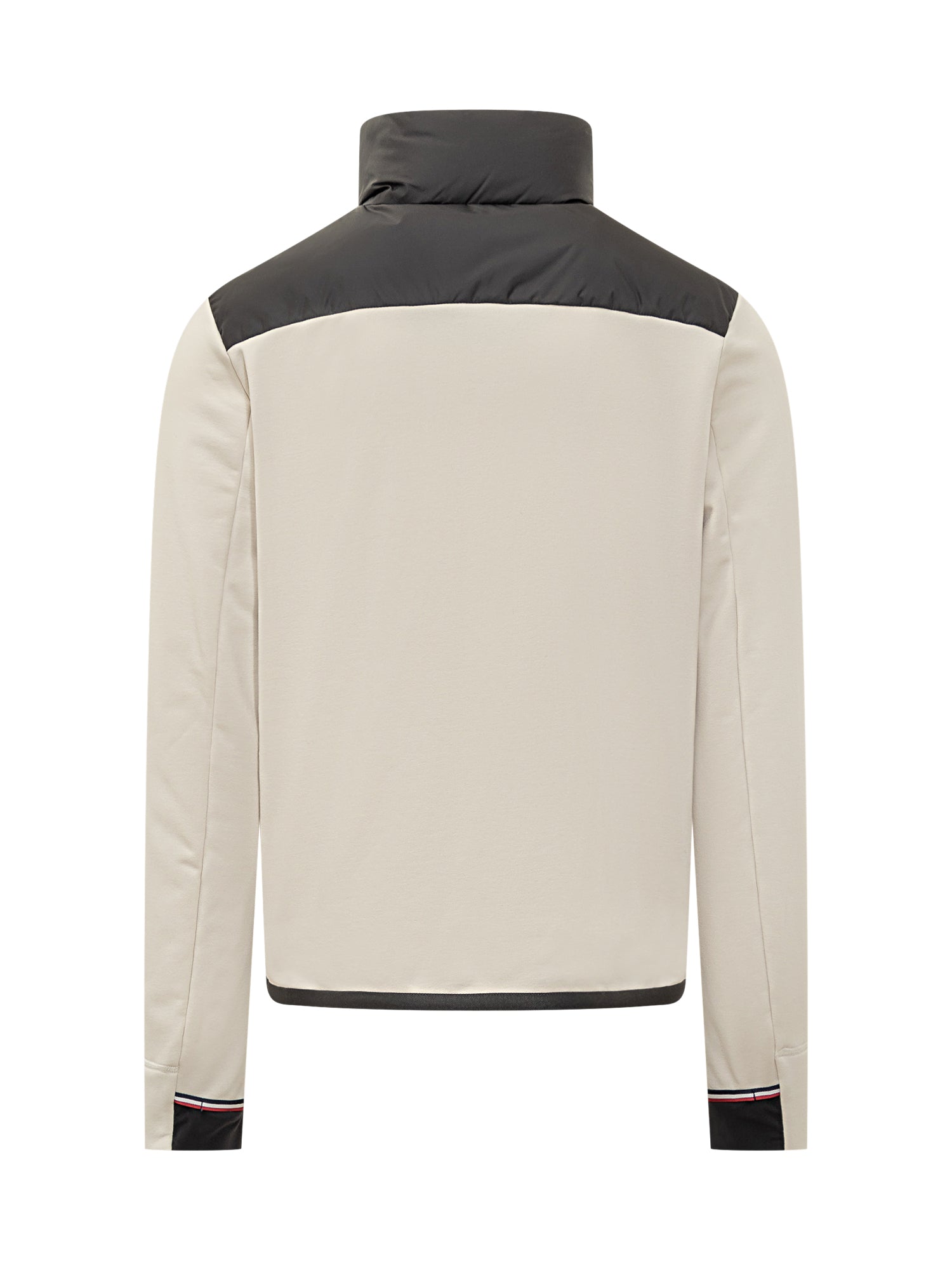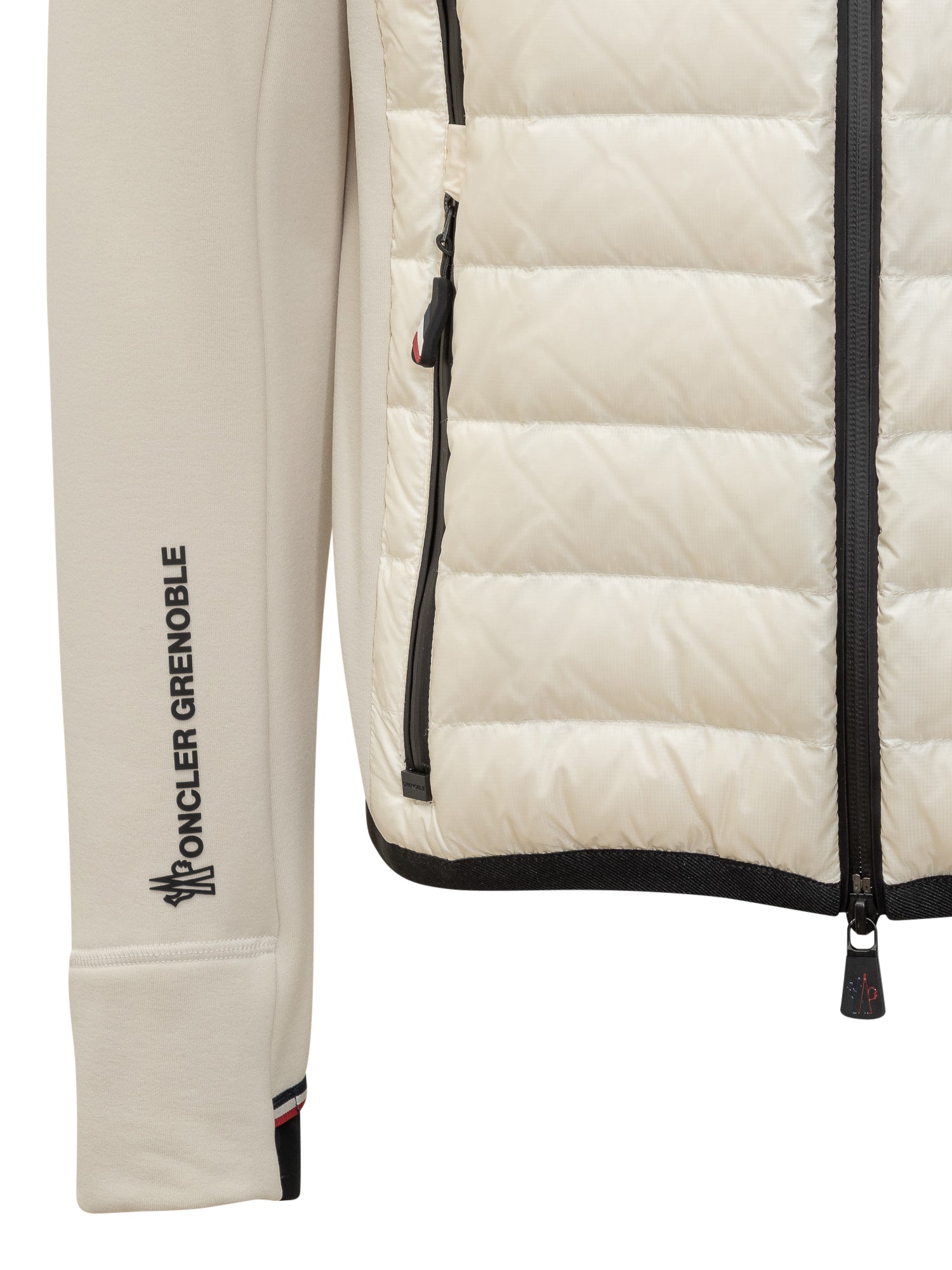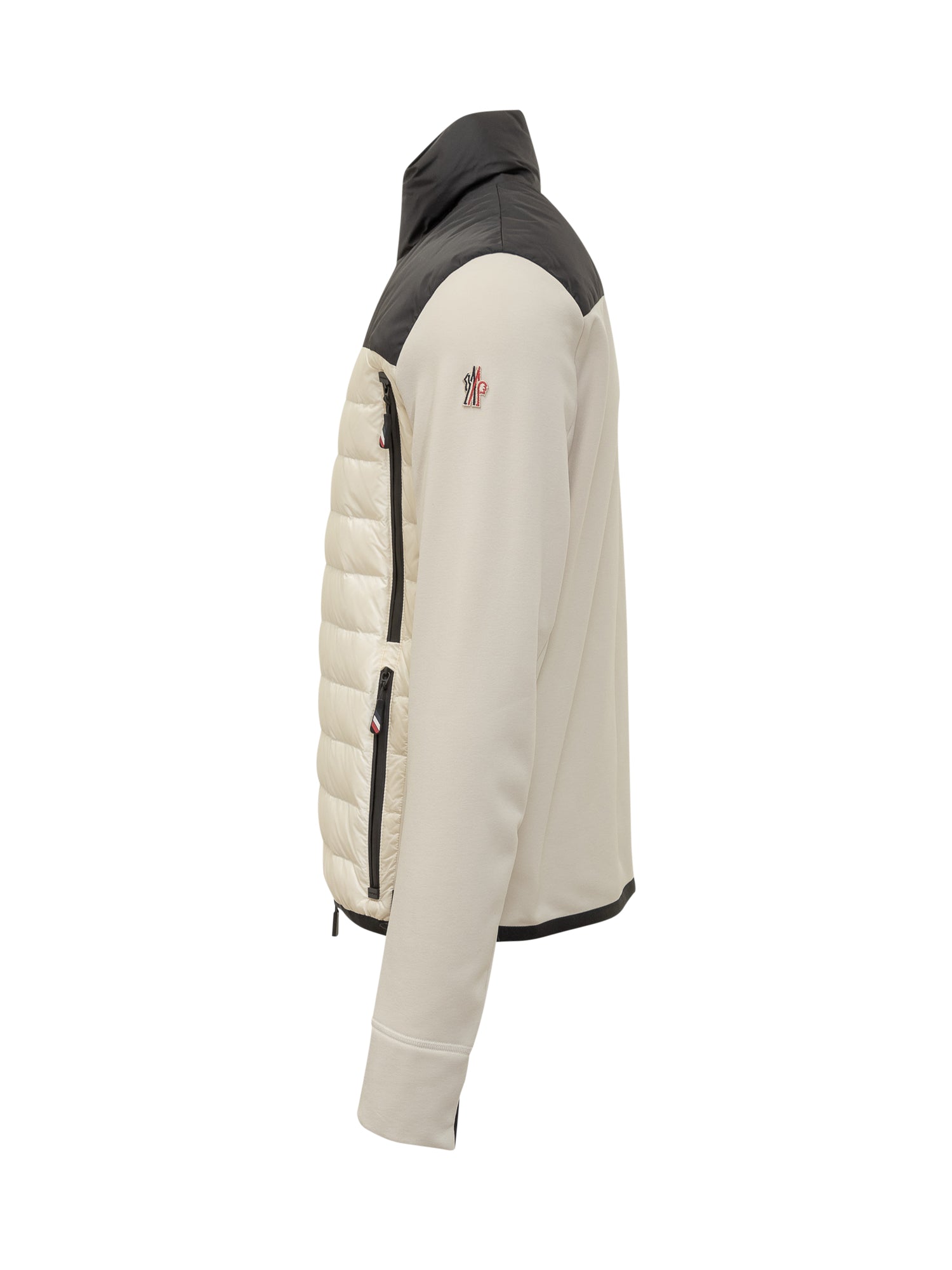 Moncler Grenoble cardigan in two-tone technical fabric with quilted front panel and zip closure. A sporty yet refined piece.