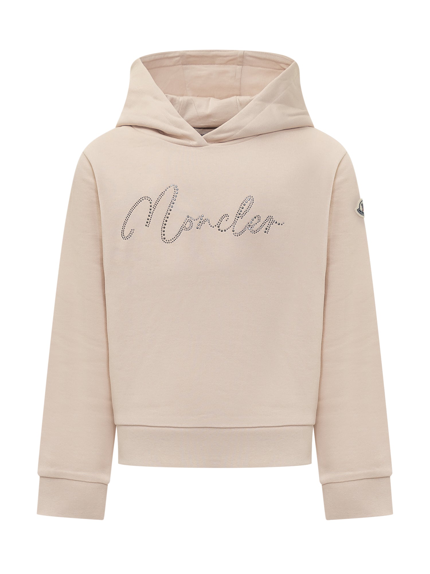 Long-sleeved hooded sweatshirt. Ribbed hems. Logo with rhinestones on front. Logo patch on sleeve.