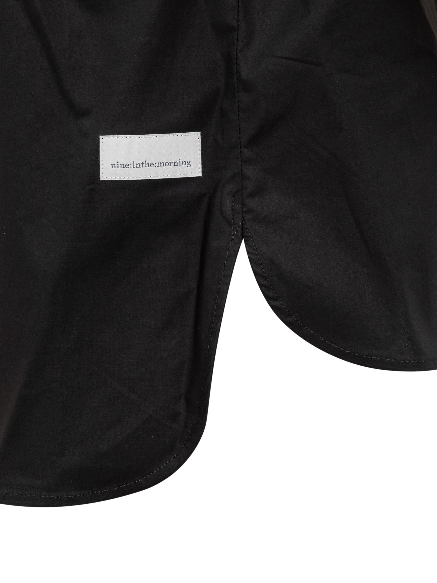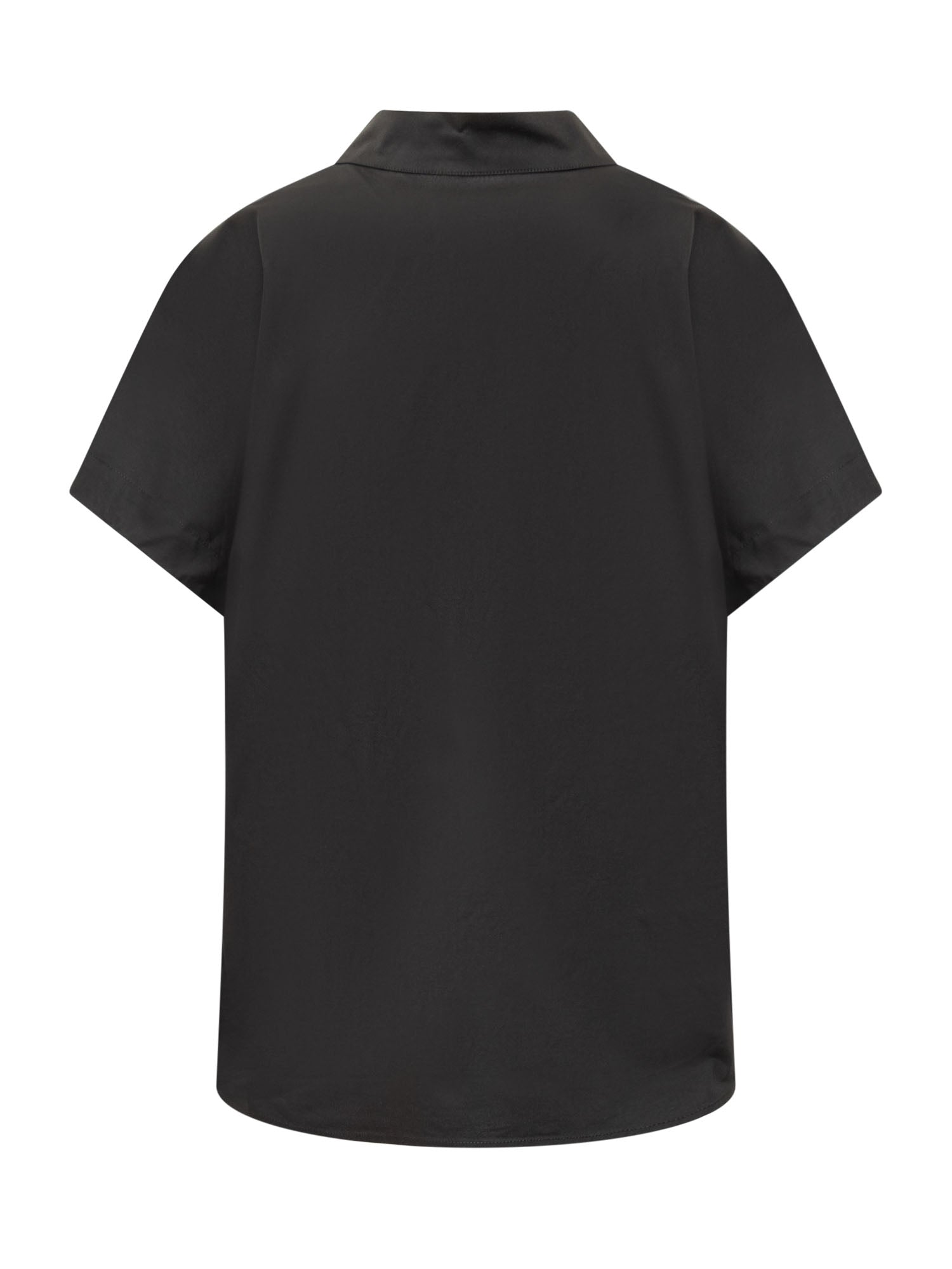 Short-sleeved shirt. Mandarin collar with V-neck on the front. Pocket on the front. Embroidered logo on the side.
